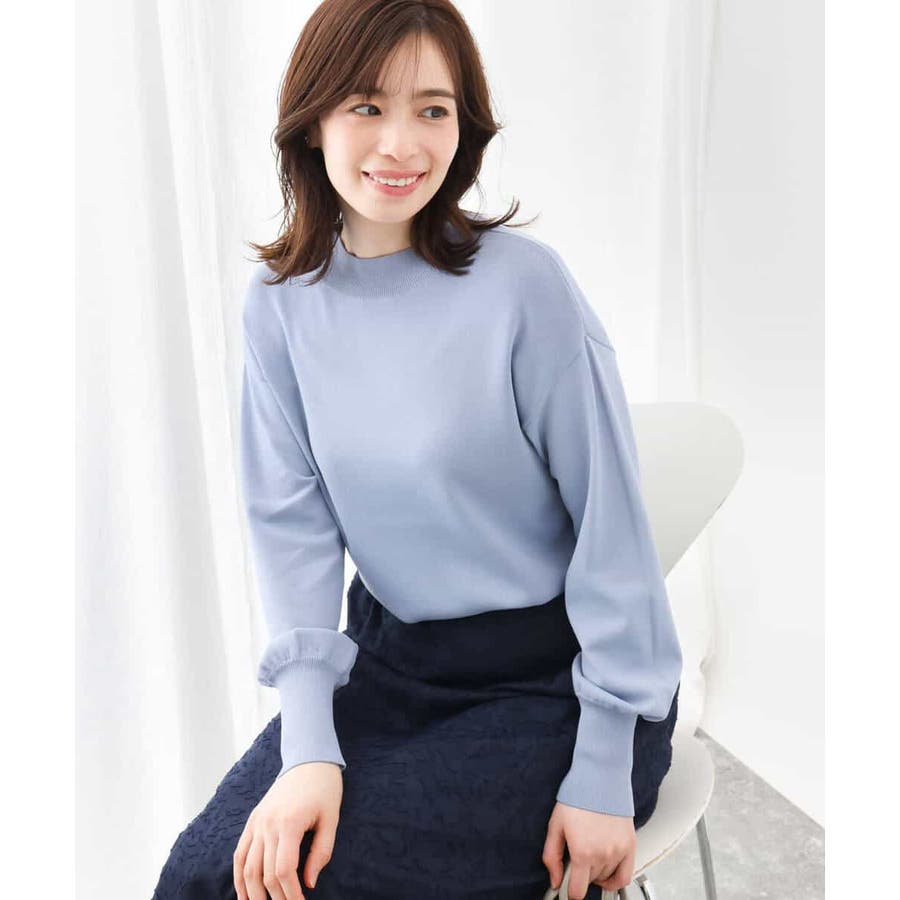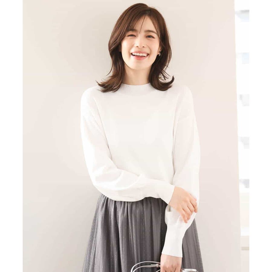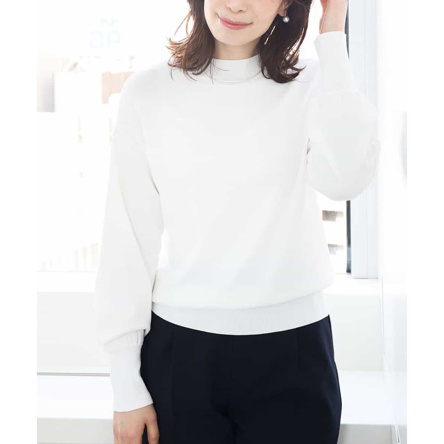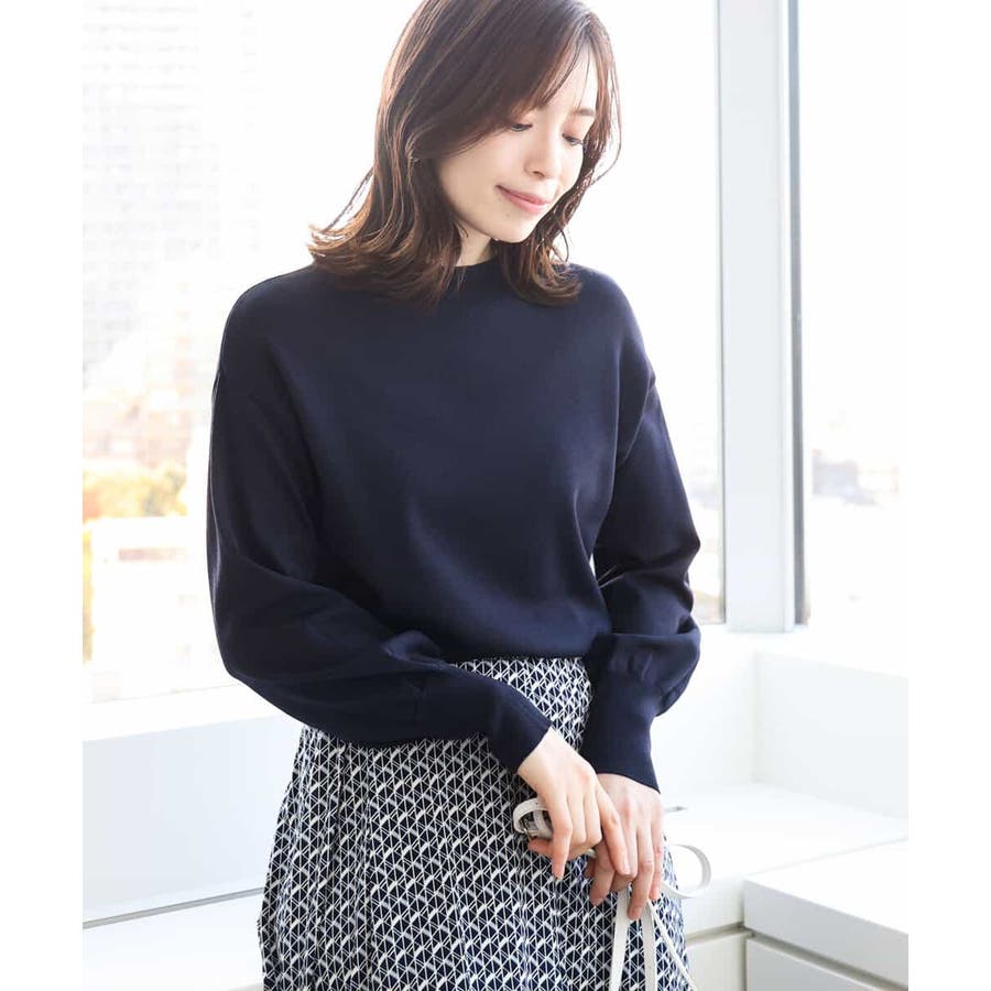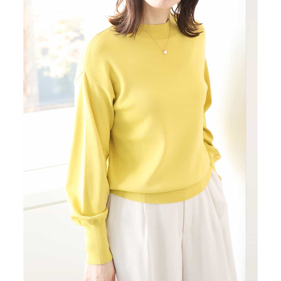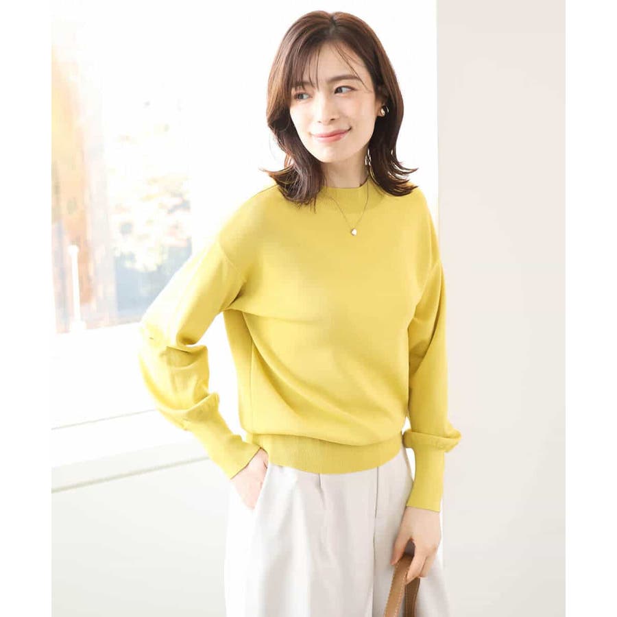 ハイネックのデザインがレディライクでクラシカルな印象のニット。体のラインを拾わないサイズ感ながらも、袖口の長めのリブデザインですっきり見えがかないます。
