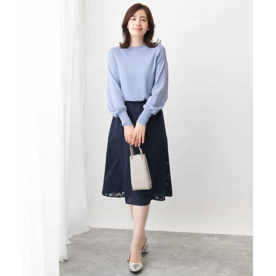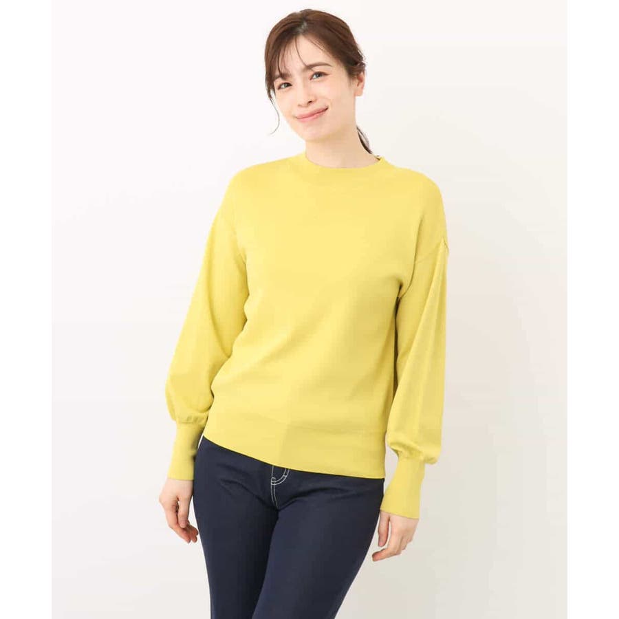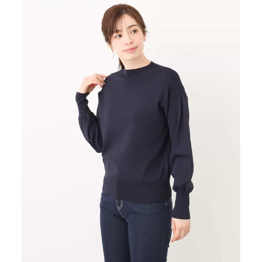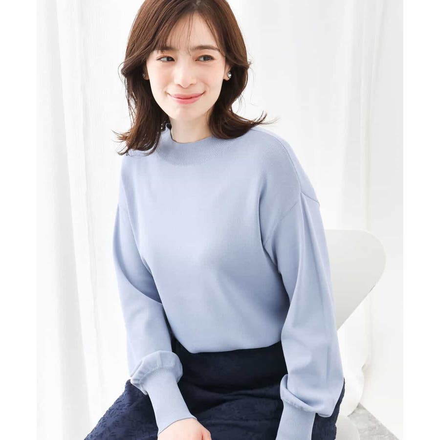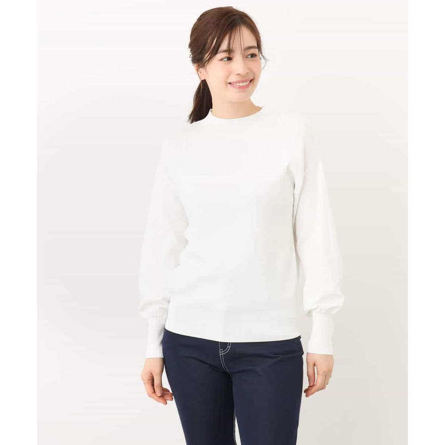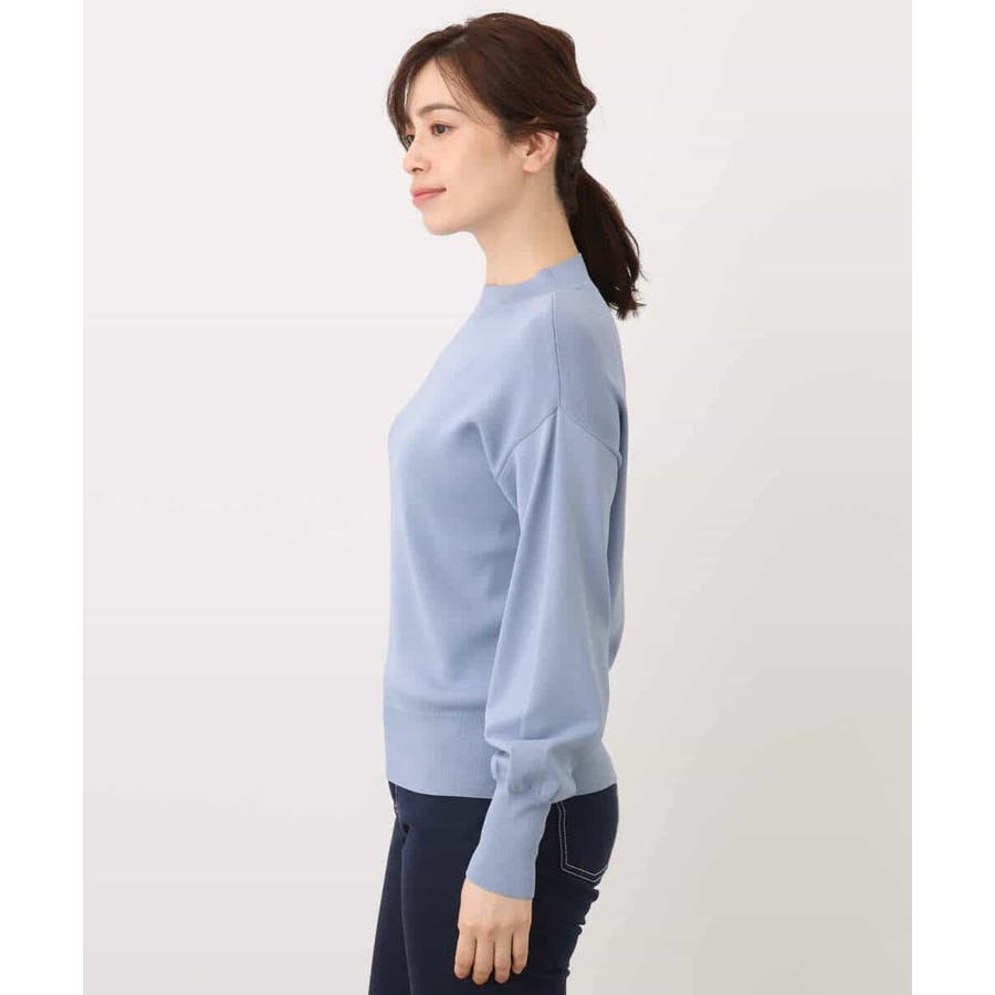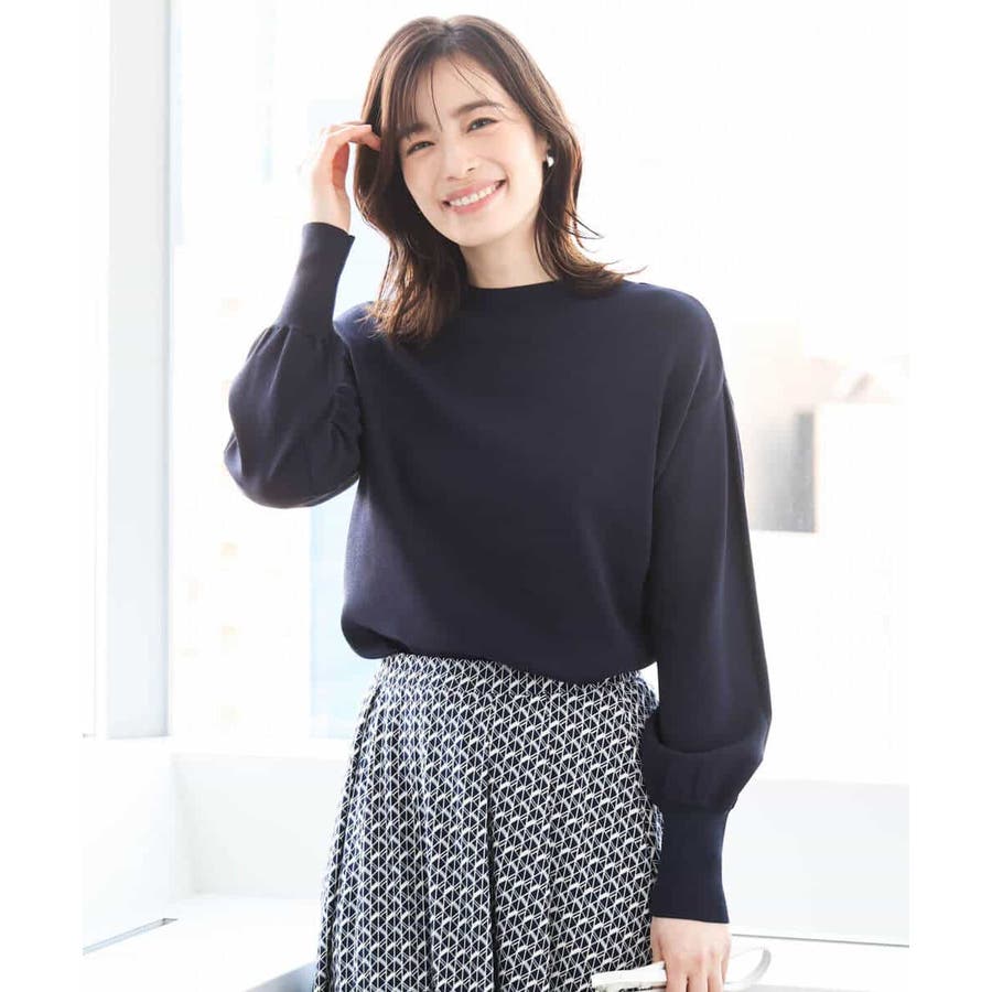 ハイネックのデザインがレディライクでクラシカルな印象のニット。体のラインを拾わないサイズ感ながらも、袖口の長めのリブデザインですっきり見えがかないます。