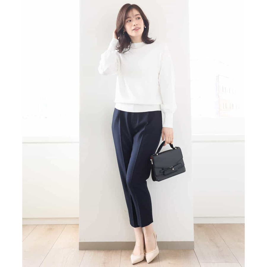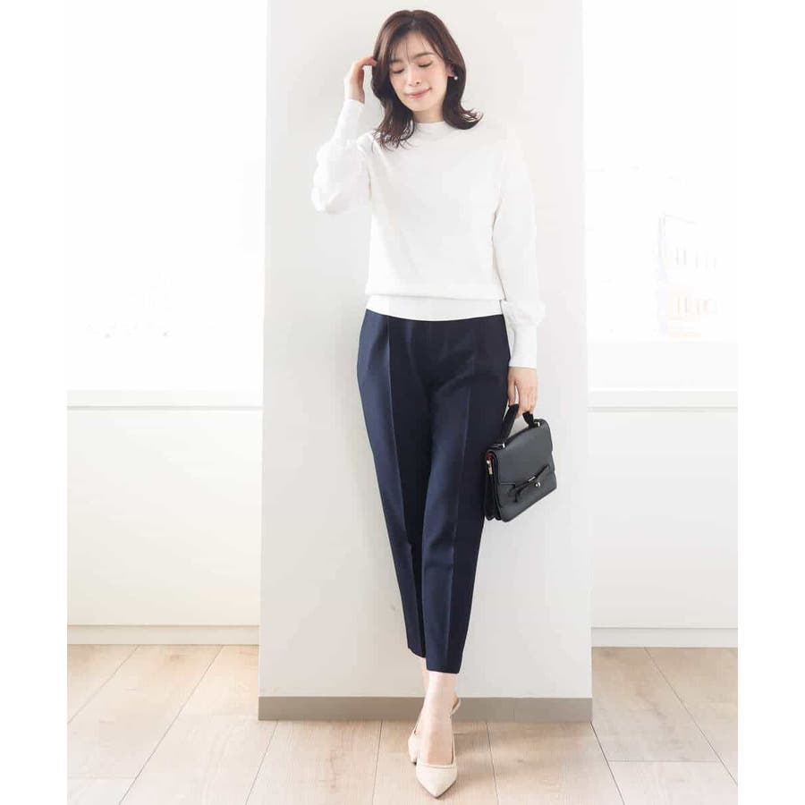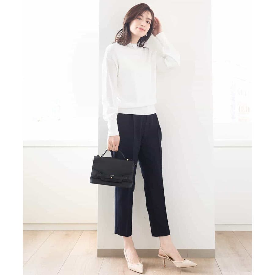 ボトムにインでもアウトでもすっきり決まるデザインと丈感は合わせるボトムを選びません。ジャケットインにも着こなせるので、お仕事着としても活躍してくれる万能ニットです。