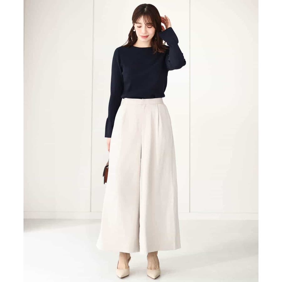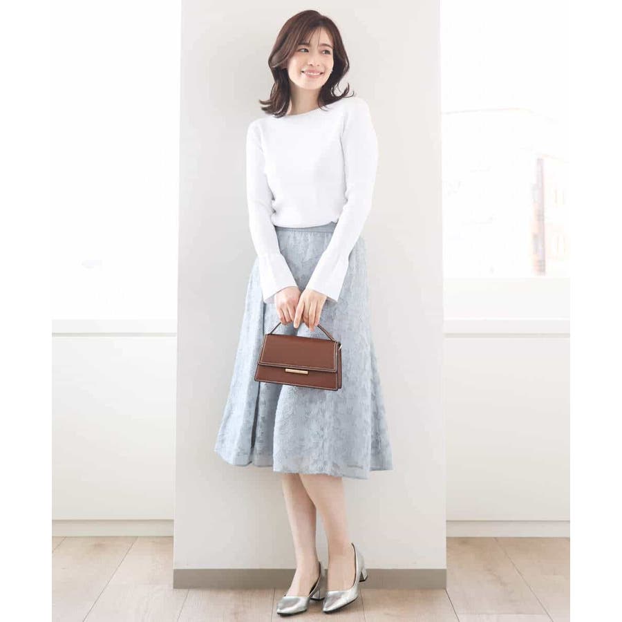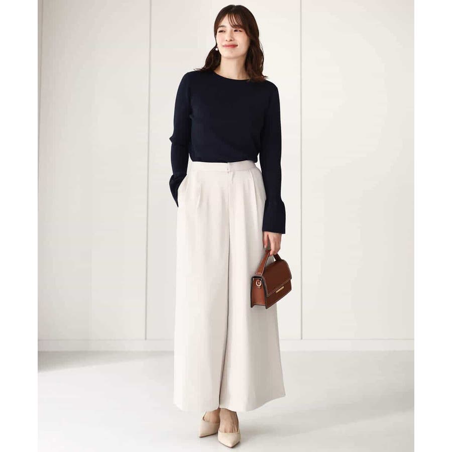 甘すぎないフレアスリーブが一枚着でも、アウターのインナーにも映えるデザイン。ボディラインを拾いすぎない適度なハリ感がきれいめな印象に。