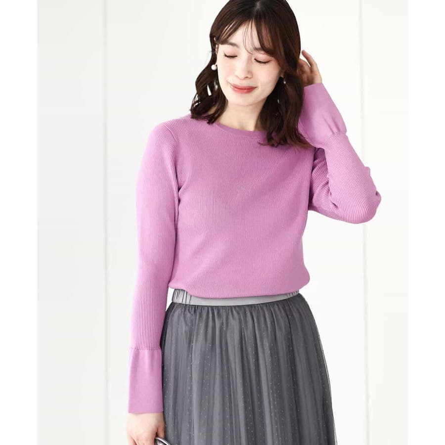 フレアースリーブリブニット/洗える/WEB限定サイズあり
