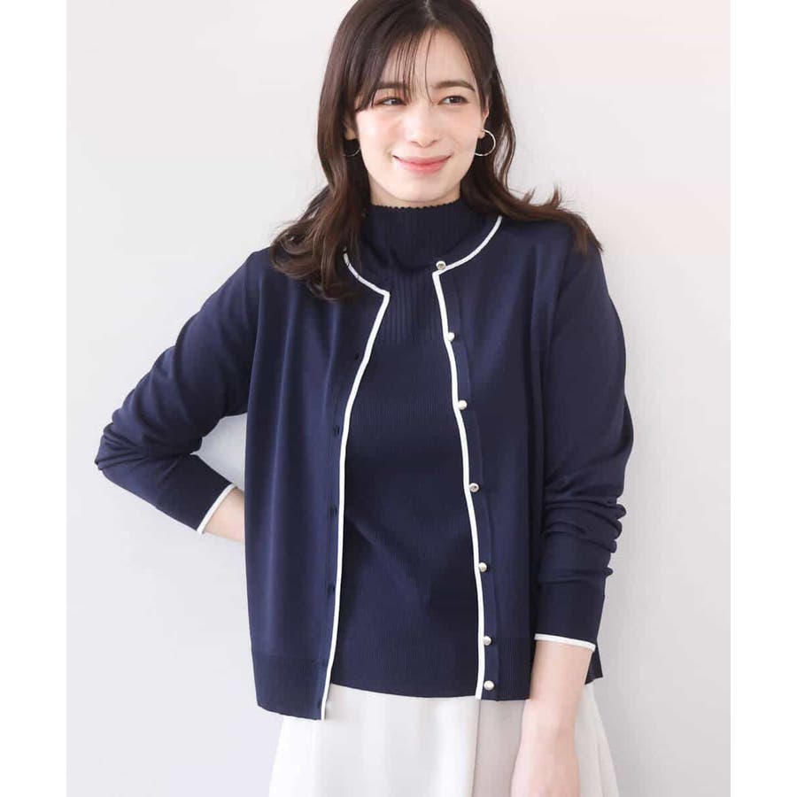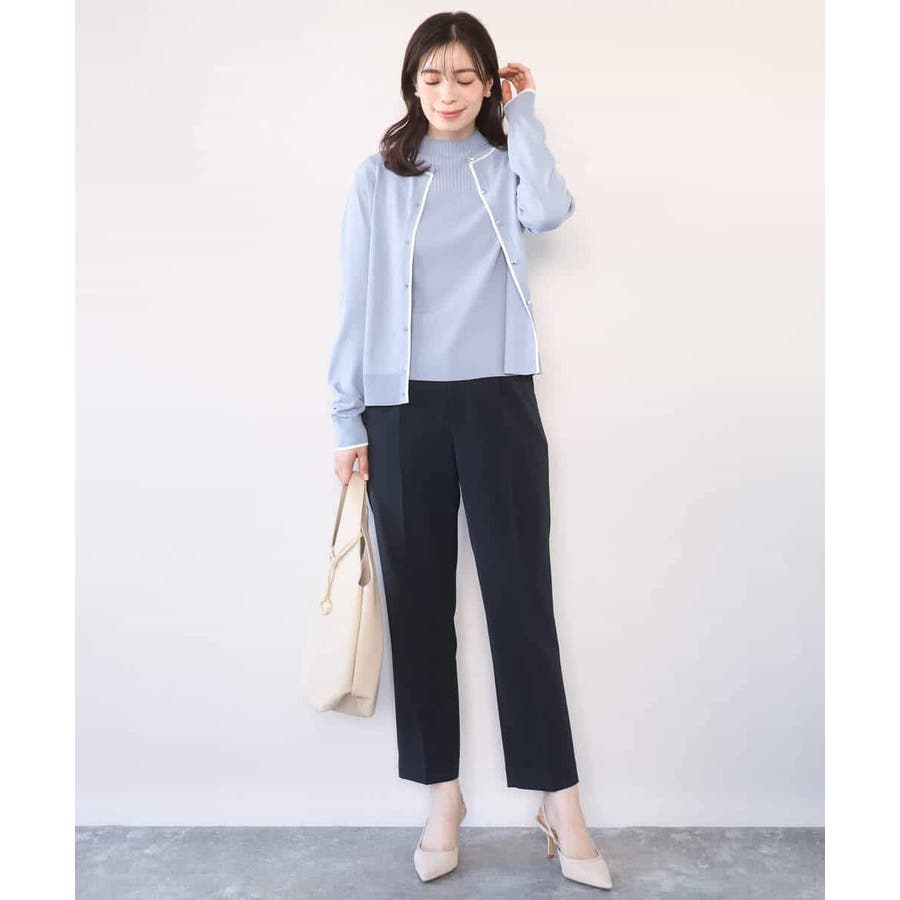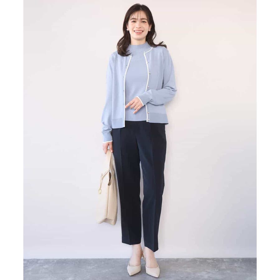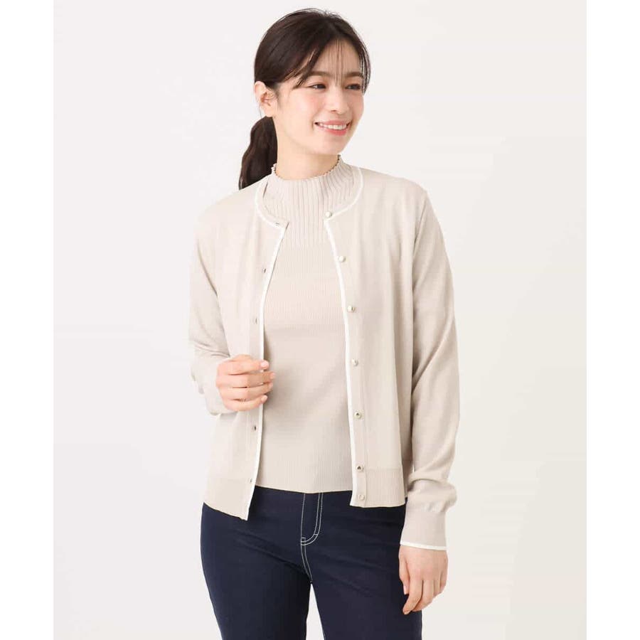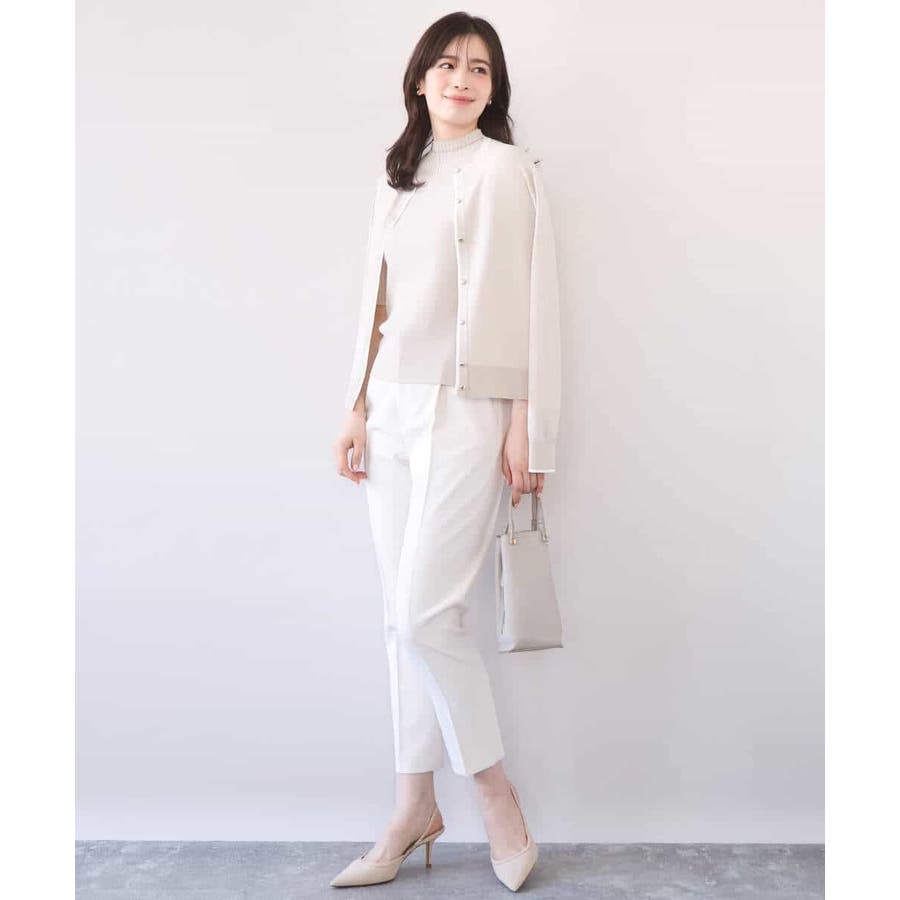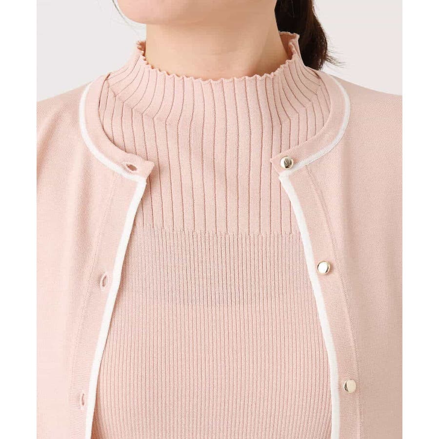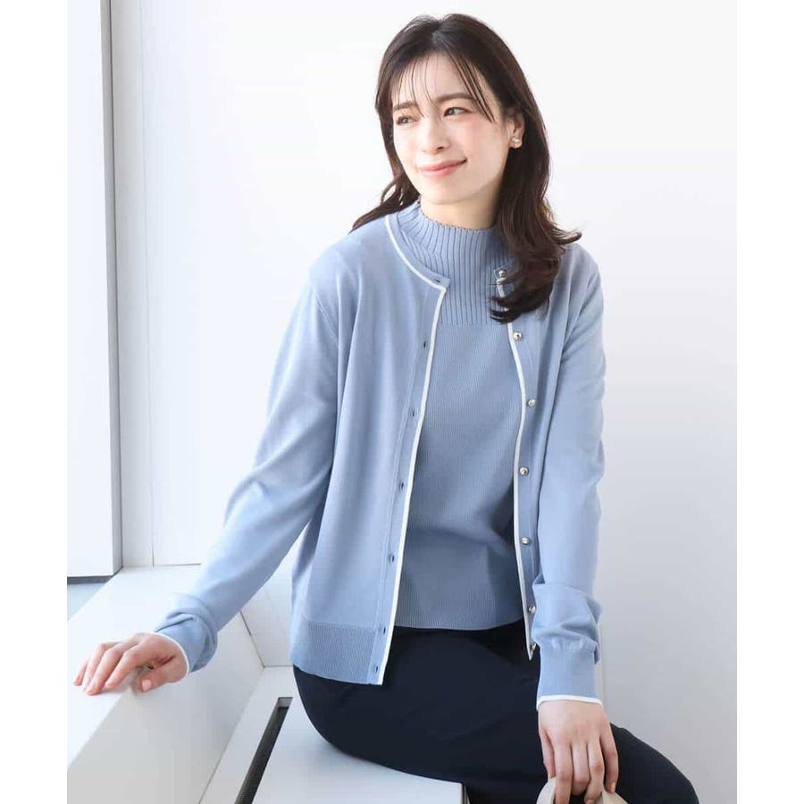セットでも単品でも使い勝手の良いカーディガンとプルオーバーがセットになったアンサンブル。カーディガンはきれいめシーンにも映えるホワイトのライン配色が効いたデザインに。サイズ感やかたちはベーシックに仕上げることで汎用性も◎。半袖プルオーバーは幅違いのリブをヨークで切り替えたデザインで、一枚着としても着こなしやすいモックネック。