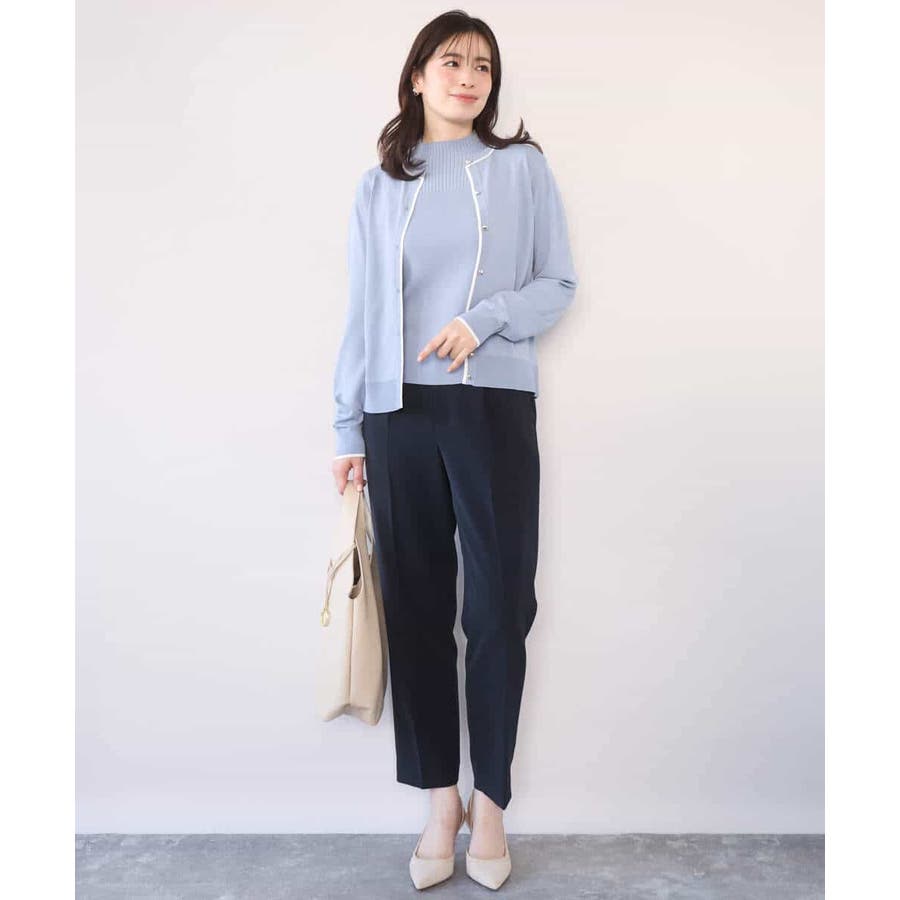 サイズ感やかたちは大きすぎずなベーシックで、すっきりときれいめに着こなせます。ワンピースの上に羽織ったり、ジャケットのインナーとして着用したりと、それぞれ使い勝手も抜群。コーディネートに映えるやわらかで優しげな色展開です。
