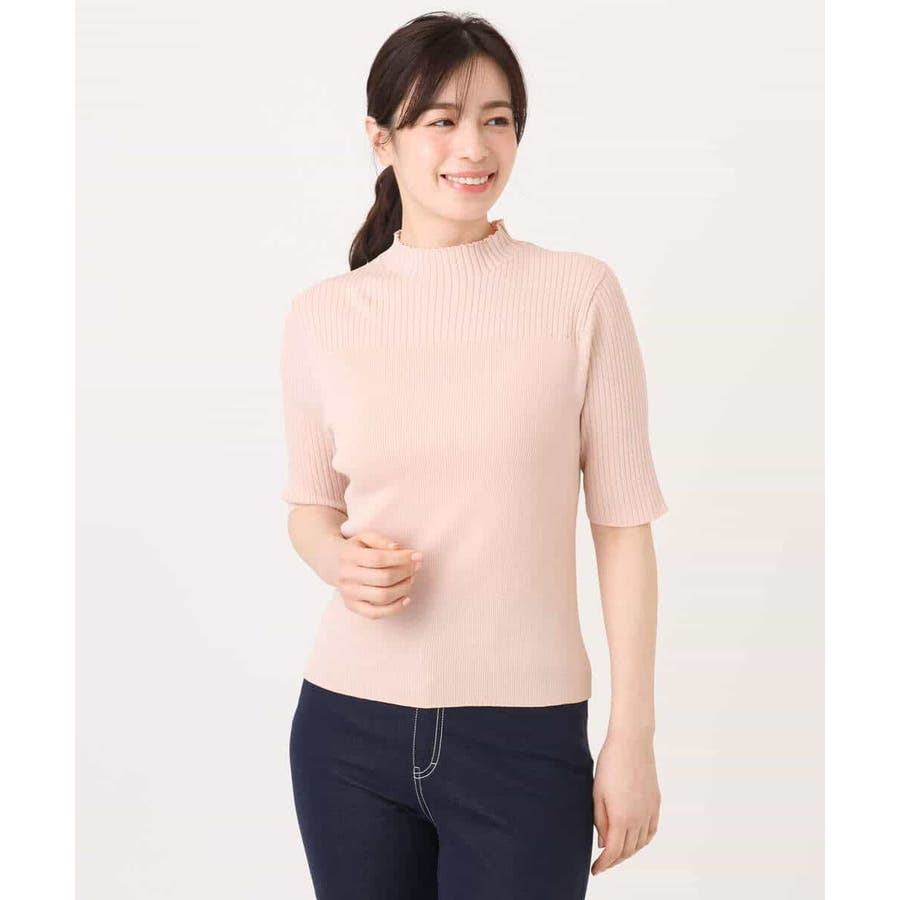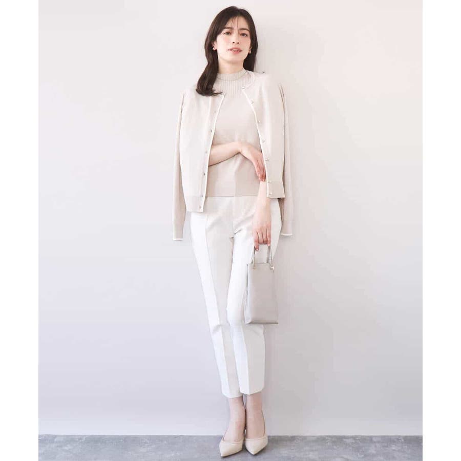 ハイゲージのきれいな目面が特徴のニット素材。お仕事などにもちょうどいい見え感でさらりとした肌触りの良さがポイント。シーズン問わず嬉しいUVカットの機能付き。