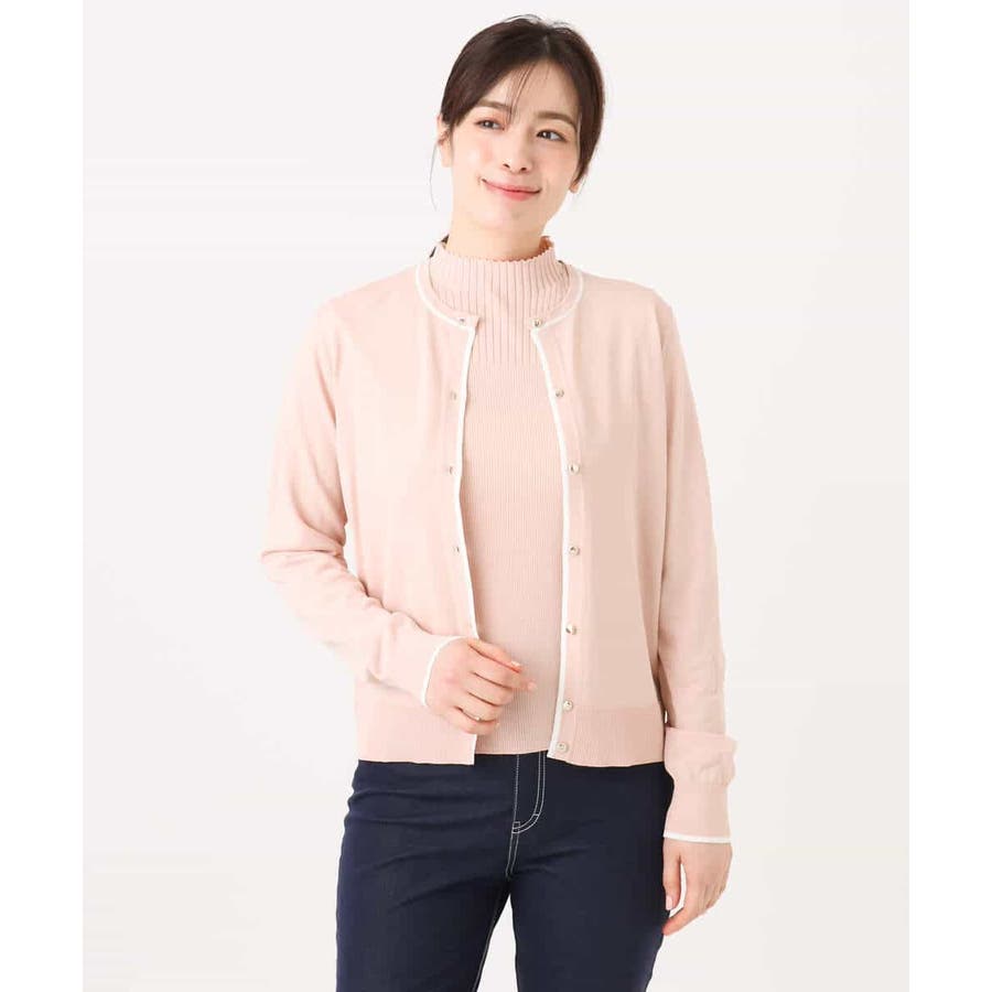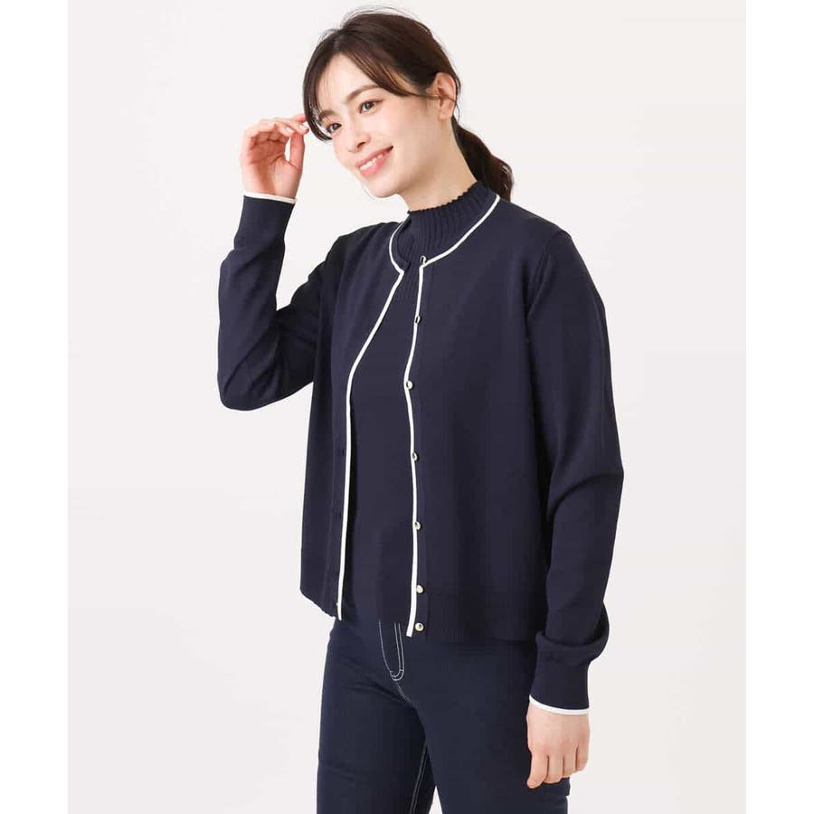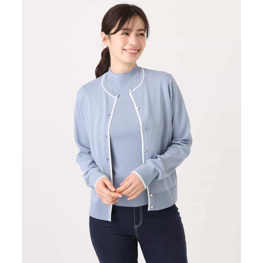 配色ラインアンサンブル(カーディガン&ニットプルオーバー) UVカット 洗える