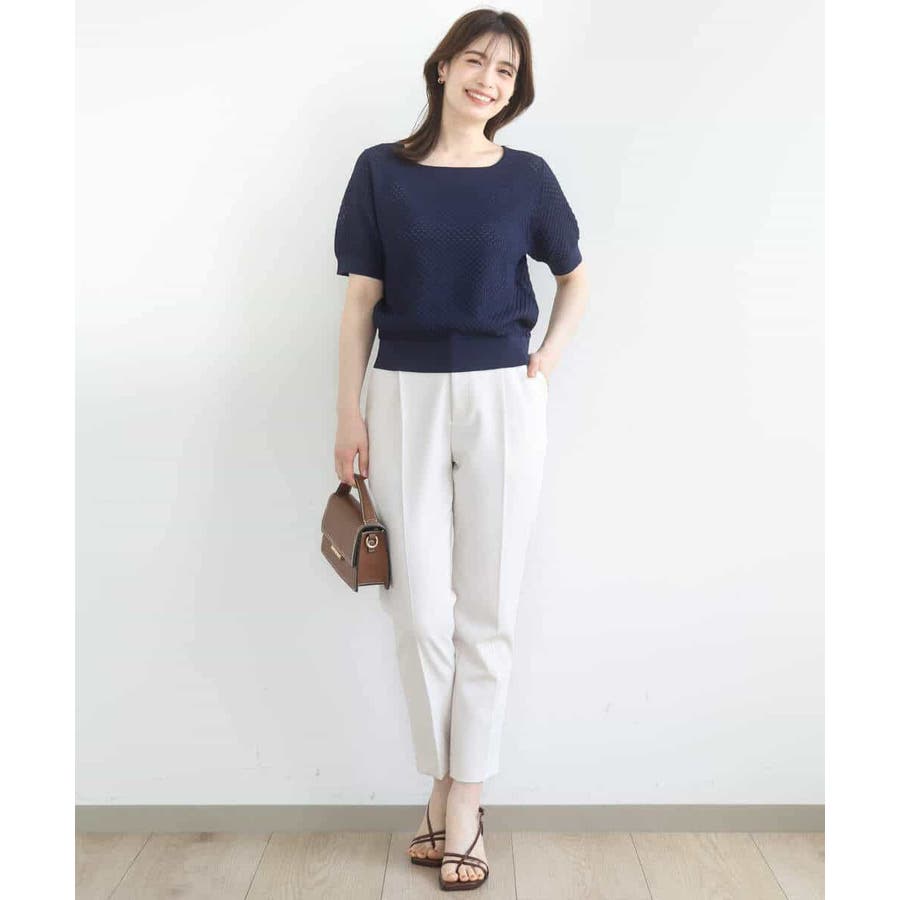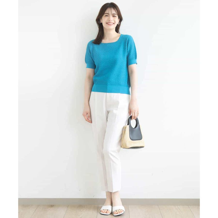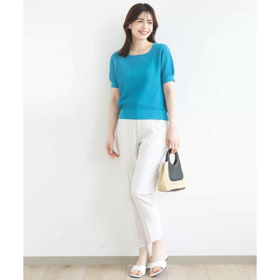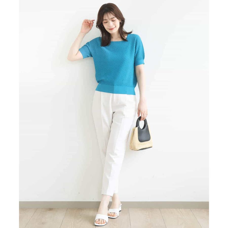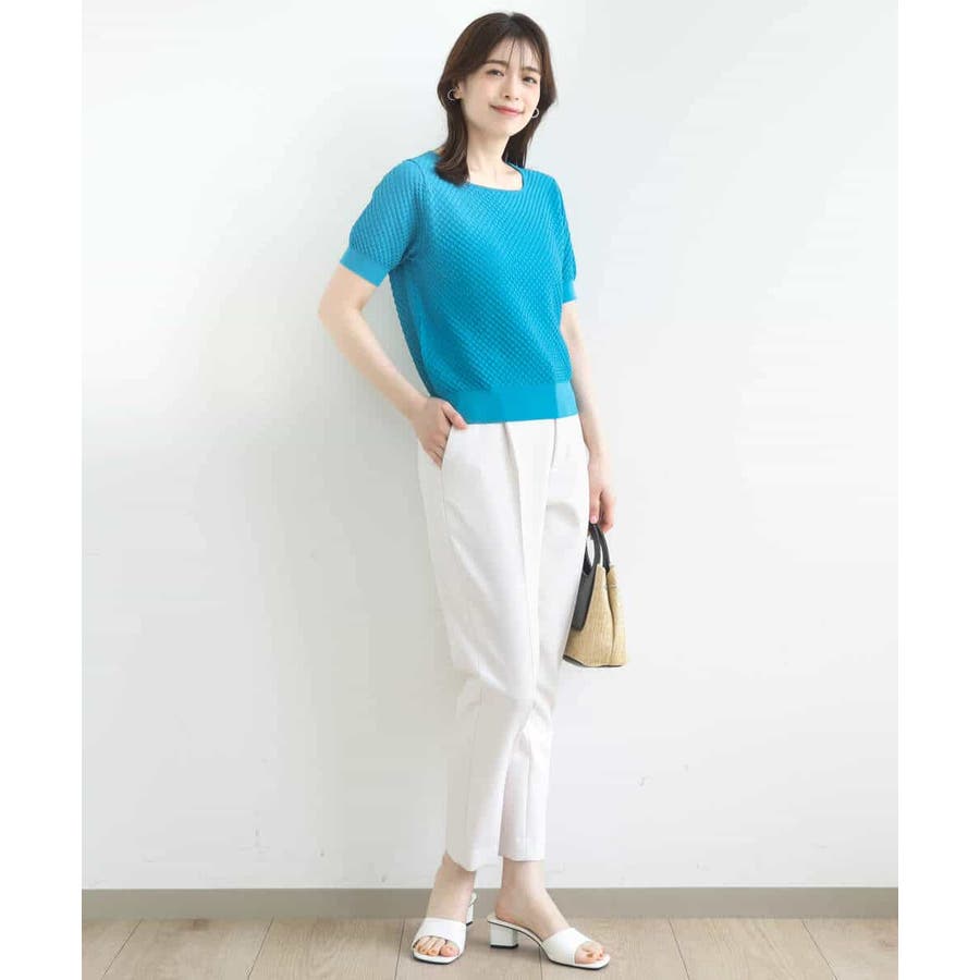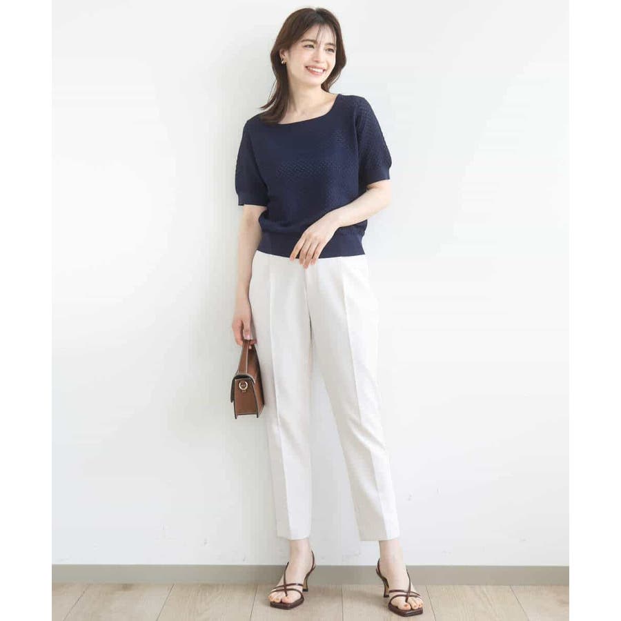 ドライタッチのニット素材は肌離れが良く涼しげ。ストレッチ糸を加えているので型崩れしにくい点も嬉しい。