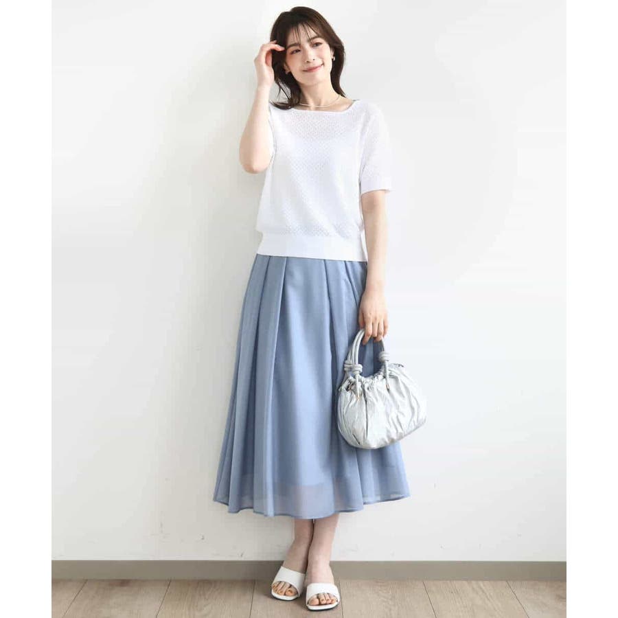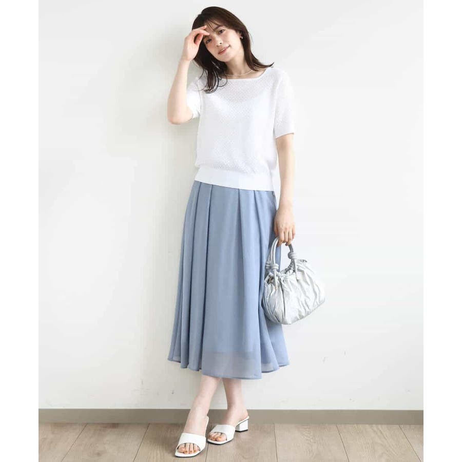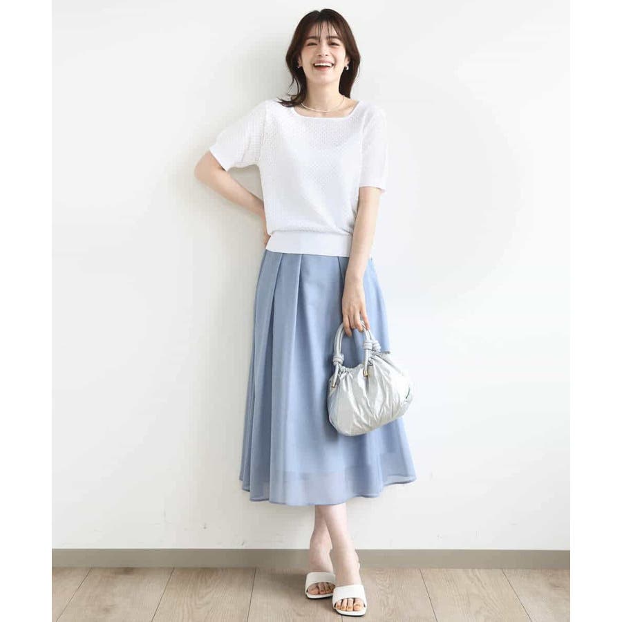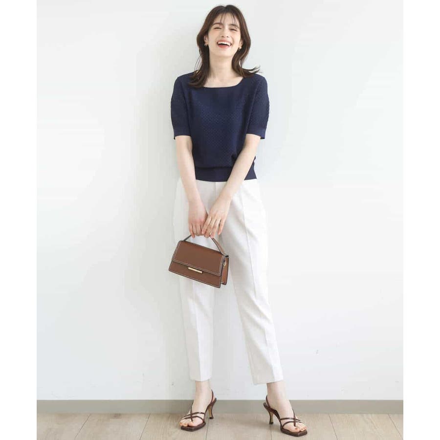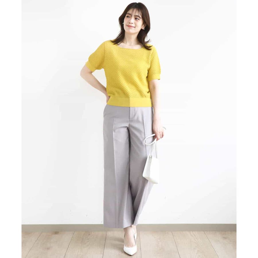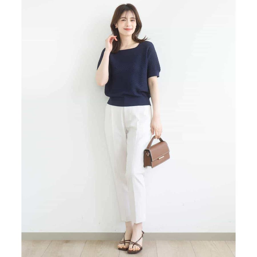 ドライタッチのニット素材は肌離れが良く涼しげ。ストレッチ糸を加えているので型崩れしにくい点も嬉しい。