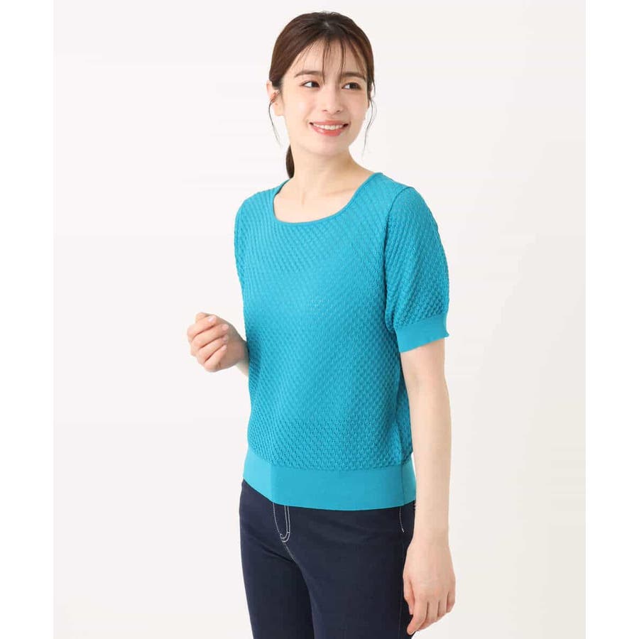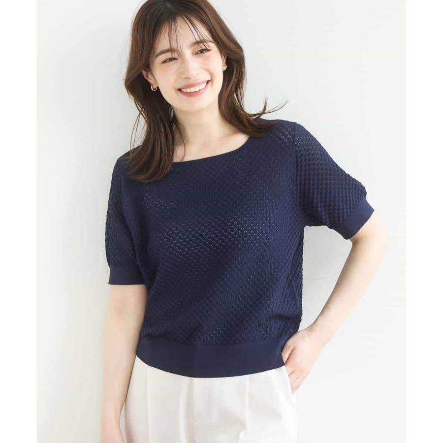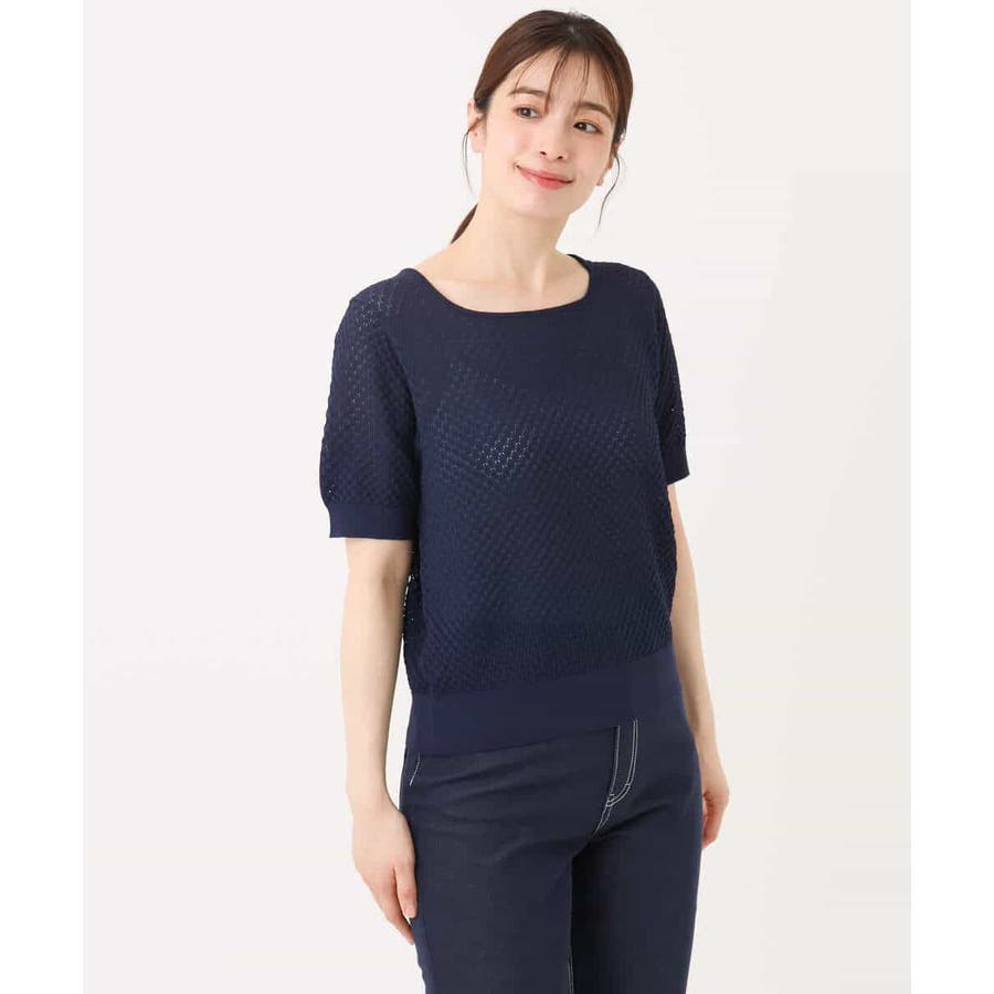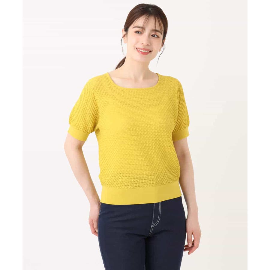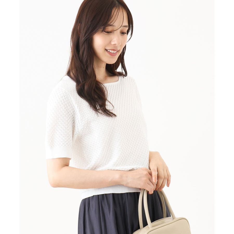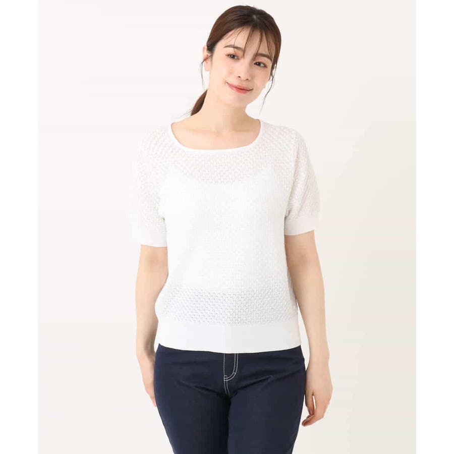 レーシー編み半袖ニット/洗える/WEB限定サイズあり
