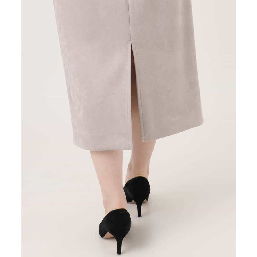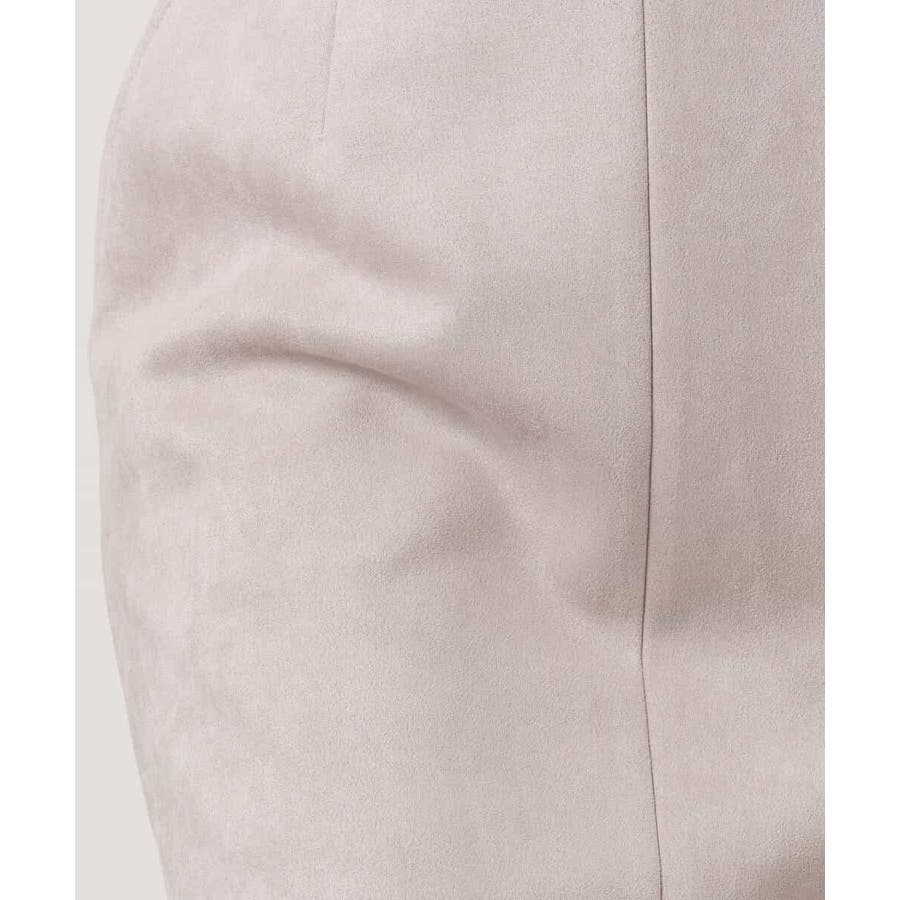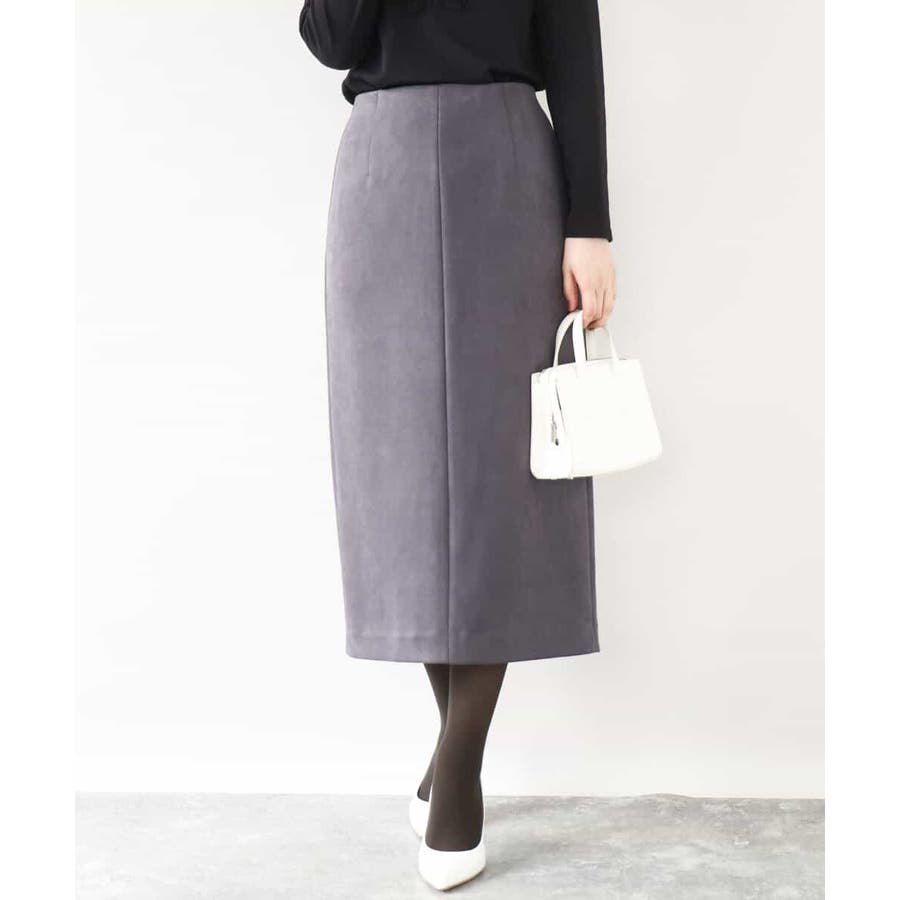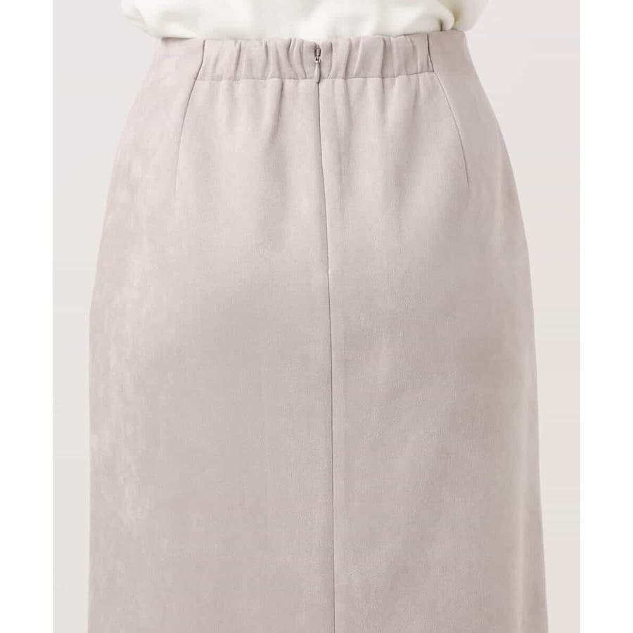 スウェードライクな見え感のポリエステル起毛素材を使用。お手入れも簡単で扱いやすさが魅力の素材です。身体の線を拾いにくい素材感もポイント。