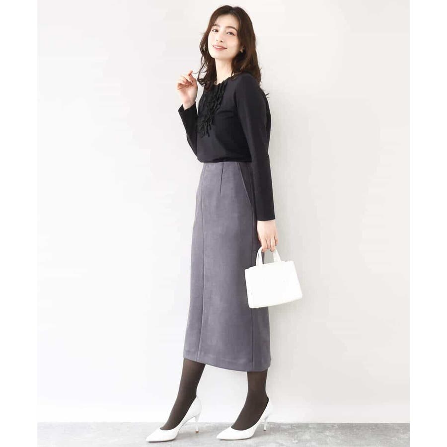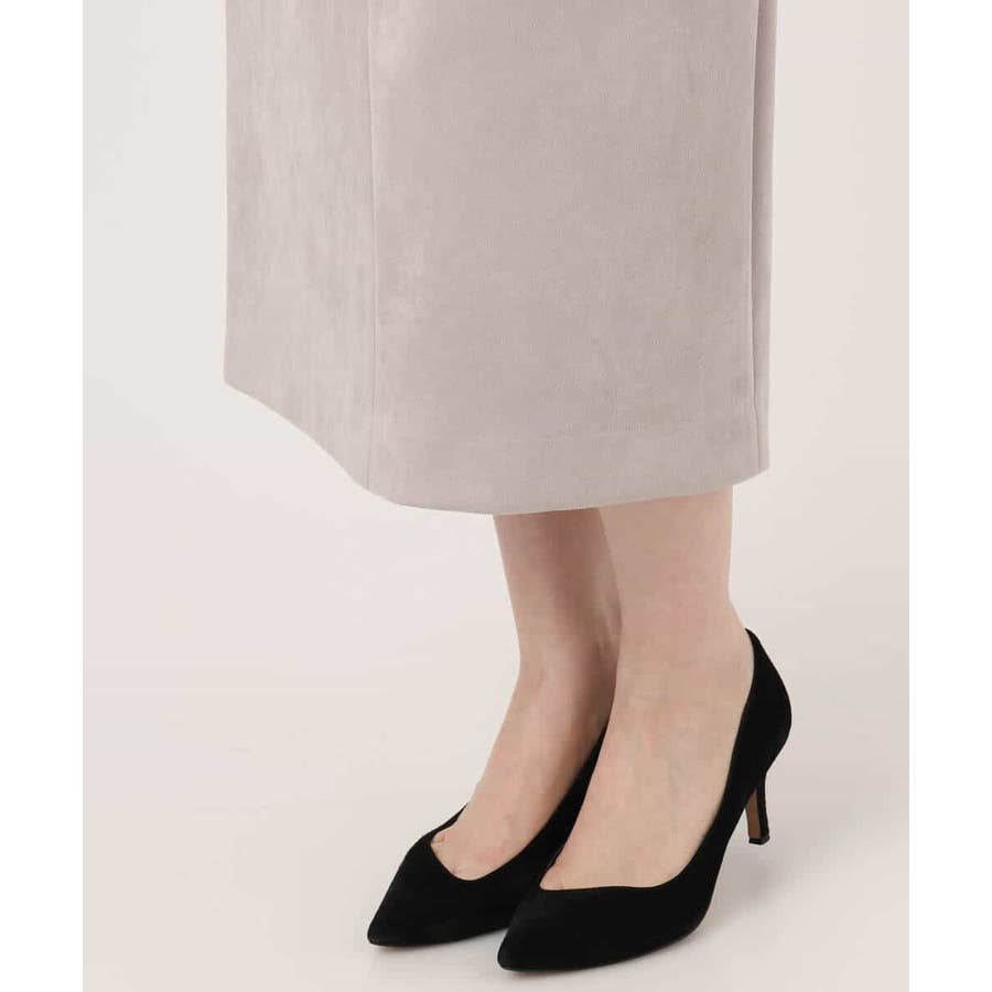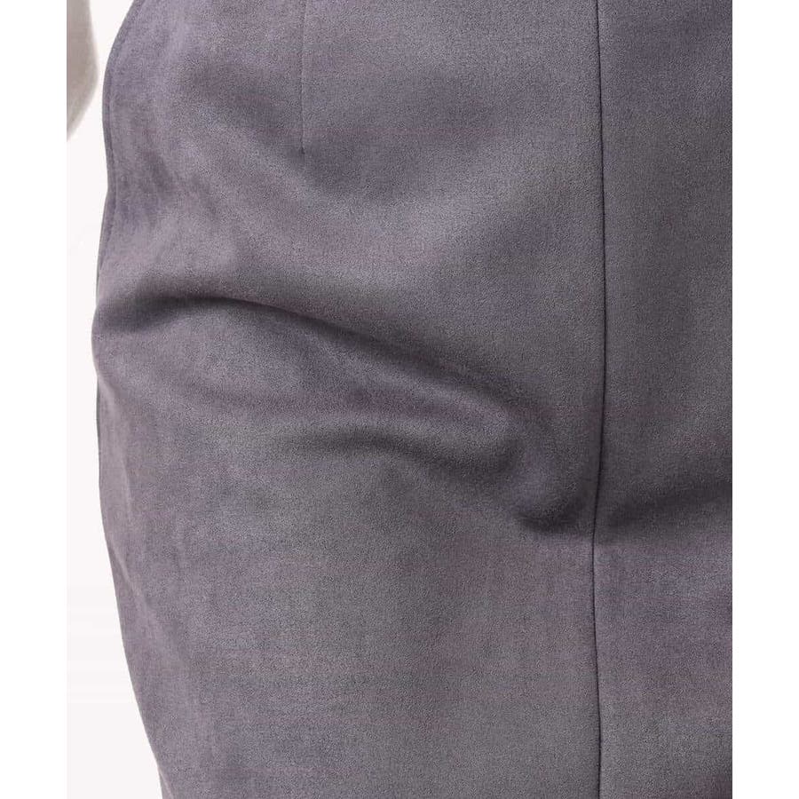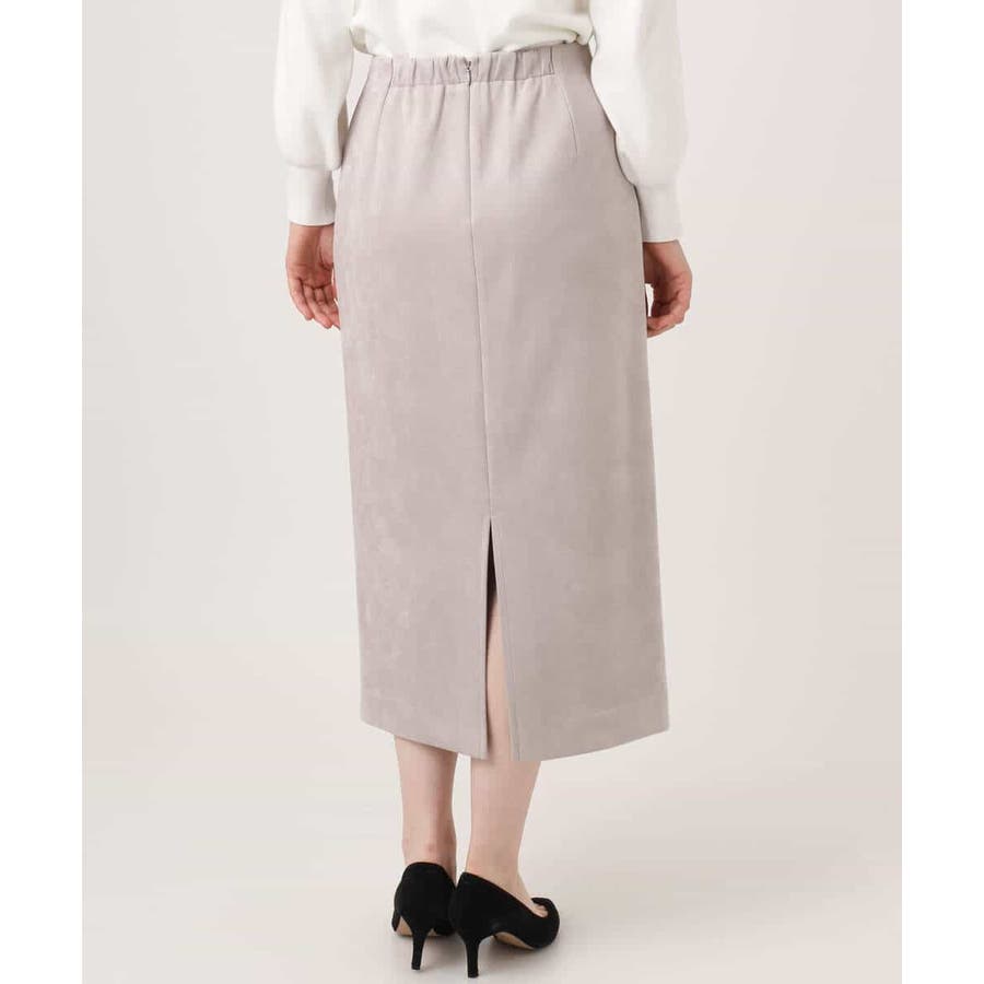 スウェードライクな見え感のポリエステル起毛素材を使用。お手入れも簡単で扱いやすさが魅力の素材です。身体の線を拾いにくい素材感もポイント。