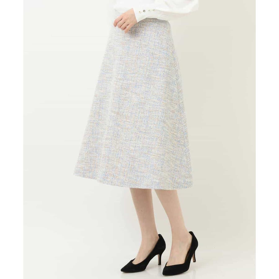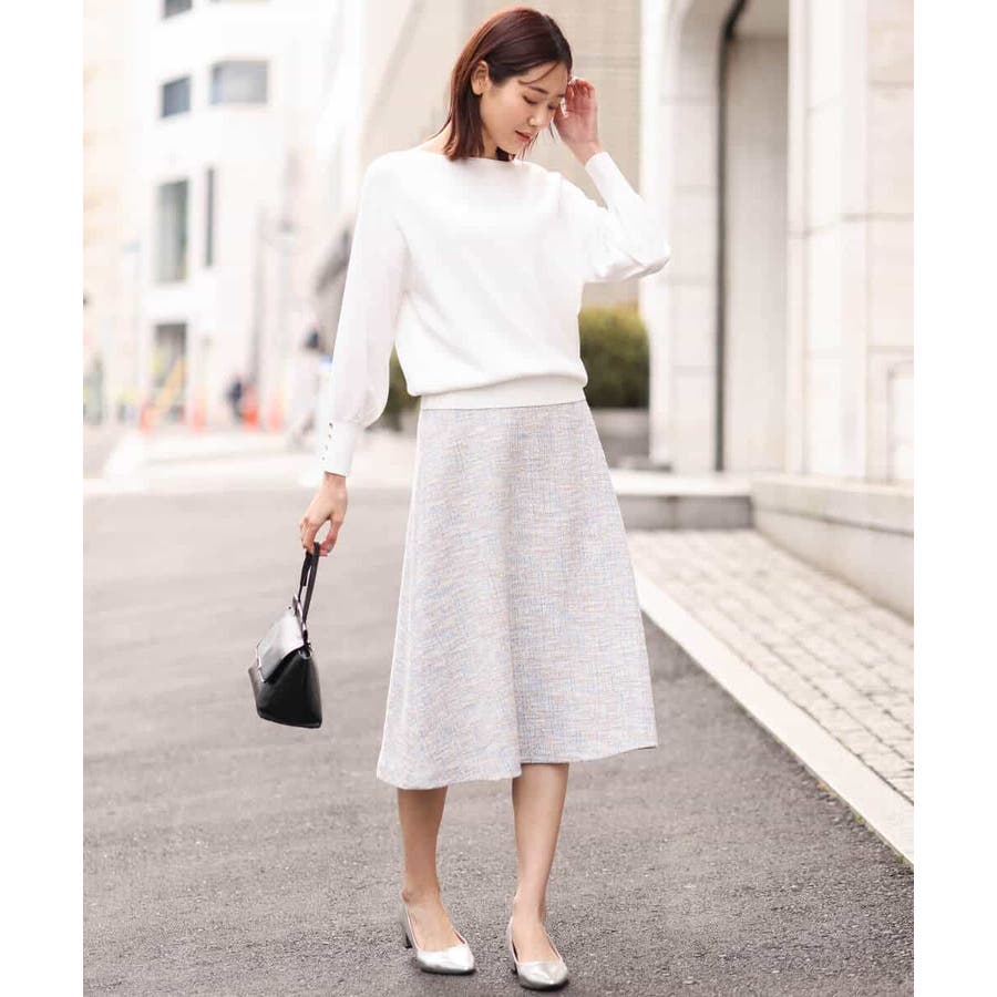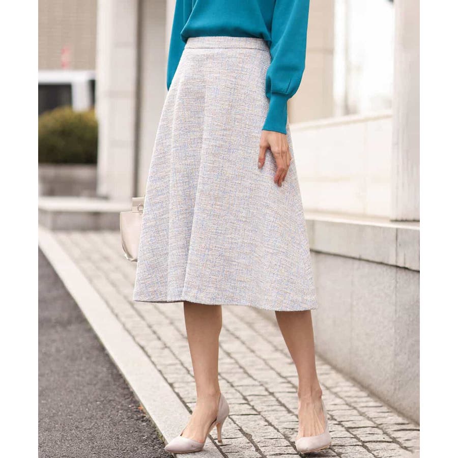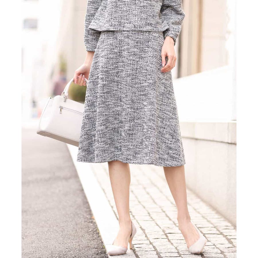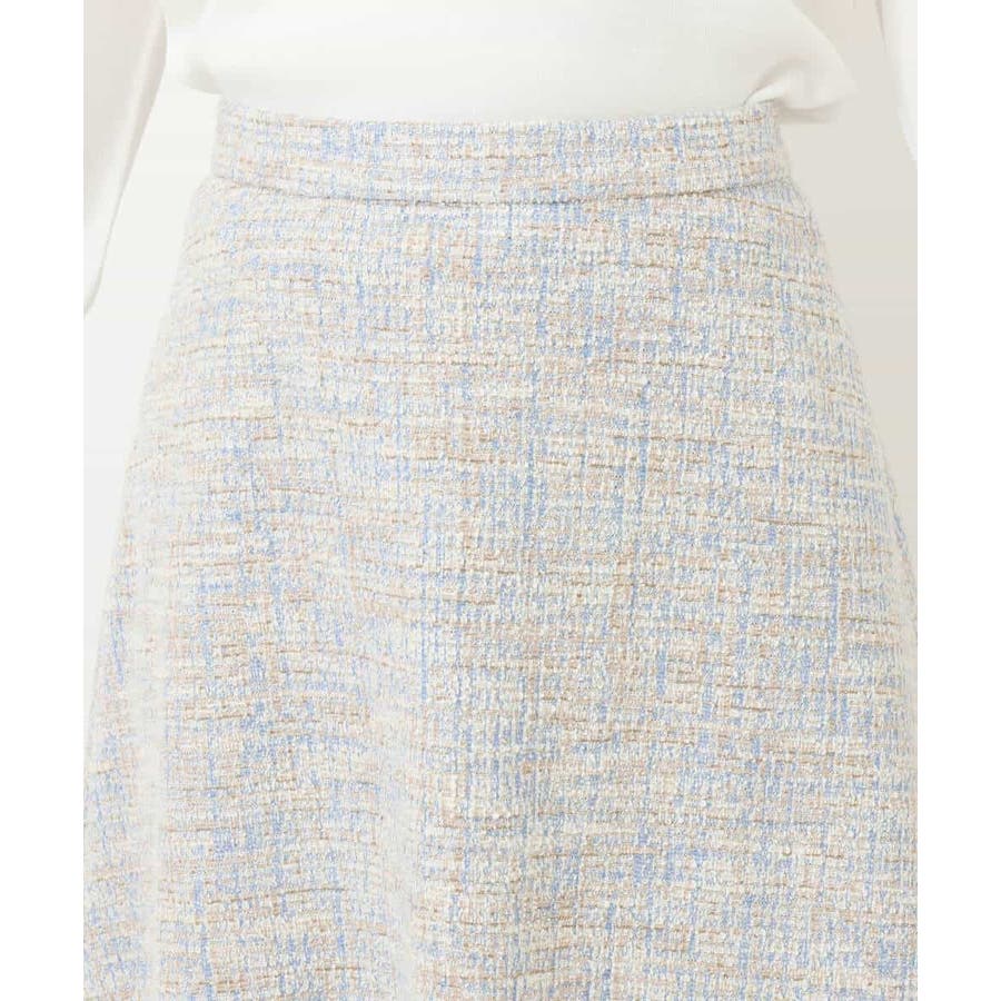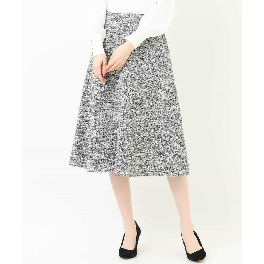 トレンドのツイード素材のスカート。裾にかけて広がるフレアーなシルエットがレディライクな印象に。
