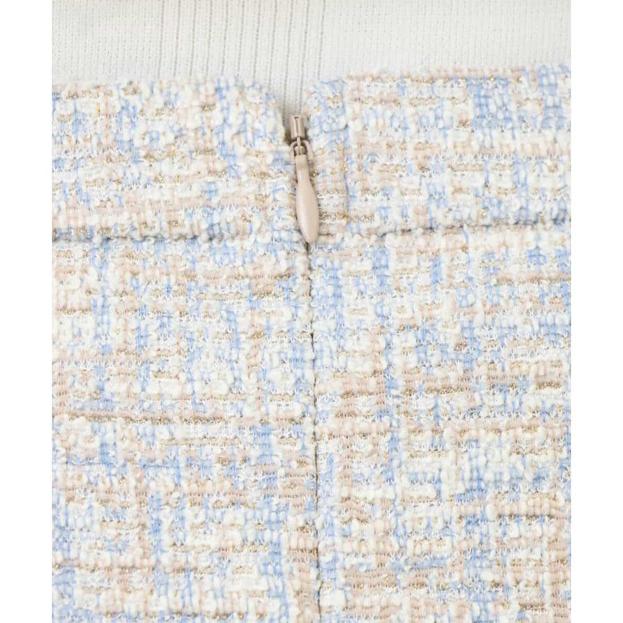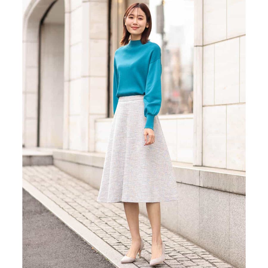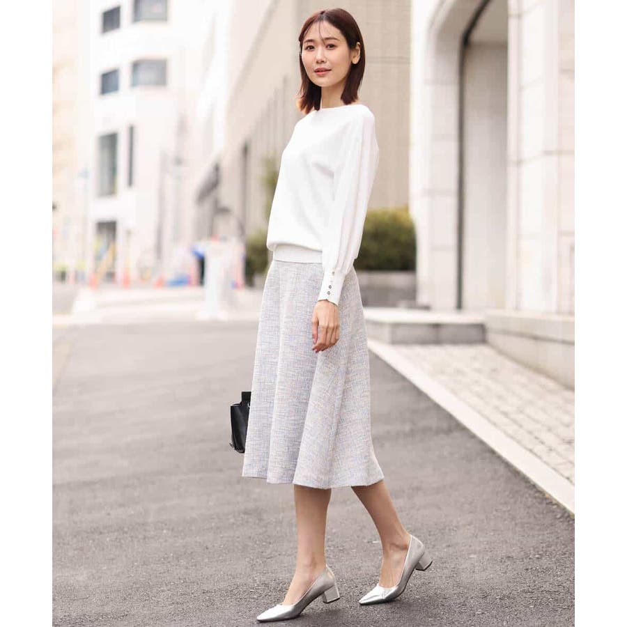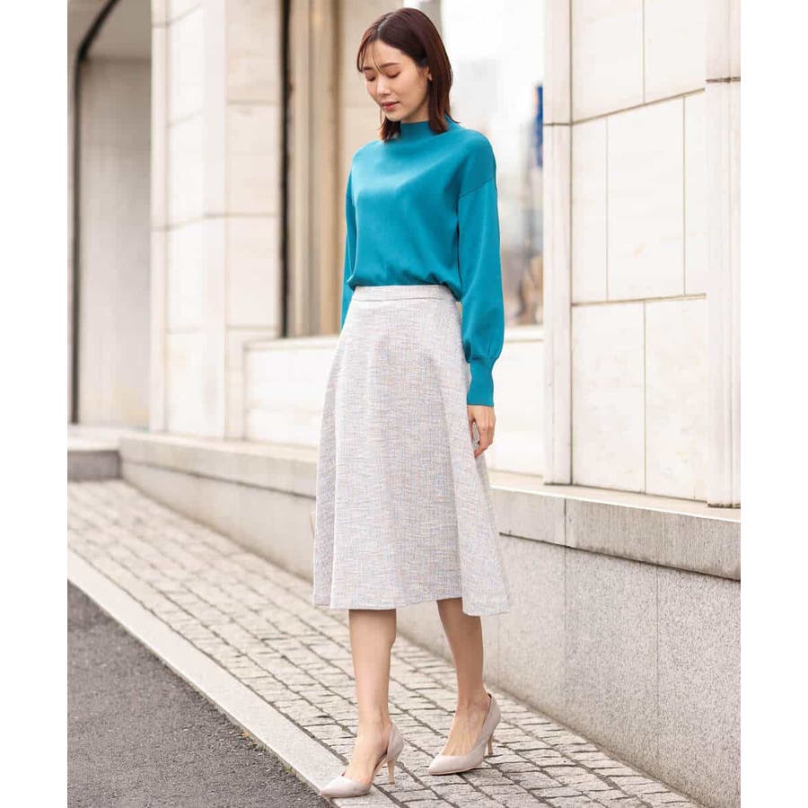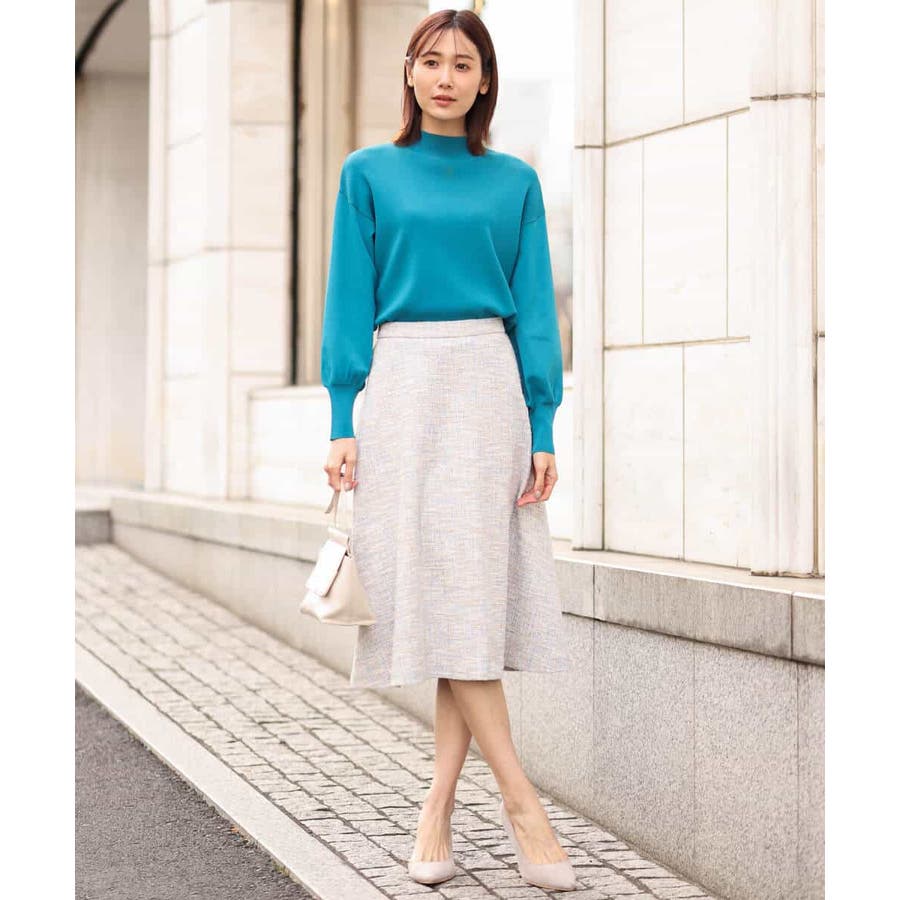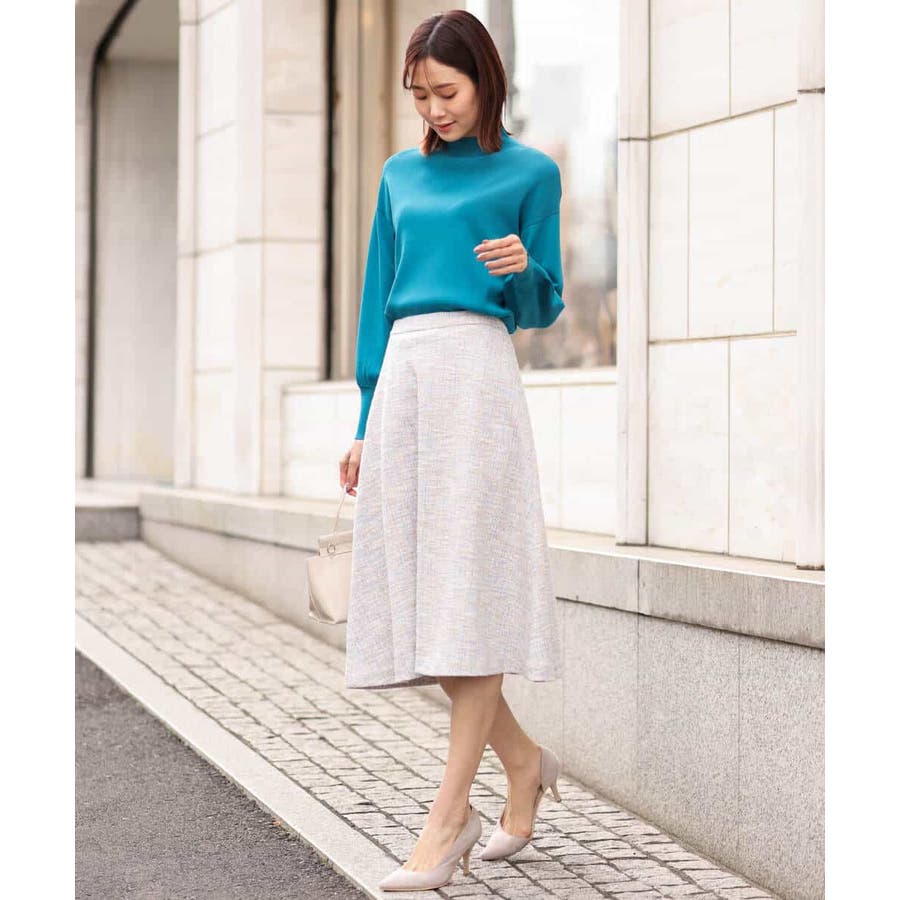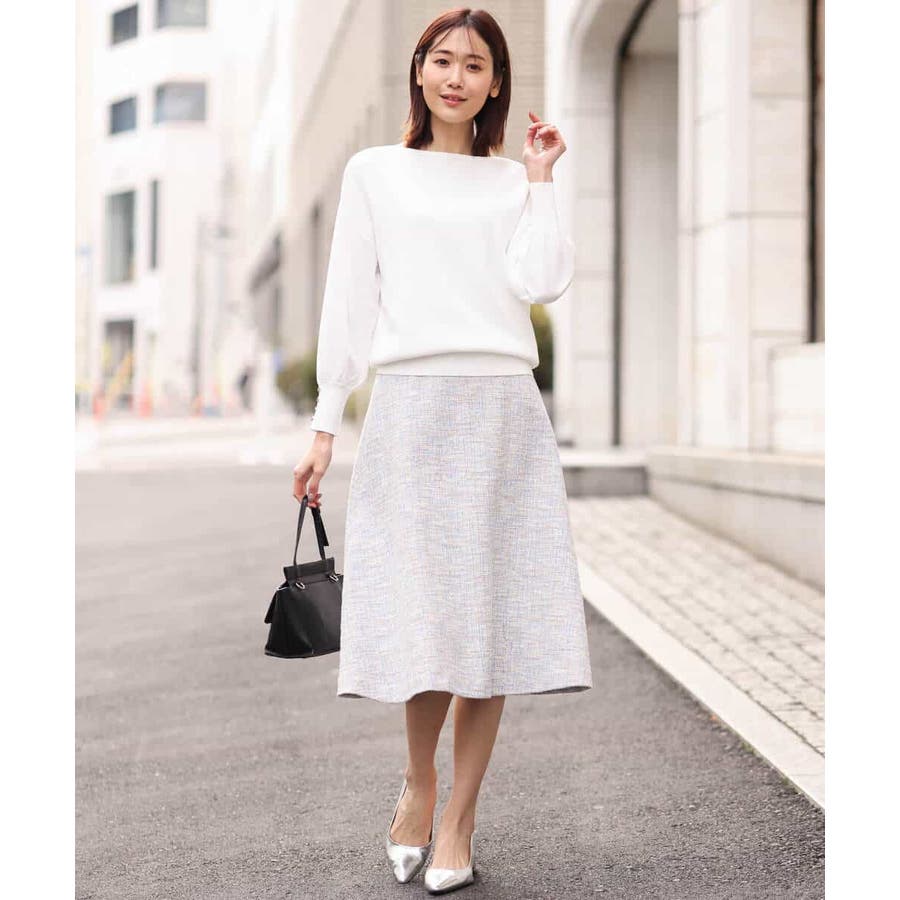 トレンドのツイード素材のスカート。裾にかけて広がるフレアーなシルエットがレディライクな印象に。