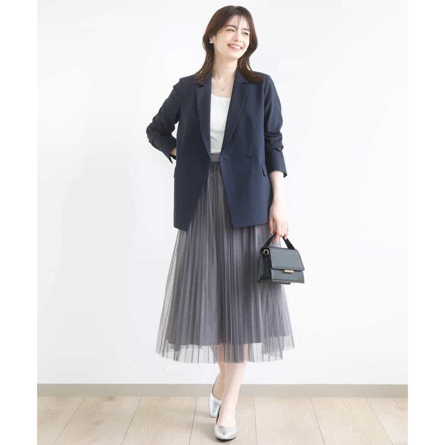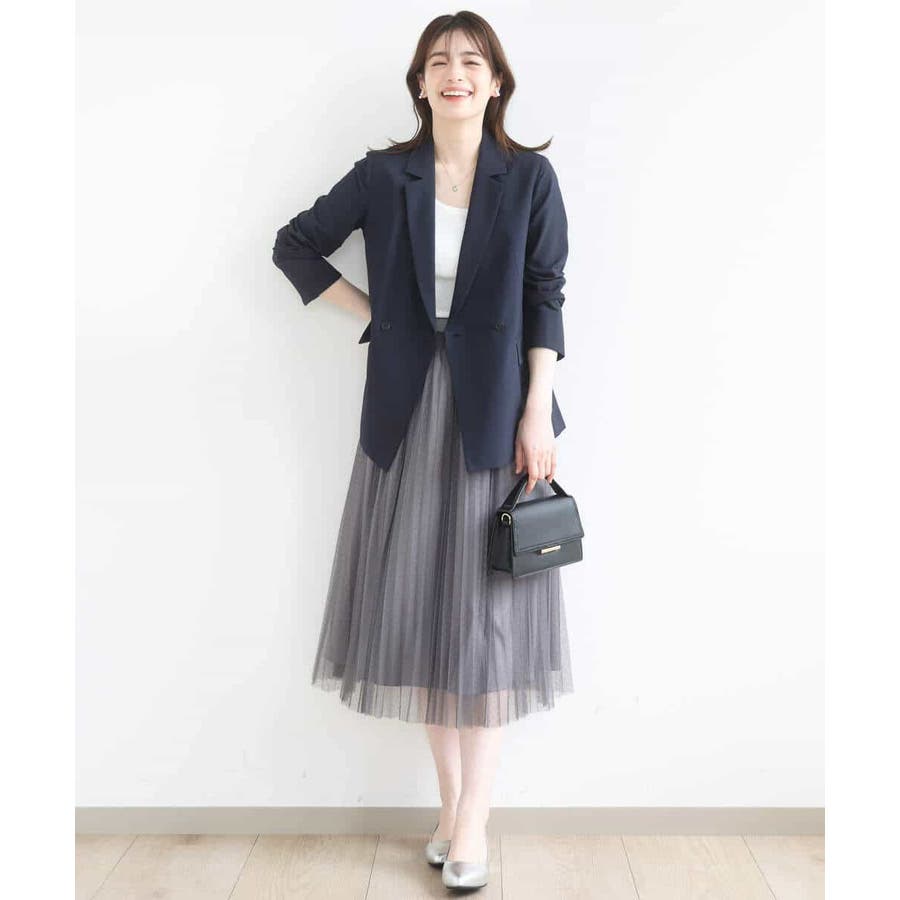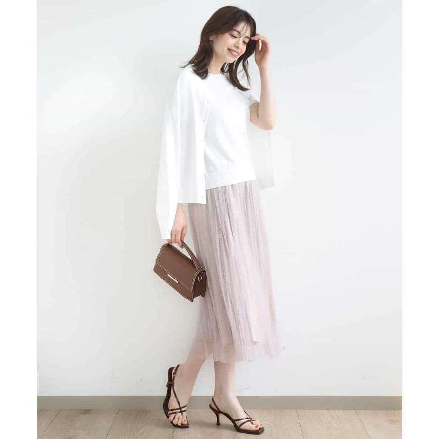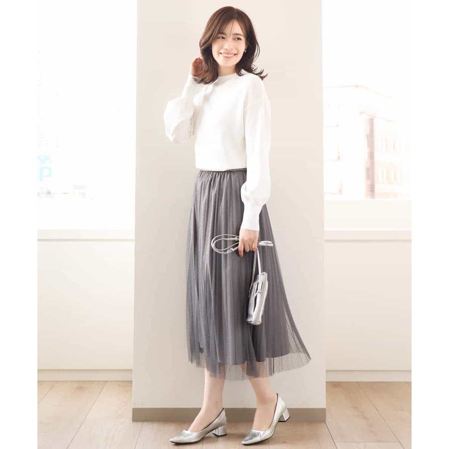 広がりすぎないシルエットはチュールの素材ながらも女性らしく大人っぽく着こなせます。シンプルなニットやブラウスと合わせてもトレンド感のある着こなしが完成します。