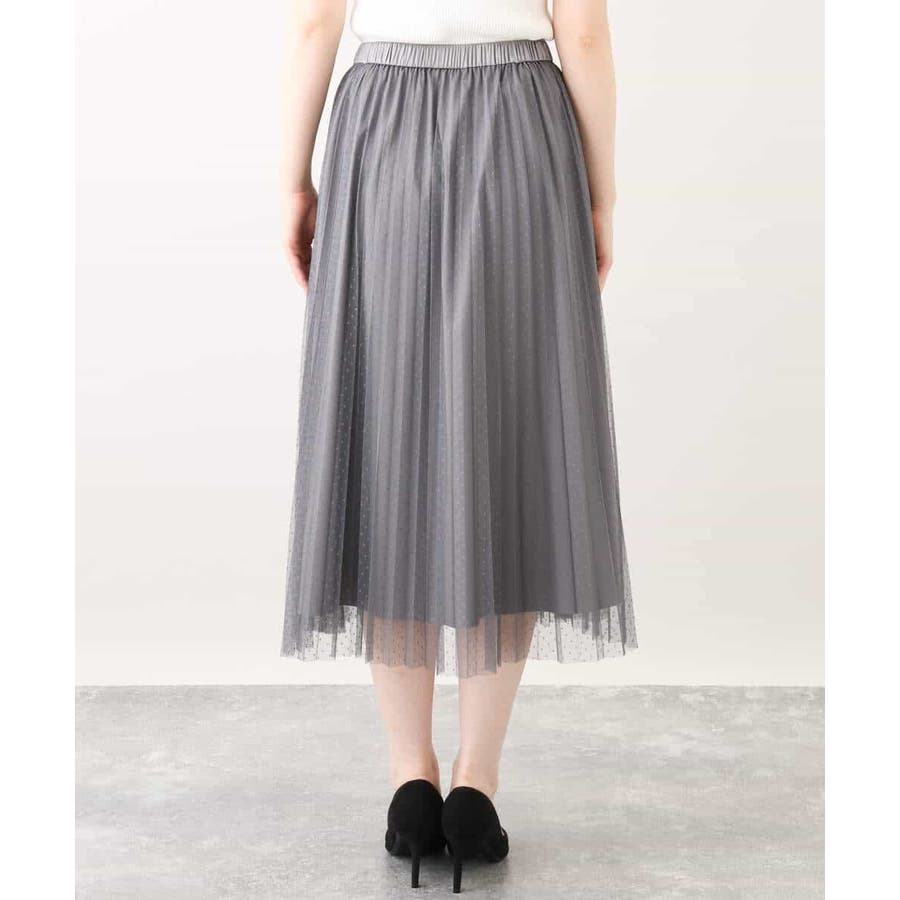 ドット柄チュールプリーツスカート/洗える