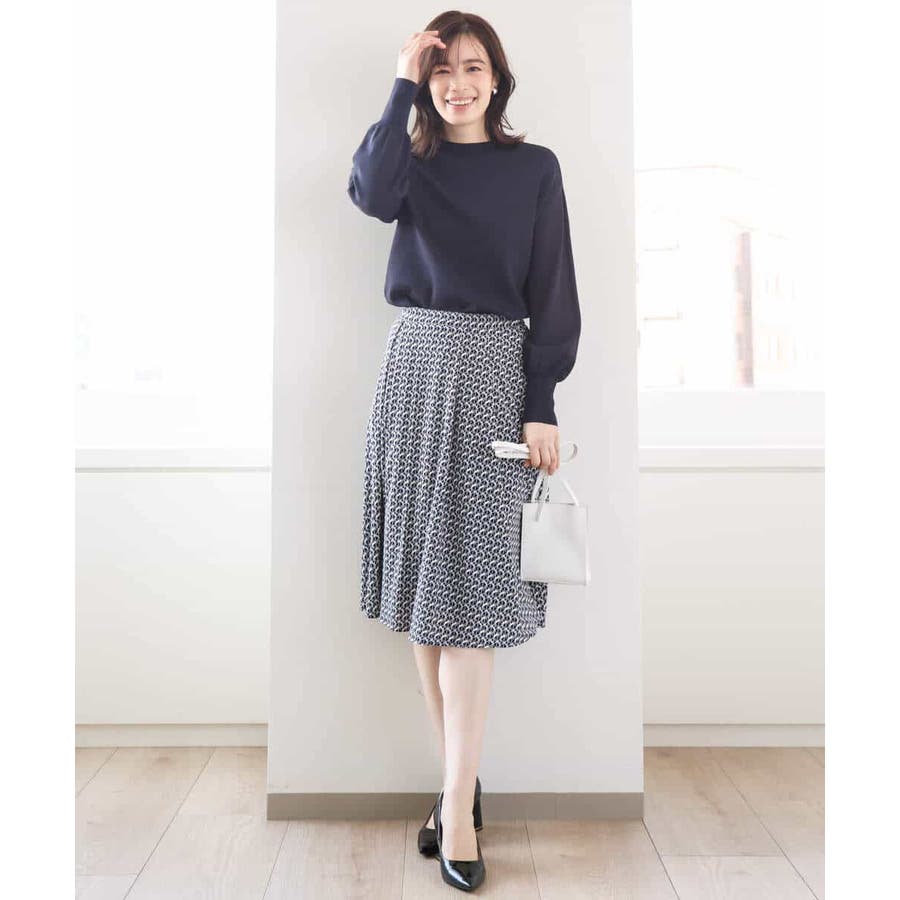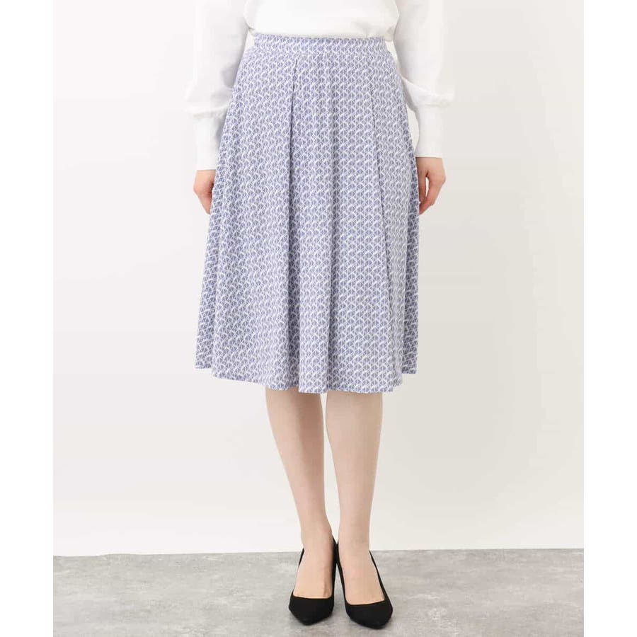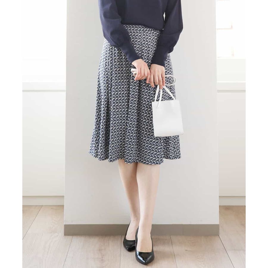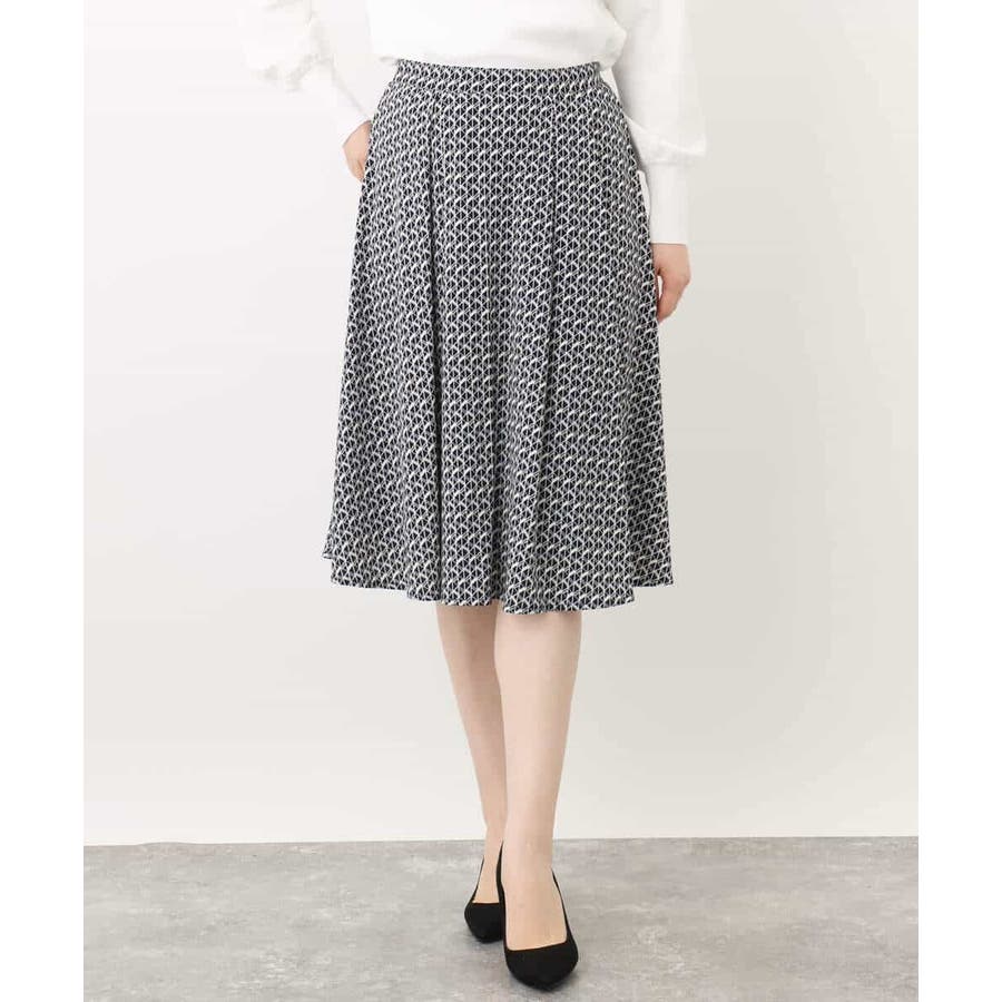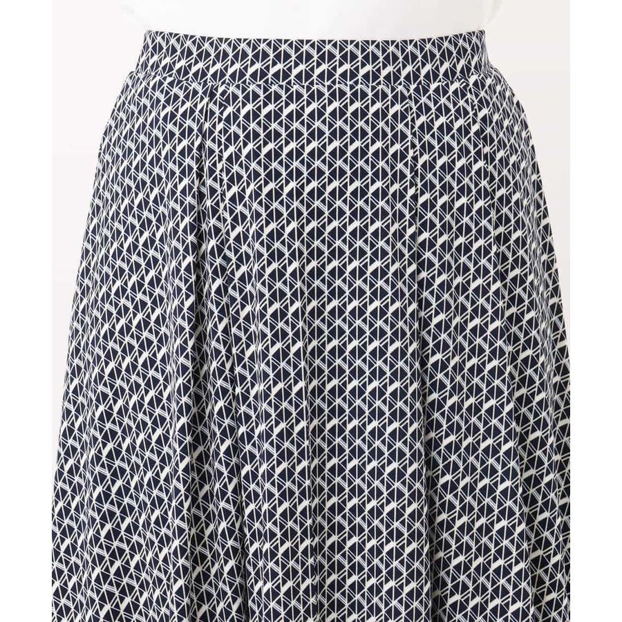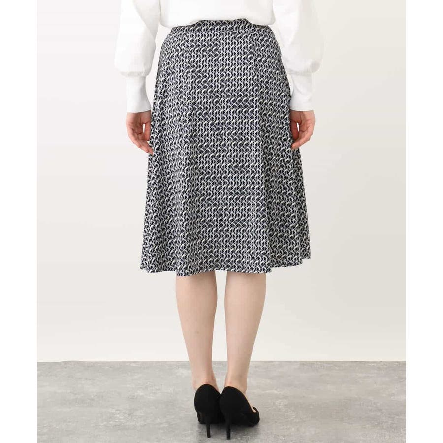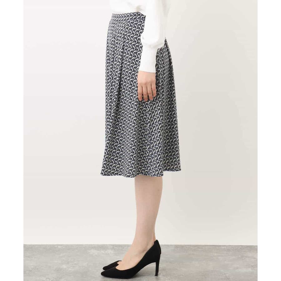 きれいめな雰囲気にぴったりな着る人を選ばないジオメトリック柄のジャージー素材のスカート。使い勝手の良いカラーが大人な印象で着こなせます。