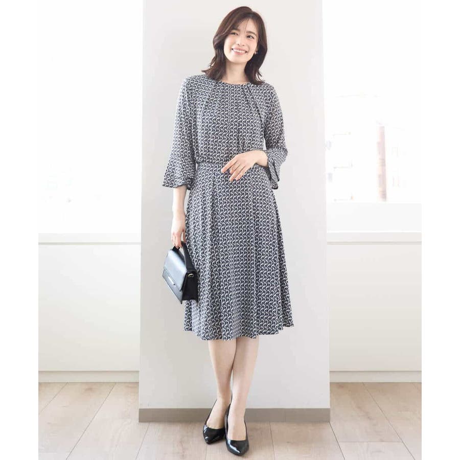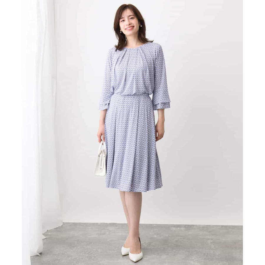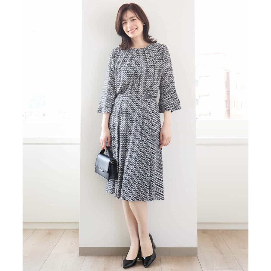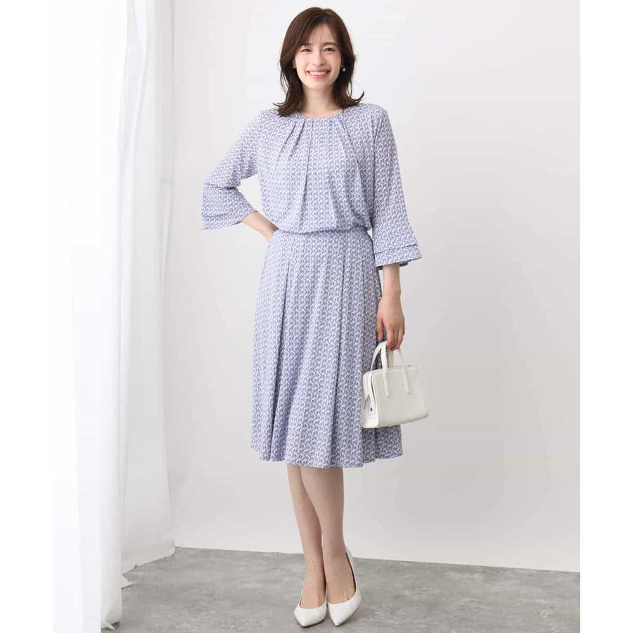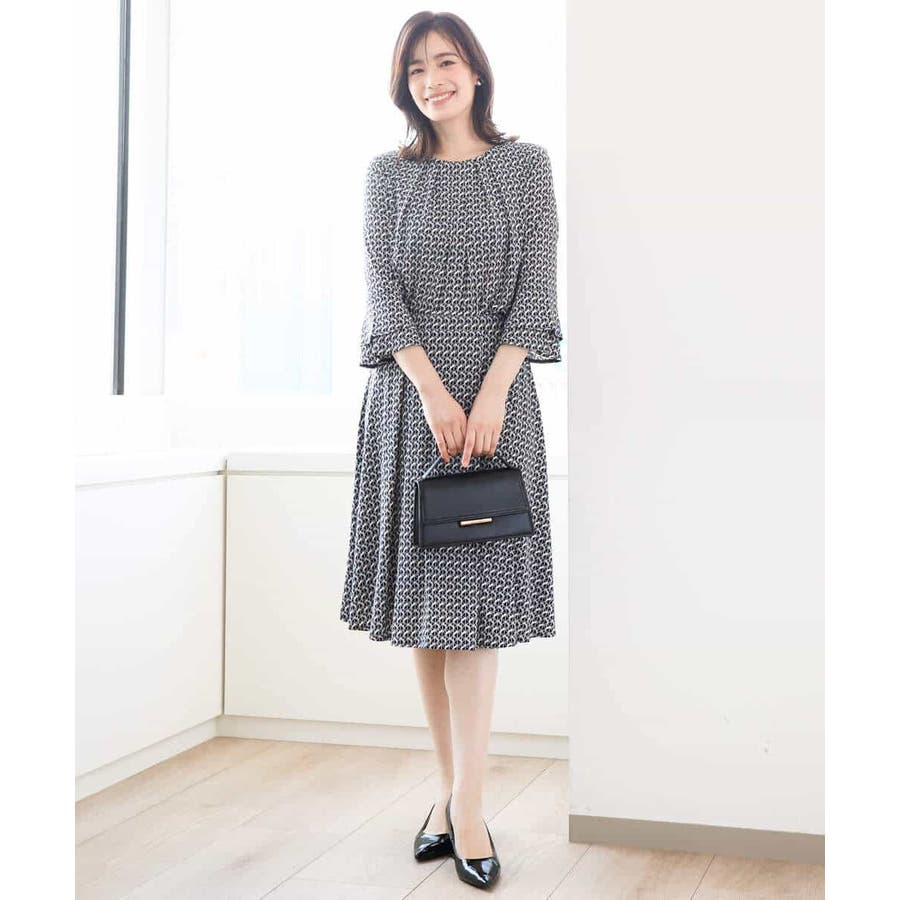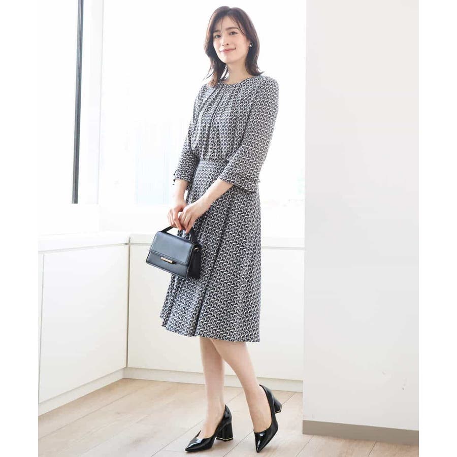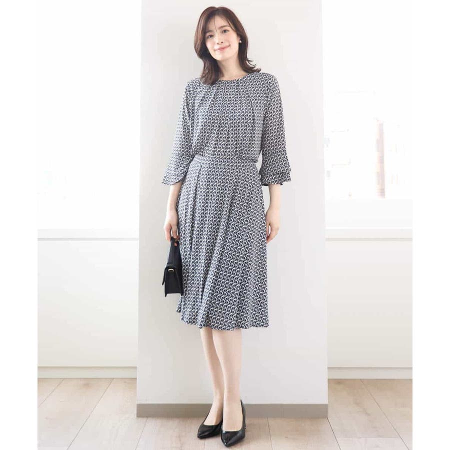 きれいめな雰囲気にぴったりな着る人を選ばないジオメトリック柄のジャージー素材のスカート。使い勝手の良いカラーが大人な印象で着こなせます。
