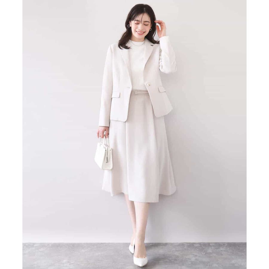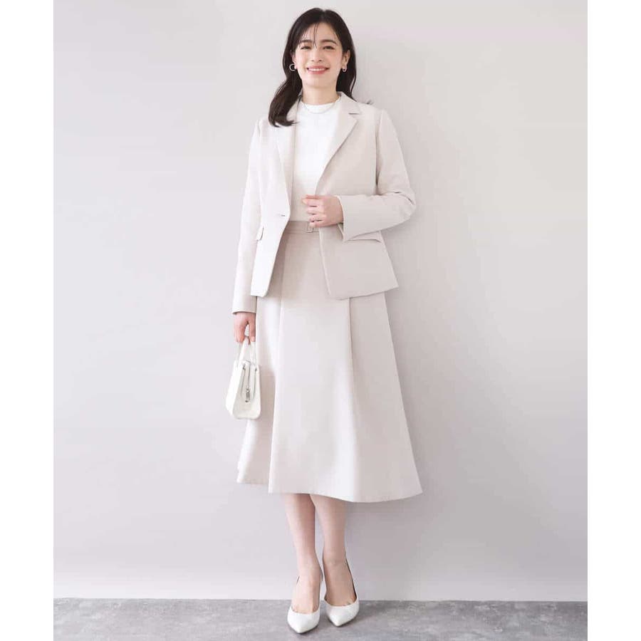 女性らしいシルエットのスカートは、ブラウス、ニットと合わせるトップスを選ばずに着回しやすさも◎。同素材のジャケットもご用意しているのでスーツセットアップとしても着用いただけます。通勤シーンにはもちろん、フォーマルな式典やセレモニーまで幅広く着回せる汎用性の高いアイテムです。