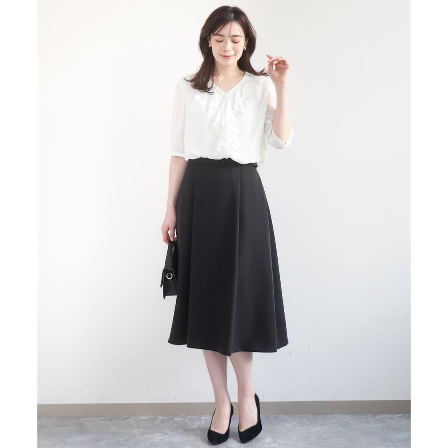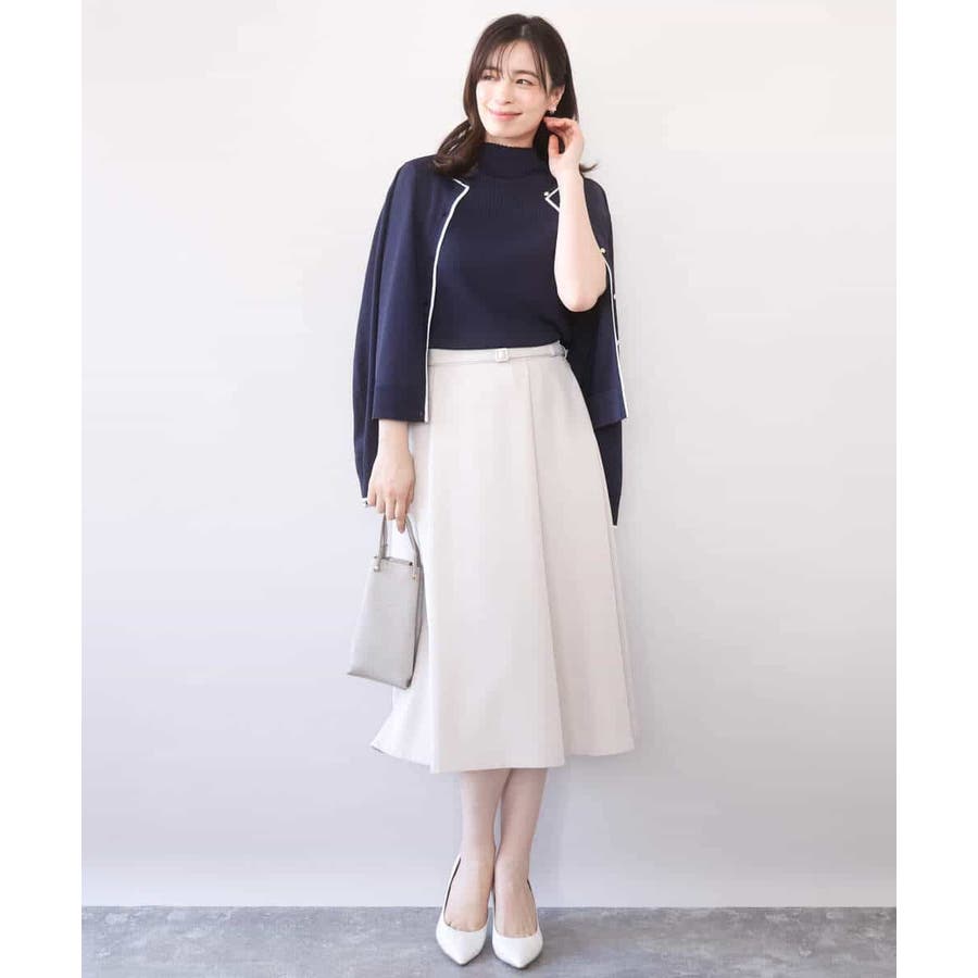 かっちりスーツも、オフィスカジュアルもどちらにも着回せる万能スカート