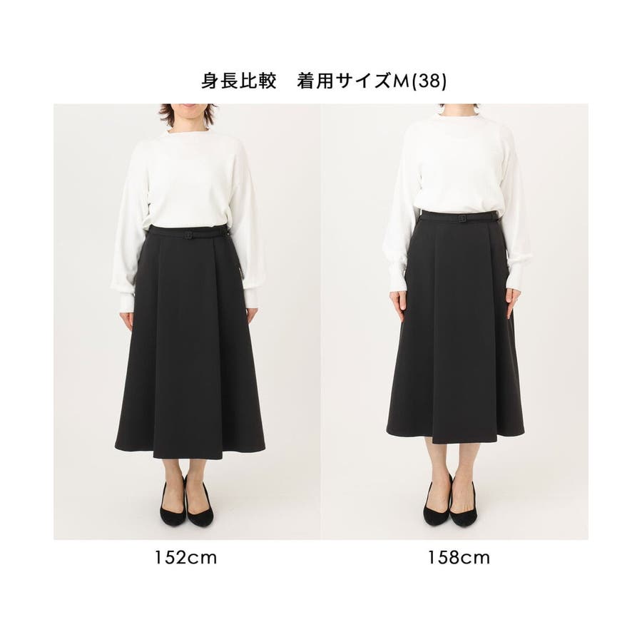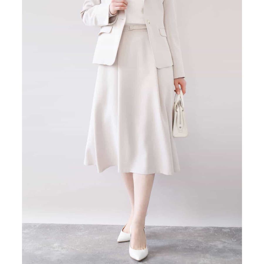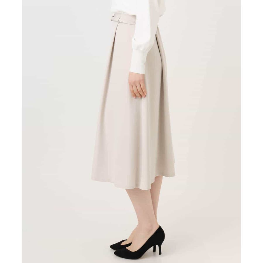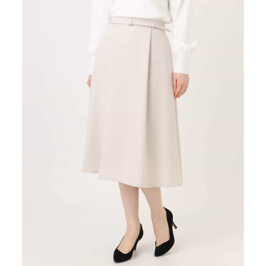 ウエストにタックを施し、裾に向かってきれいに広がるシルエットのスカート。ウエストは共地ベルト付き。きちんと感のある見た目ながら、ストレスフリーな着心地の良さにもこだわりました。