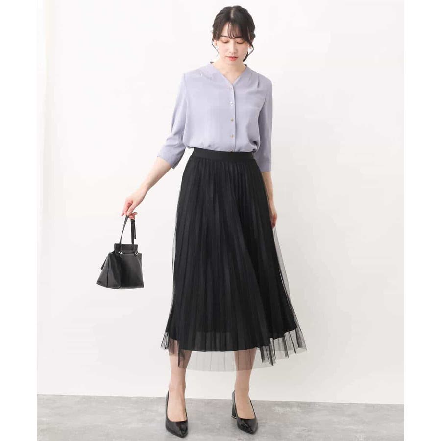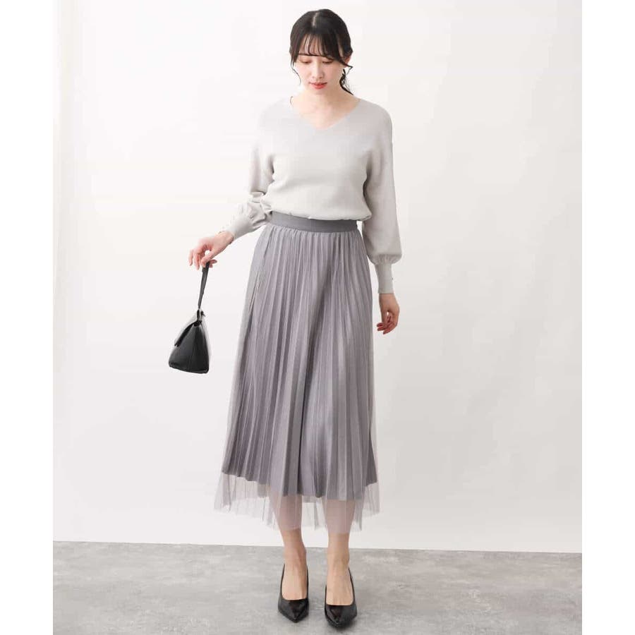 エアリー感のあるチュール素材がスタイリングのアクセントに。軽やかでやわらかな素材はレディライクな着こなしにぴったり。