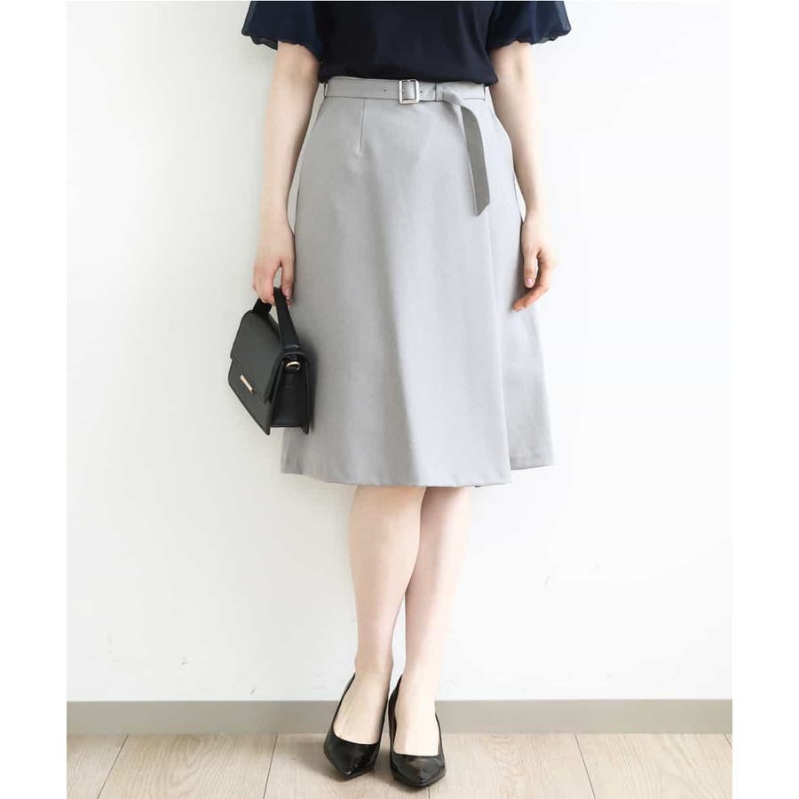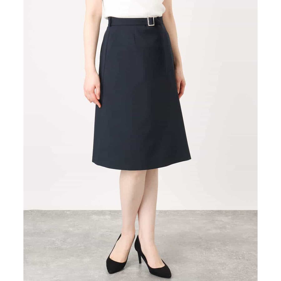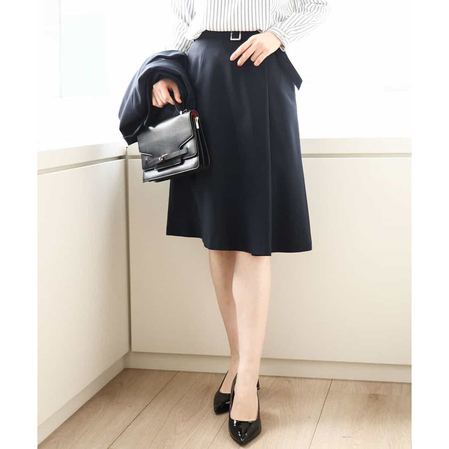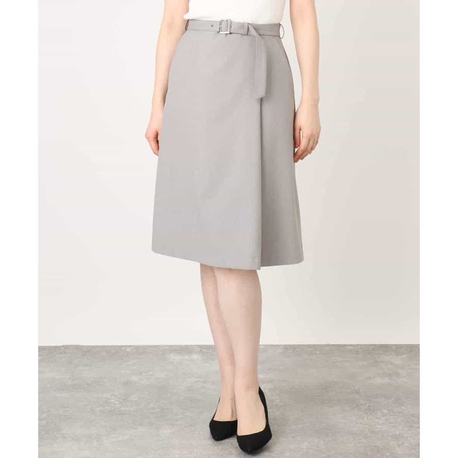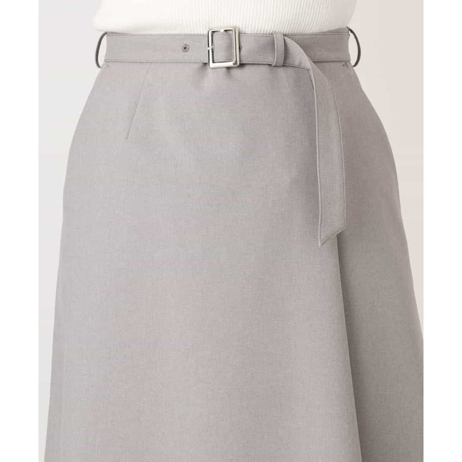 着回しもしやすいラップ風デザインのスカート。バックル付きのベルトはトップスをインしたときにポイントに。トレンド関係なく長く着こなしやすいベーシックデザインです。