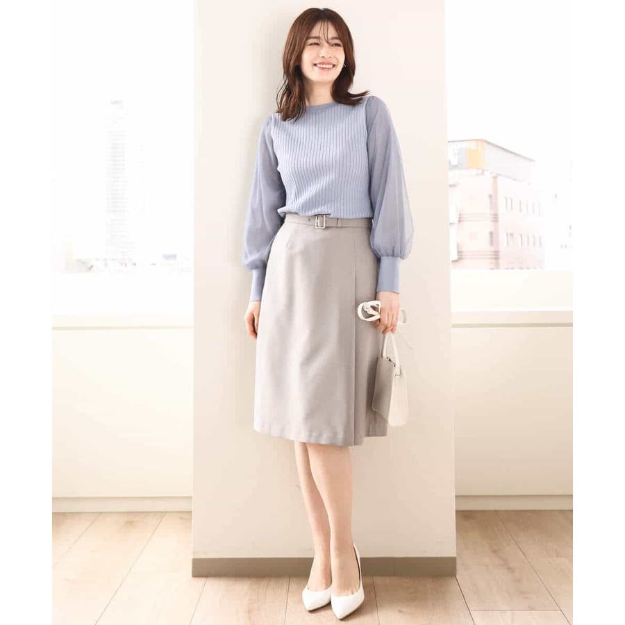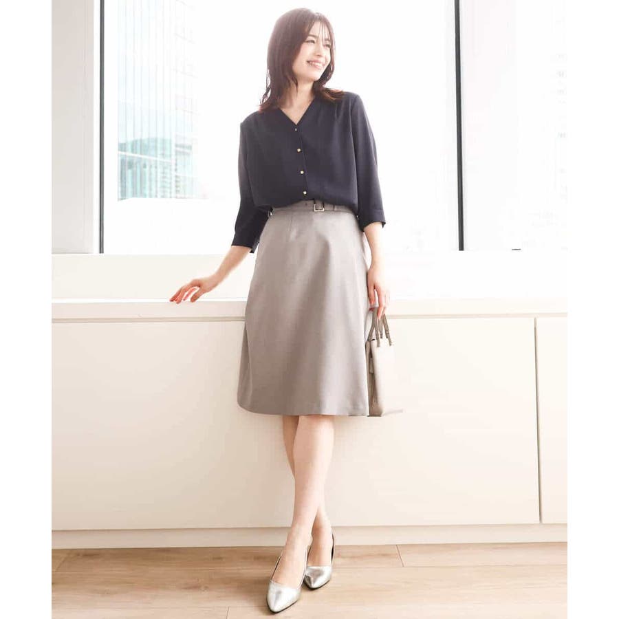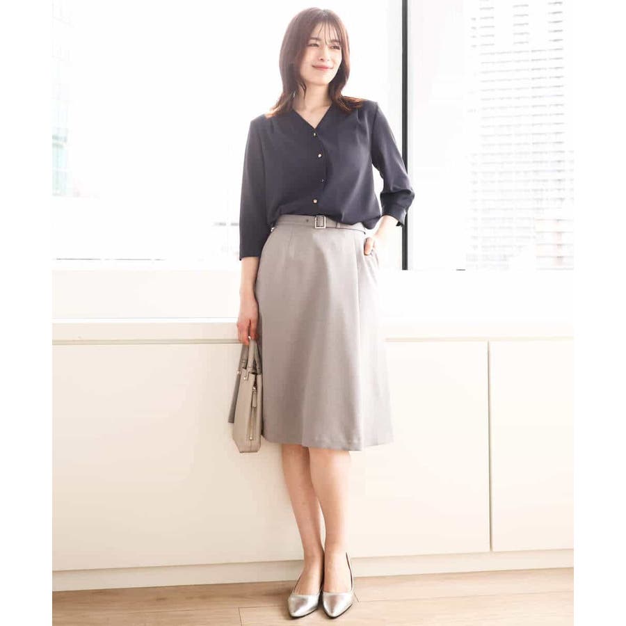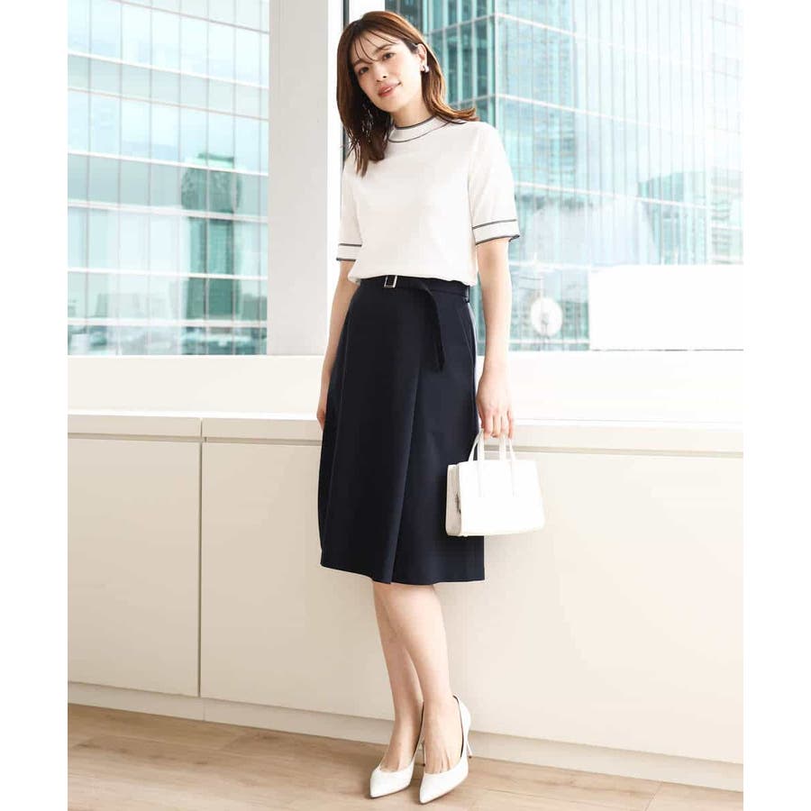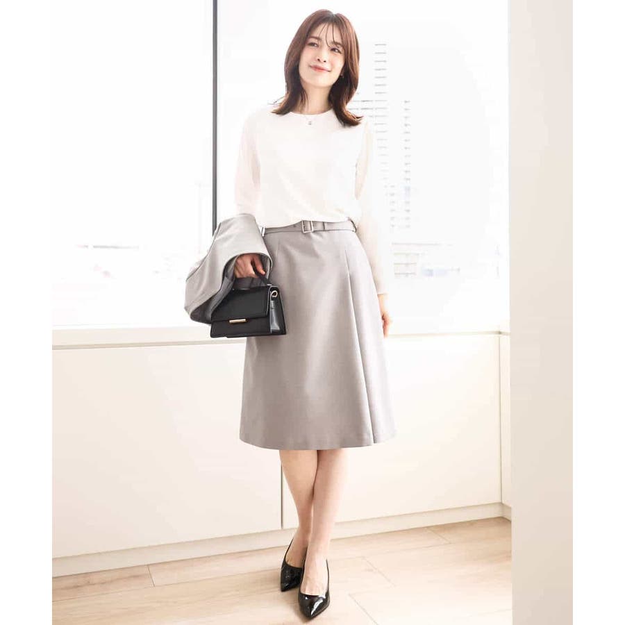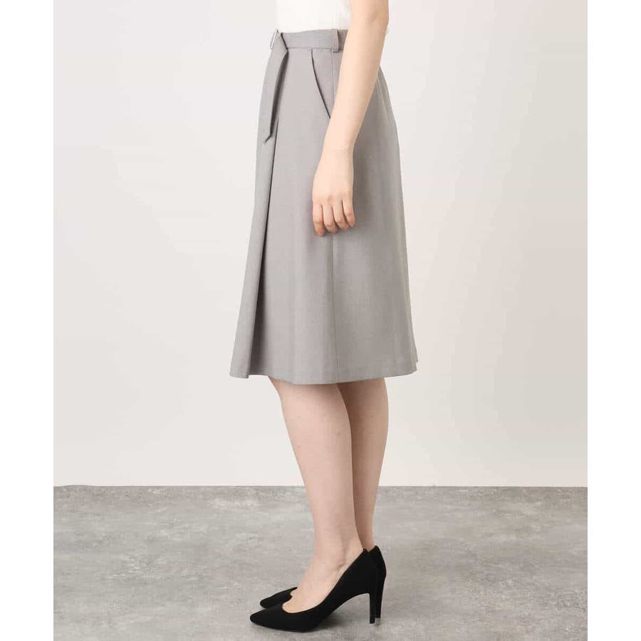 着回しもしやすいラップ風デザインのスカート。バックル付きのベルトはトップスをインしたときにポイントに。トレンド関係なく長く着こなしやすいベーシックデザインです。
