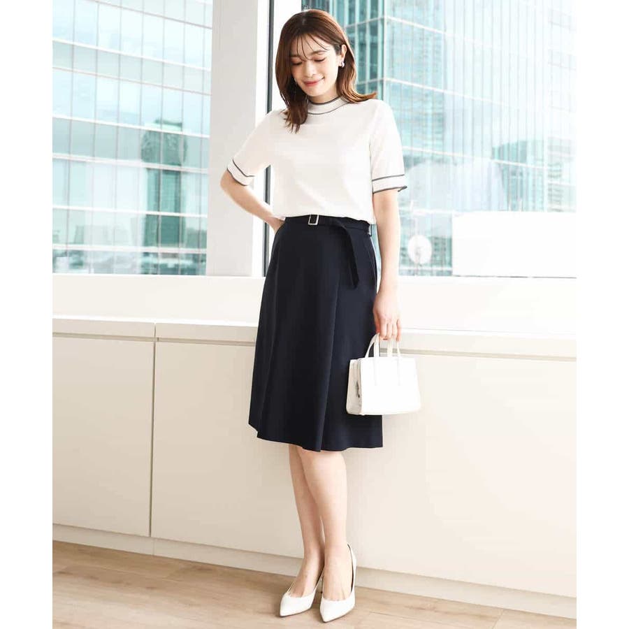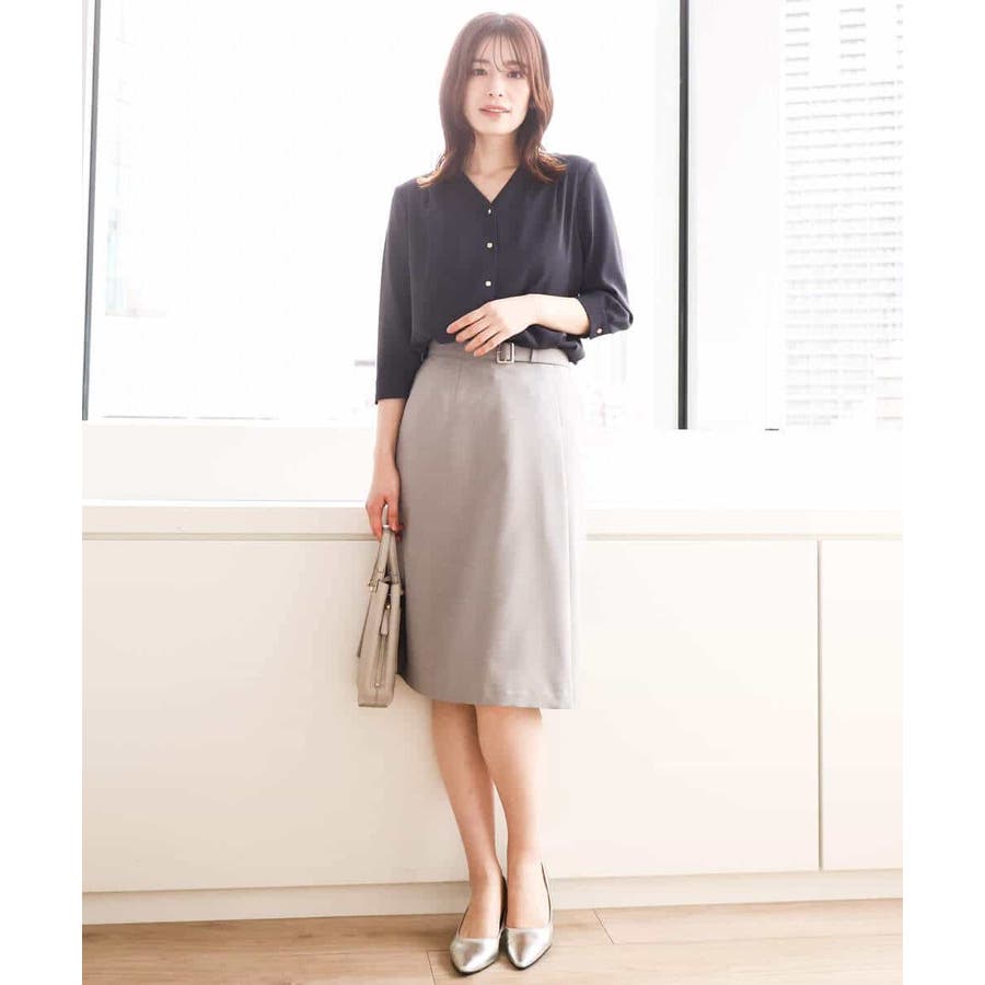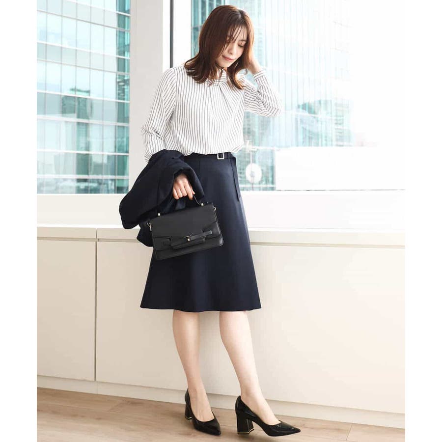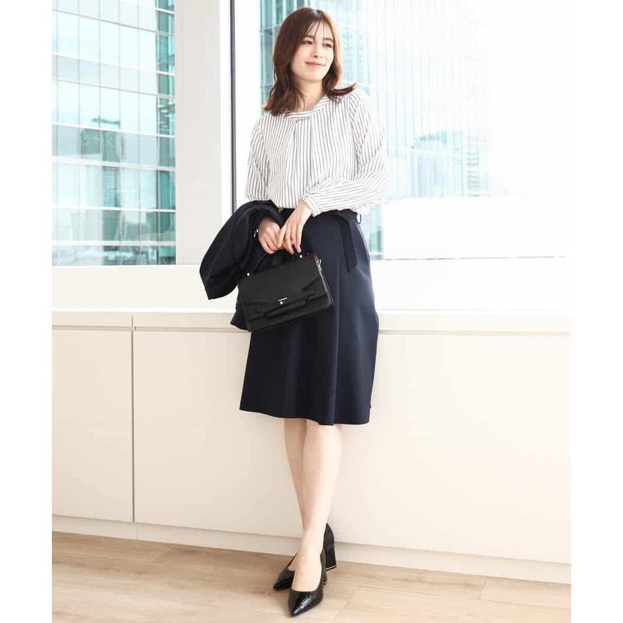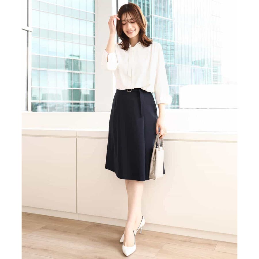 着回しもしやすいラップ風デザインのスカート。バックル付きのベルトはトップスをインしたときにポイントに。トレンド関係なく長く着こなしやすいベーシックデザインです。