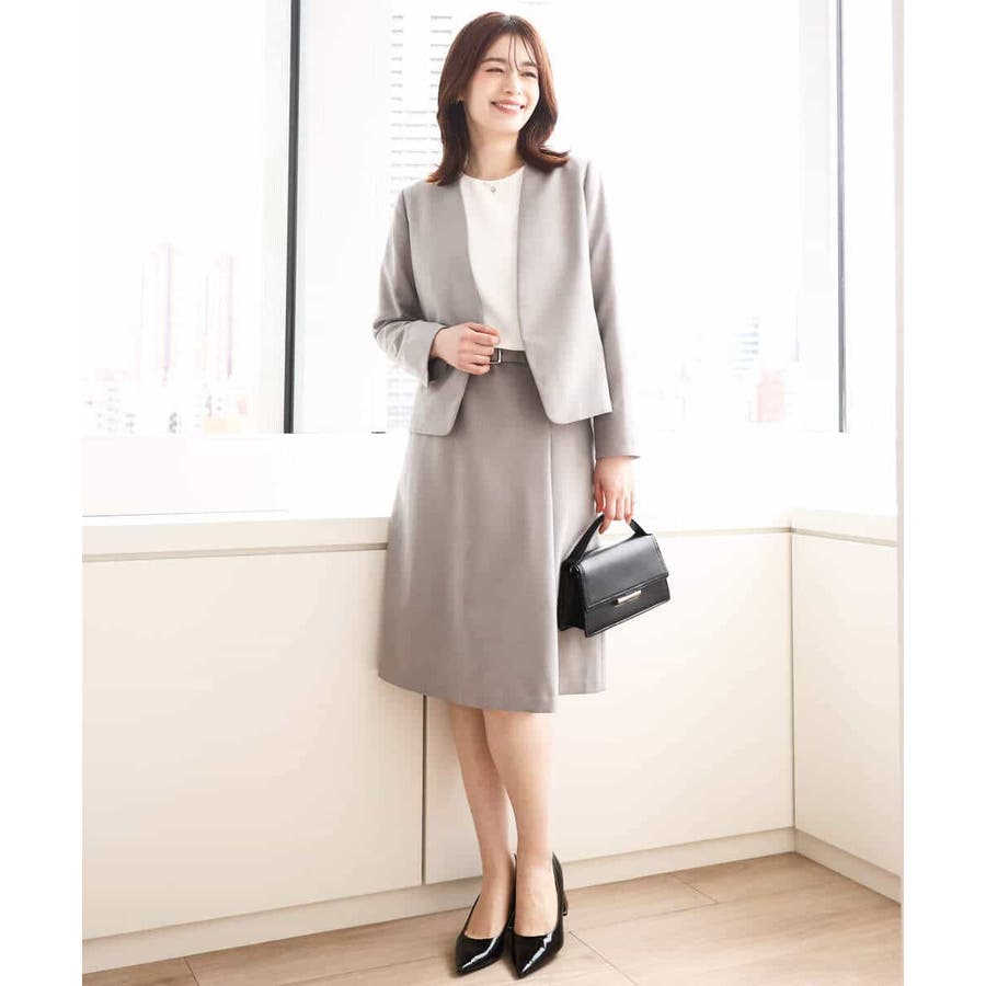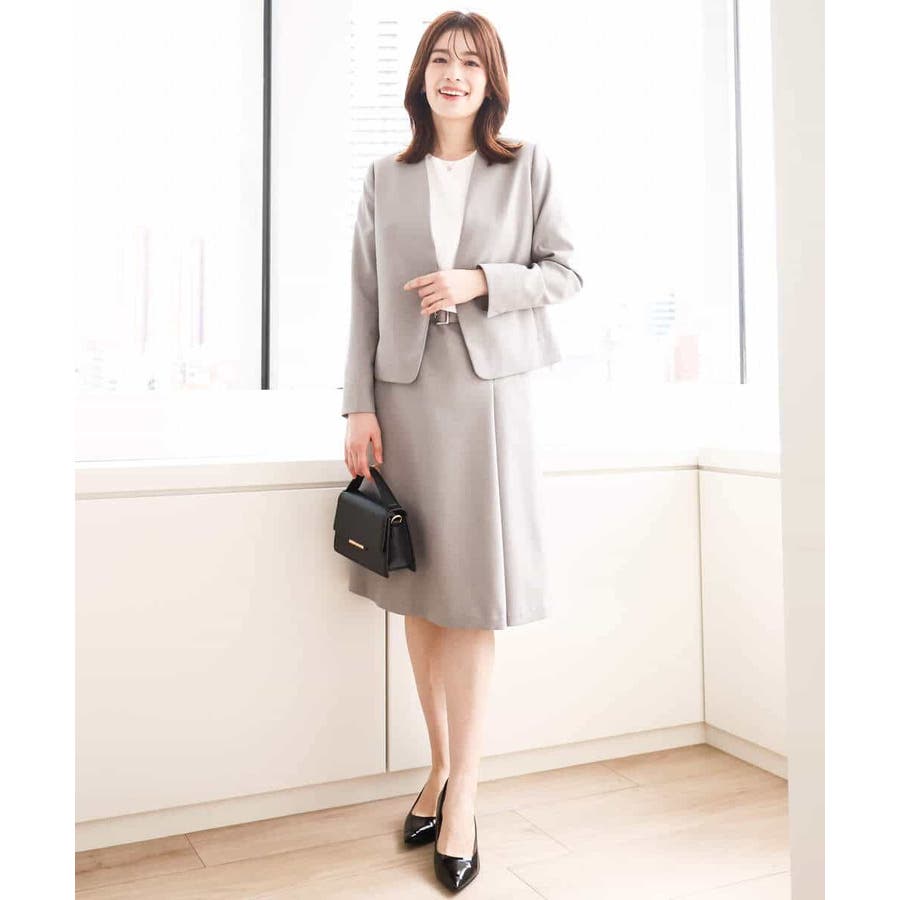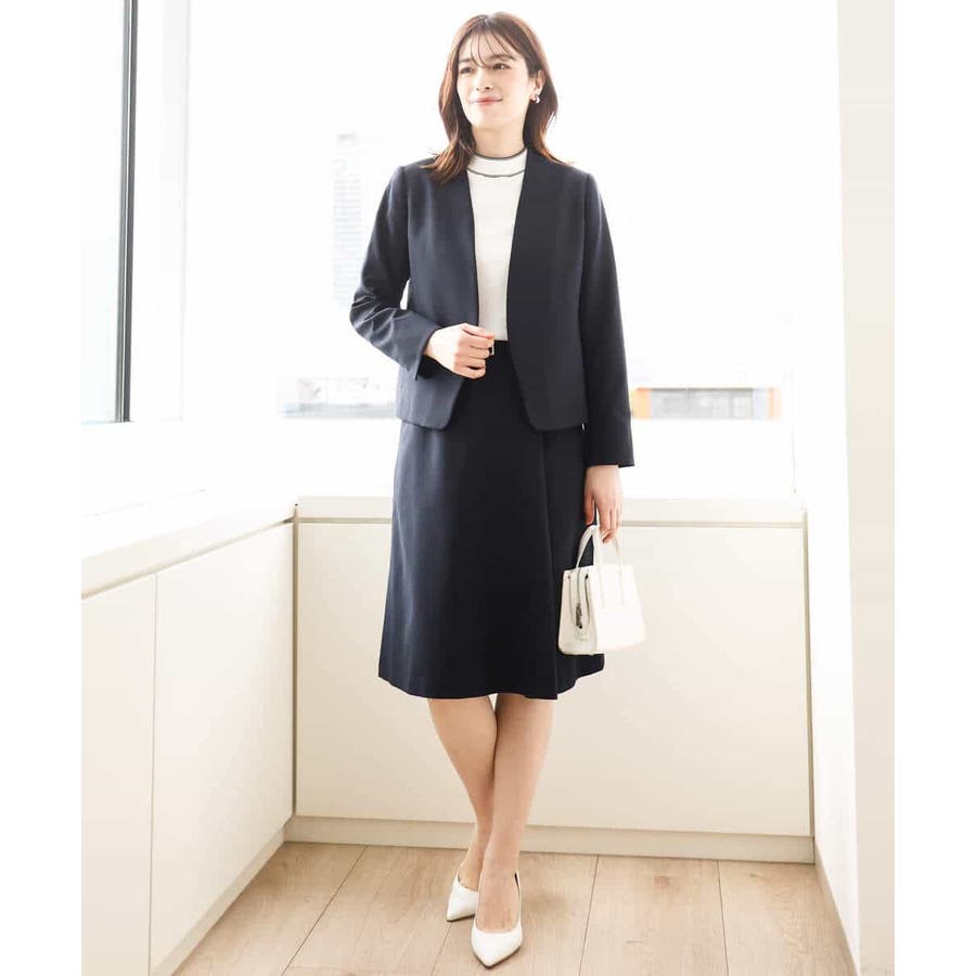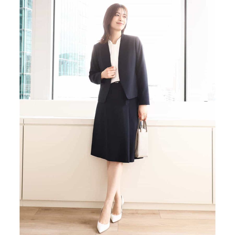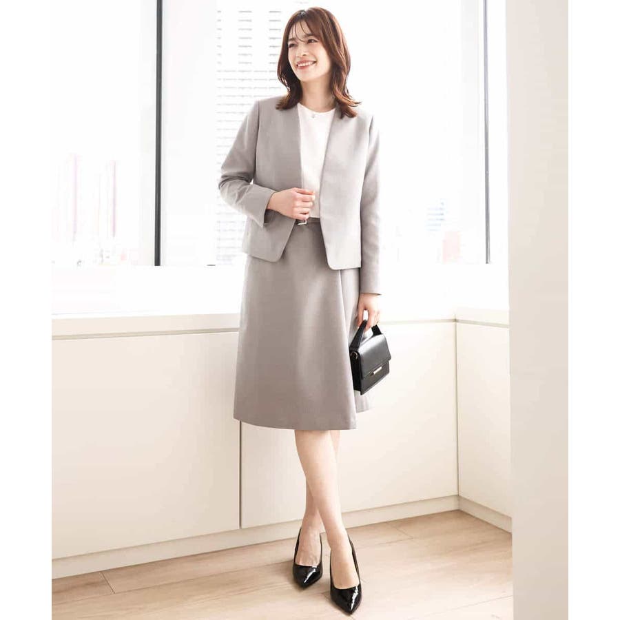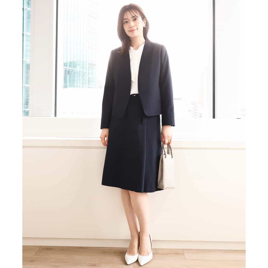 同素材でカラーレスジャケット、テーラードジャケット、パンツもご用意しており、スーツセットアップとして着用可能。カラーも使い勝手のいいネイビーとグレーの2色展開。毎日のお仕事着におすすめなスーツです。