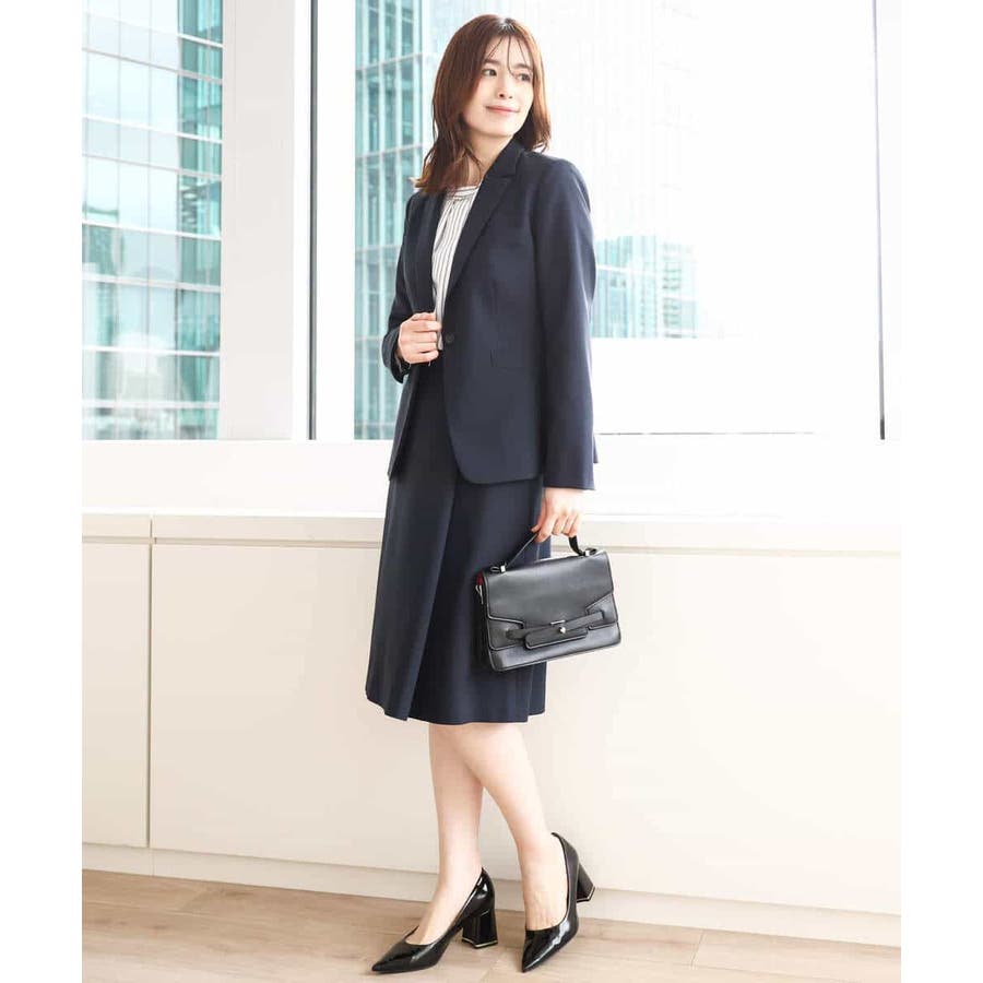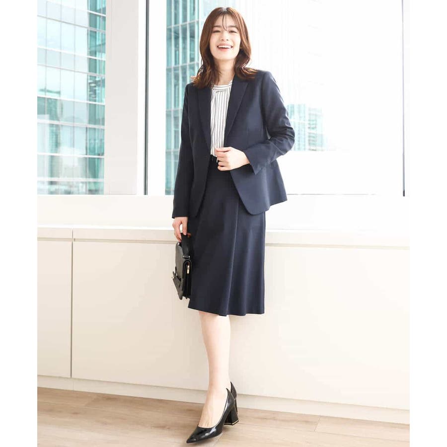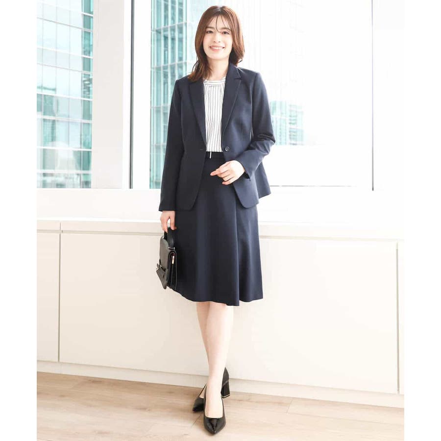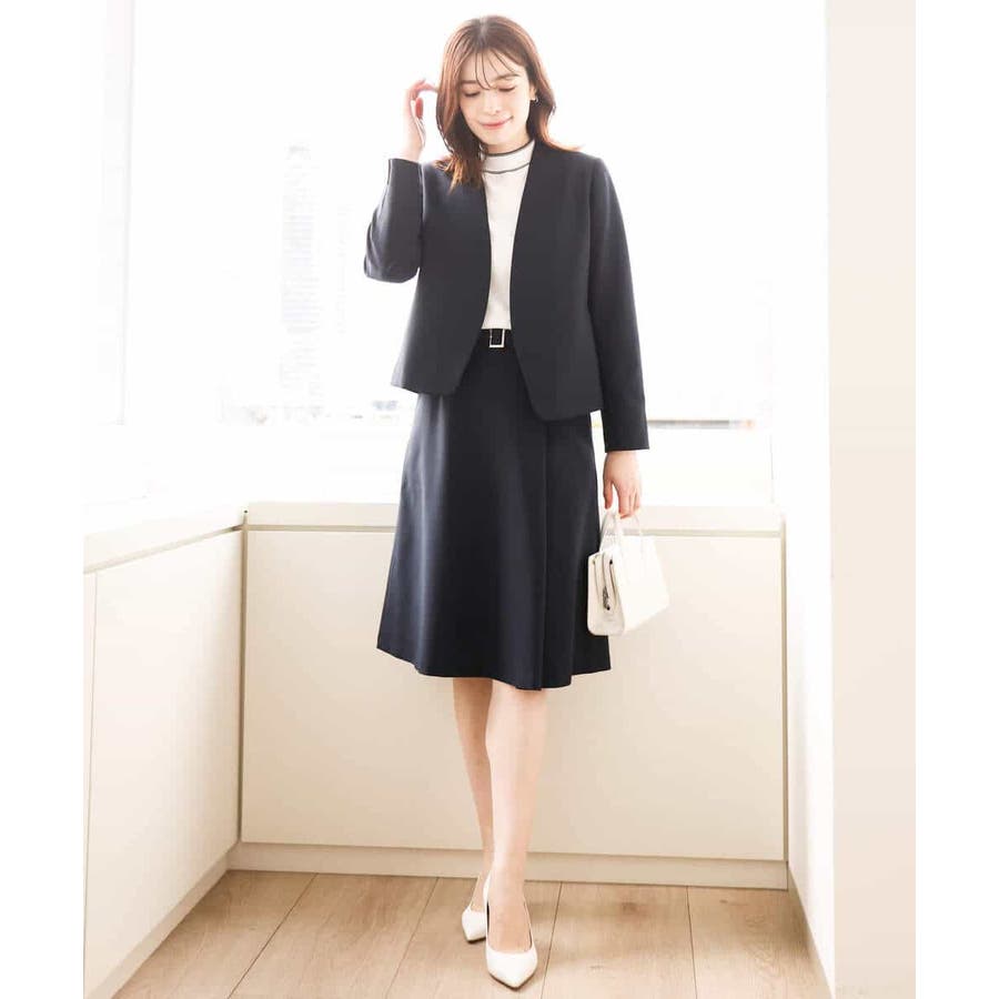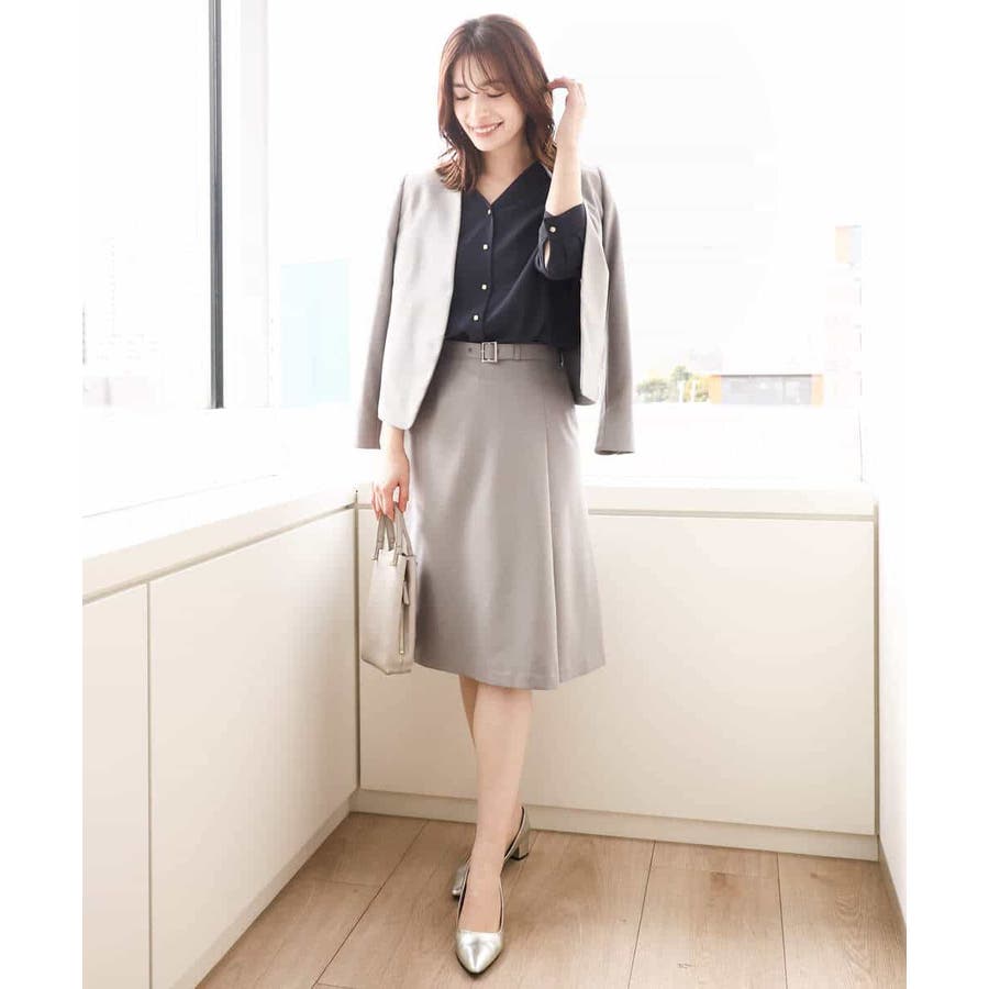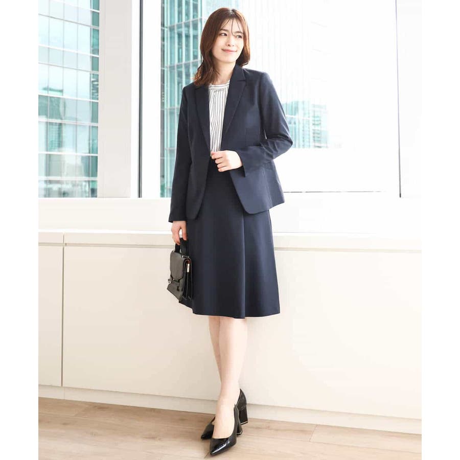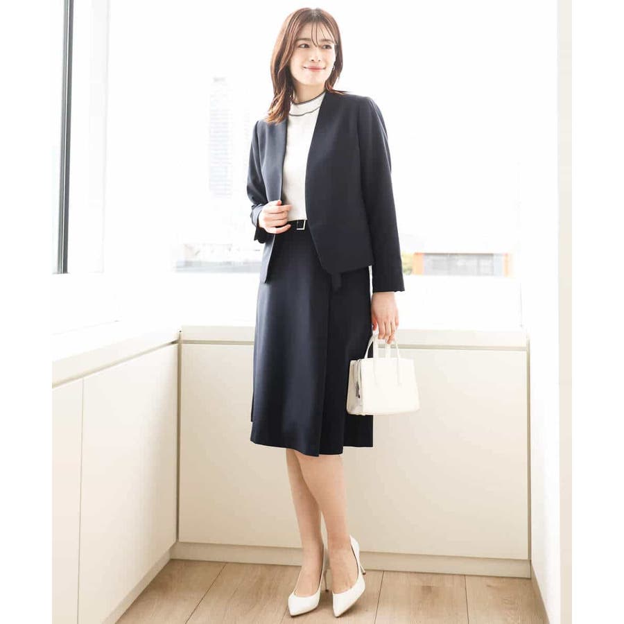 同素材でカラーレスジャケット、テーラードジャケット、パンツもご用意しており、スーツセットアップとして着用可能。カラーも使い勝手のいいネイビーとグレーの2色展開。毎日のお仕事着におすすめなスーツです。