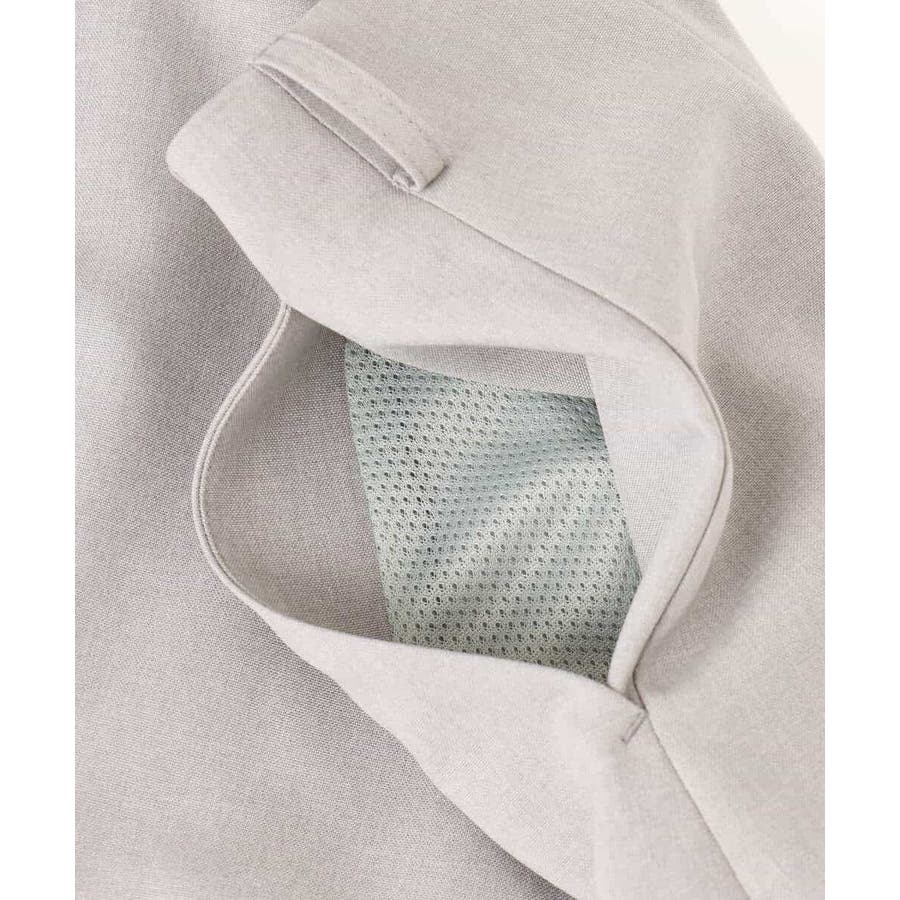 スーツにちょうどいい、さらりとした上品見えな素材を使用。ポケット裏にはメッシュ裏地を使用し、洗濯後に乾きやすいのもポイントです。