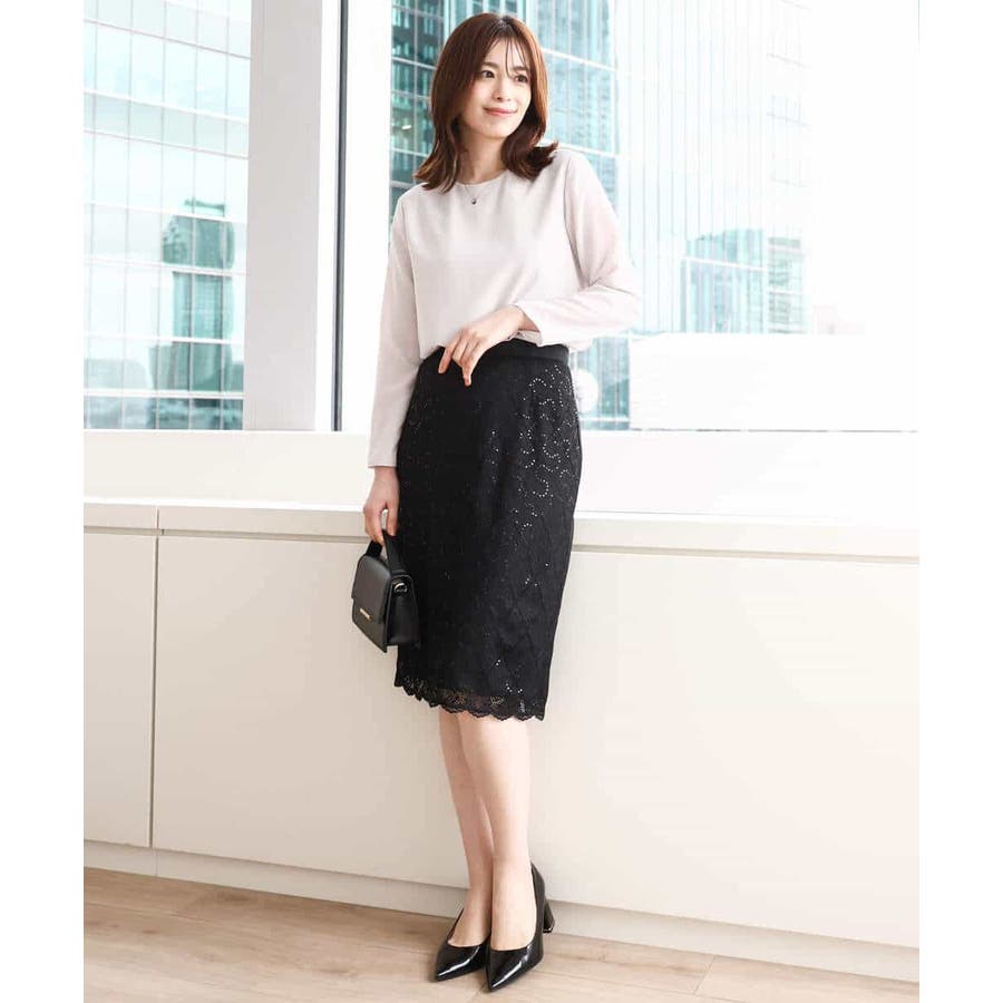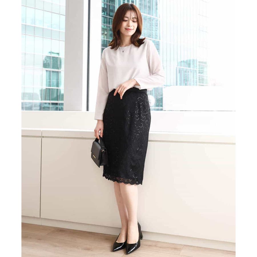 お仕事シーンに欠かせないタイトスカート。すっきりとしたシルエットがきちんと感のある印象に。深すぎないバックスリットは上品見えと足さばきの良さと両方を叶えてくれます。