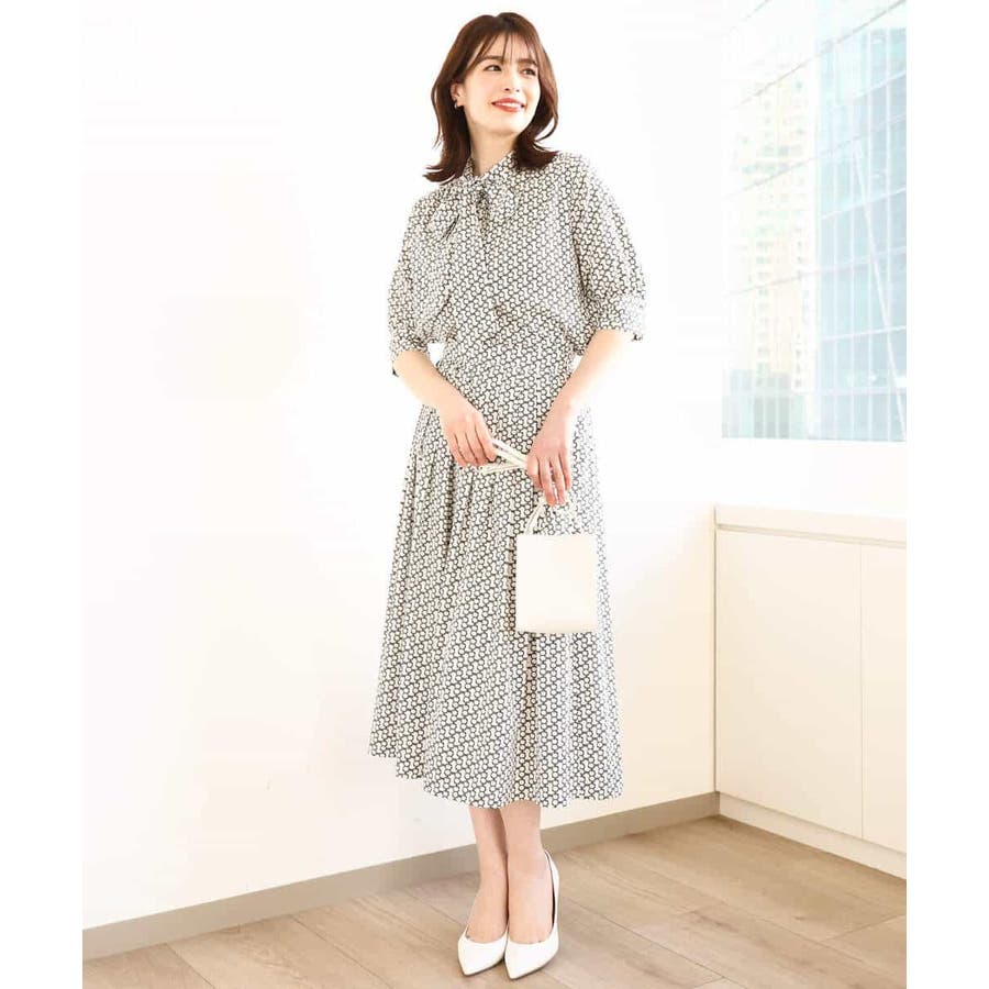 膝下丈のスカートは上品できれいめな印象に。トップスはニット、ブラウスとシンプルなものであればどれも相性良く着合わせられます。同素材のブラウスもご用意しているので、セットアップでワンピース風の着こなしもおすすめです。