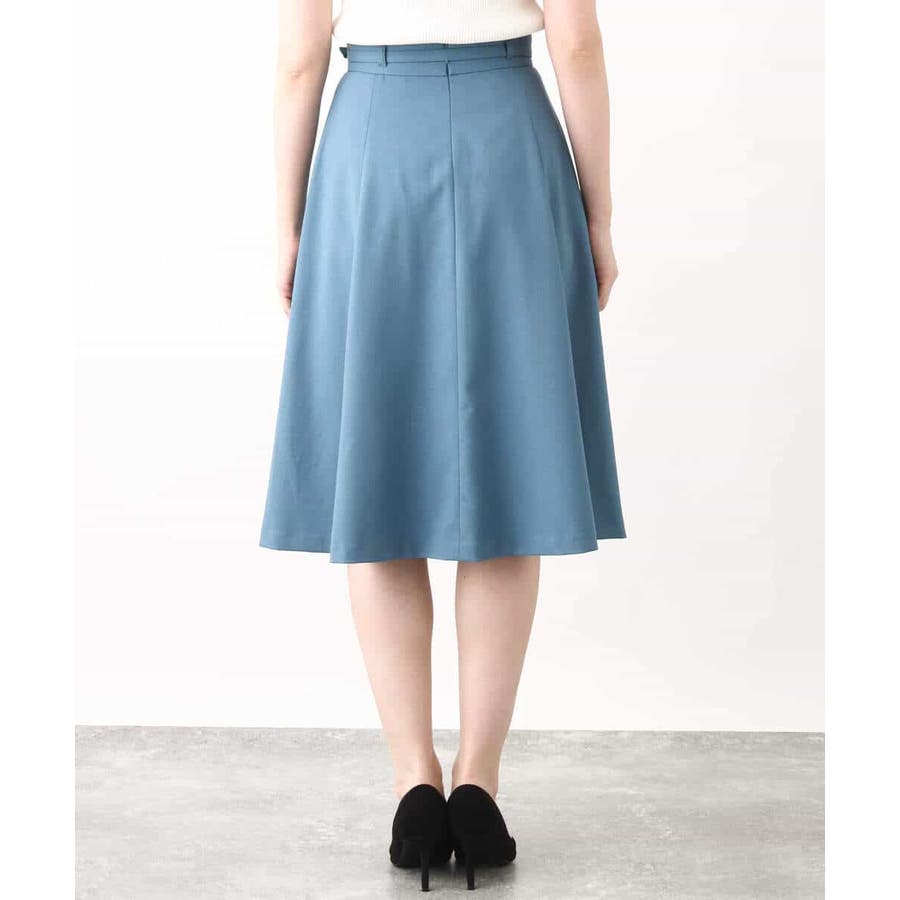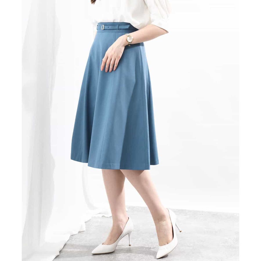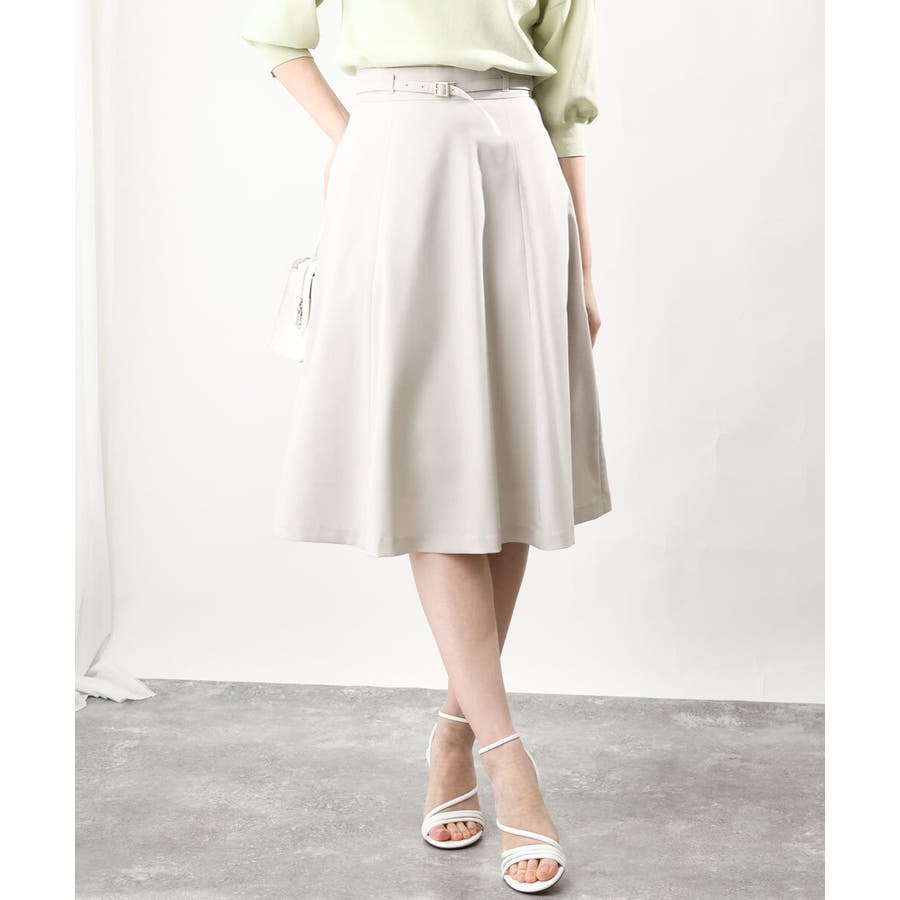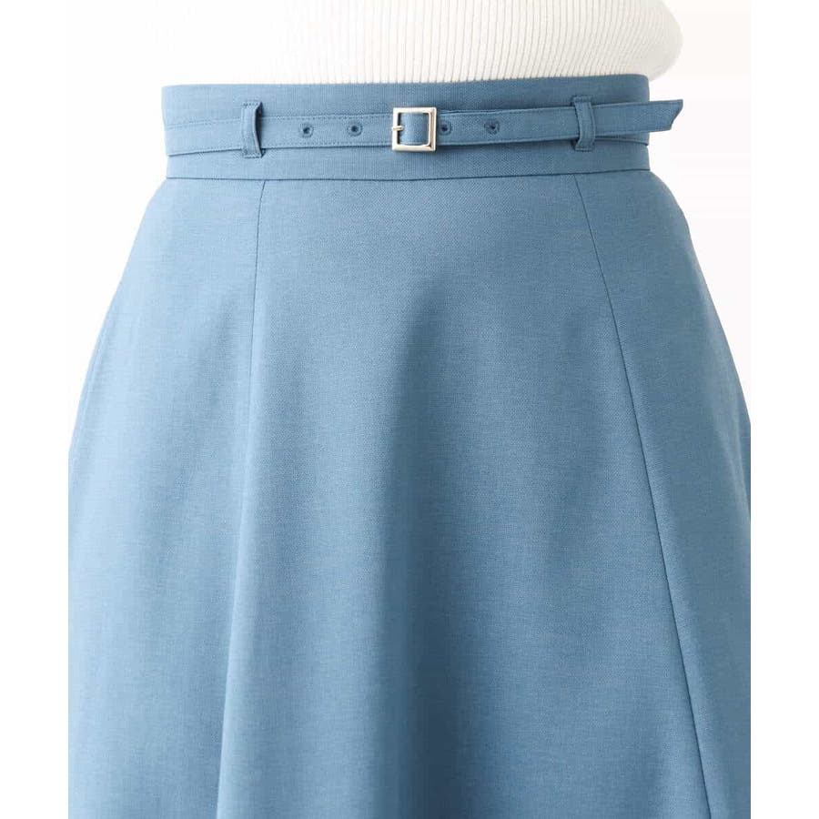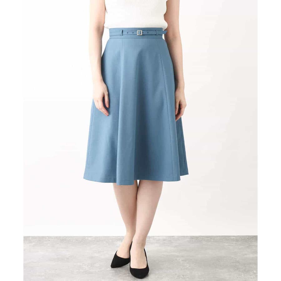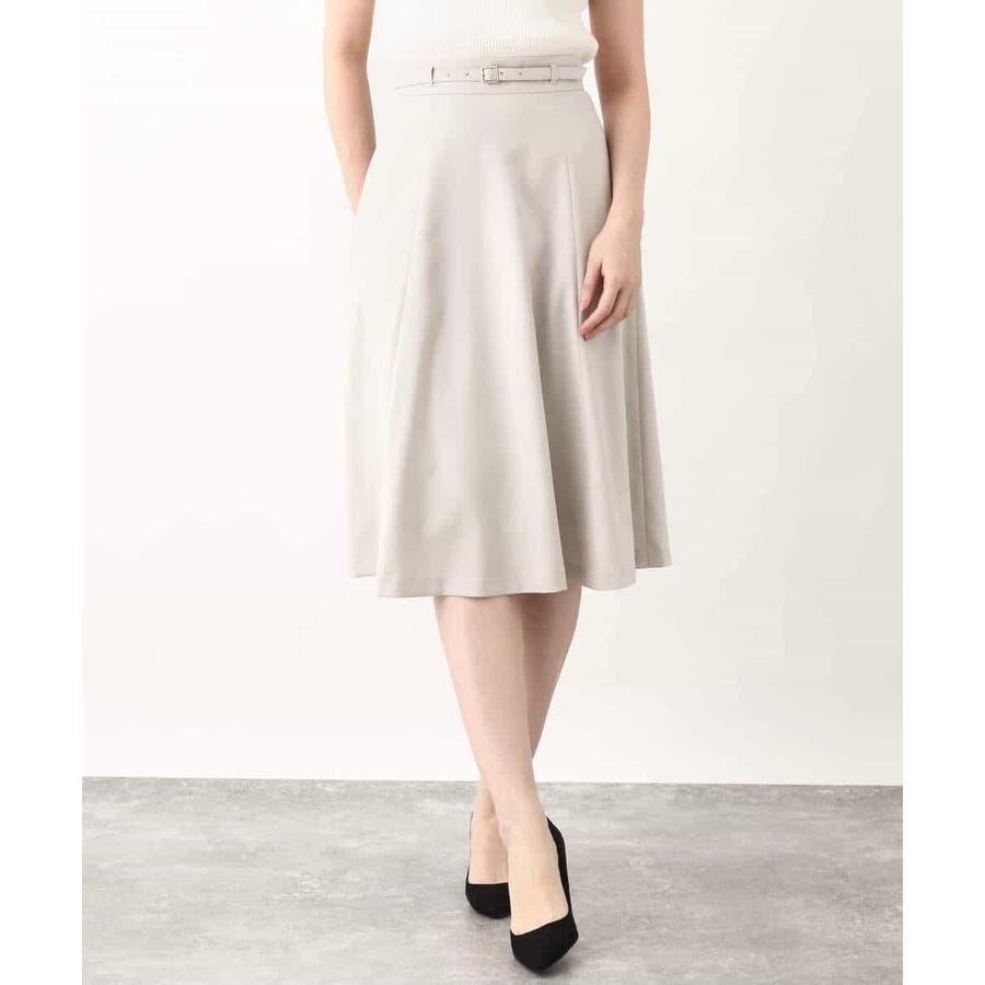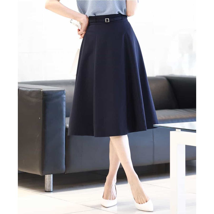 きれいに広がるフレアーが特徴のベーシックスカート。長すぎず短すぎない丈感で、通勤シーンにもぴったりです。共布ベルト付き。