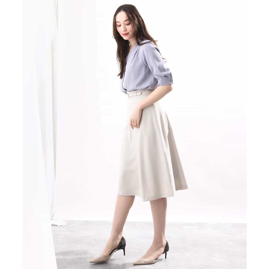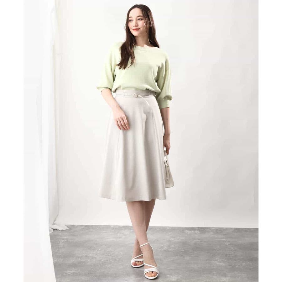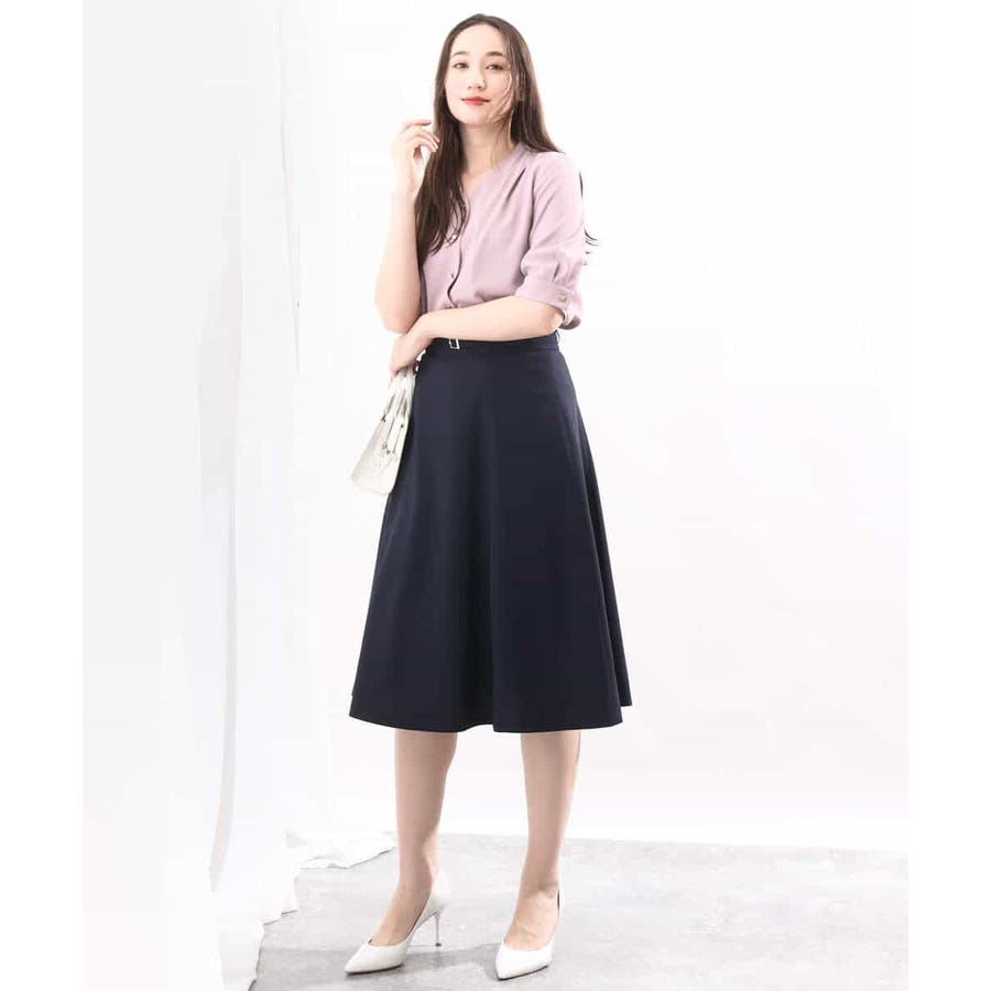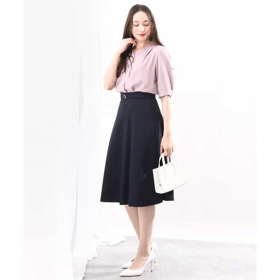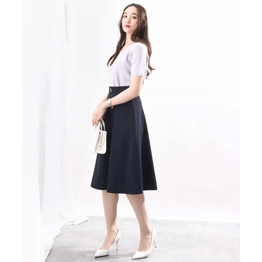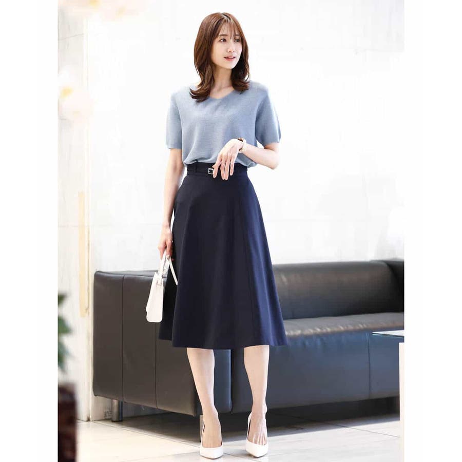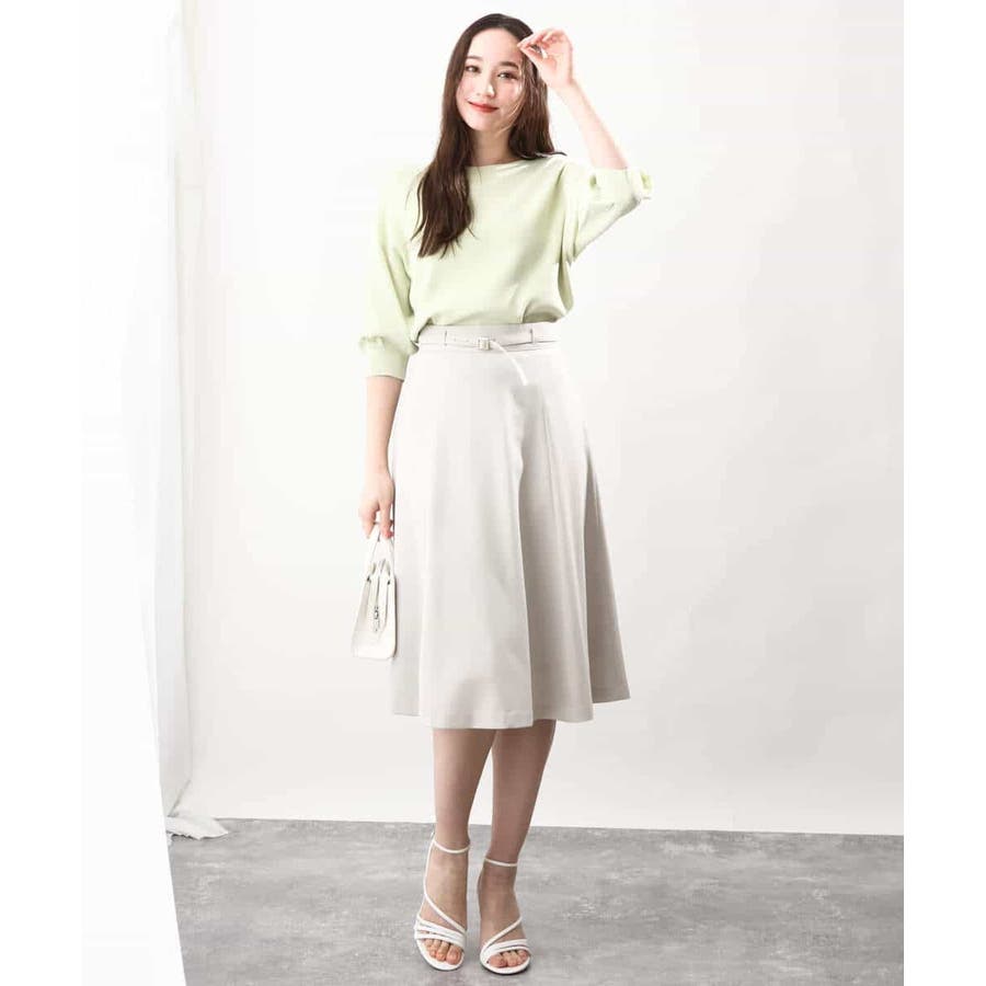きれいに広がるフレアーが特徴のベーシックスカート。長すぎず短すぎない丈感で、通勤シーンにもぴったりです。共布ベルト付き。