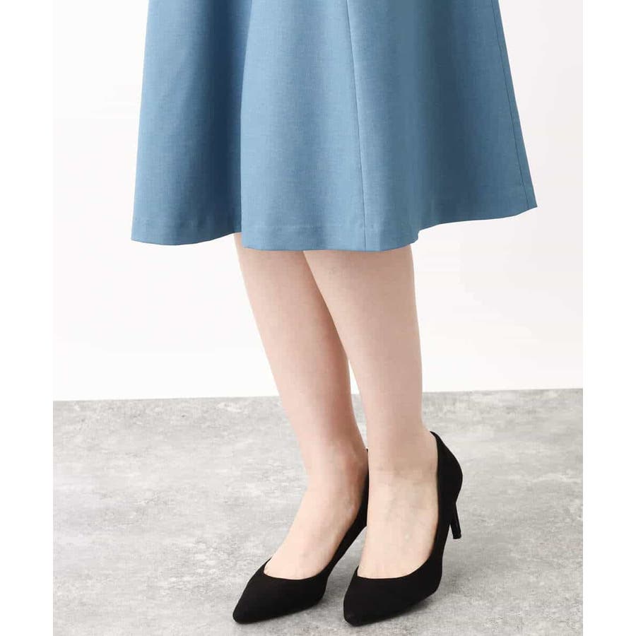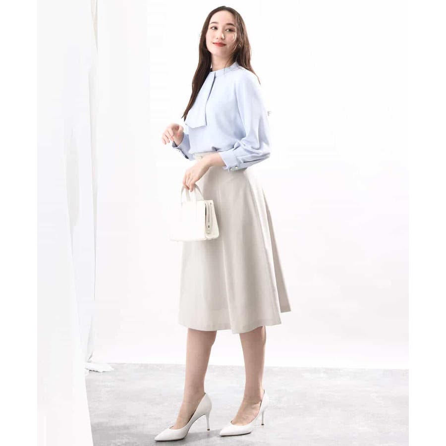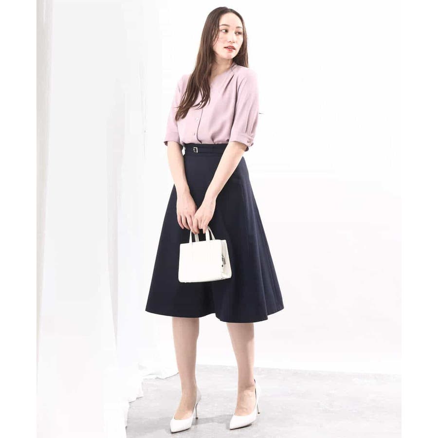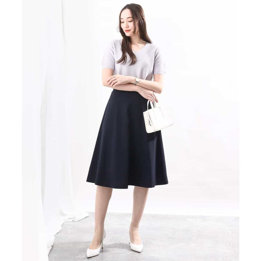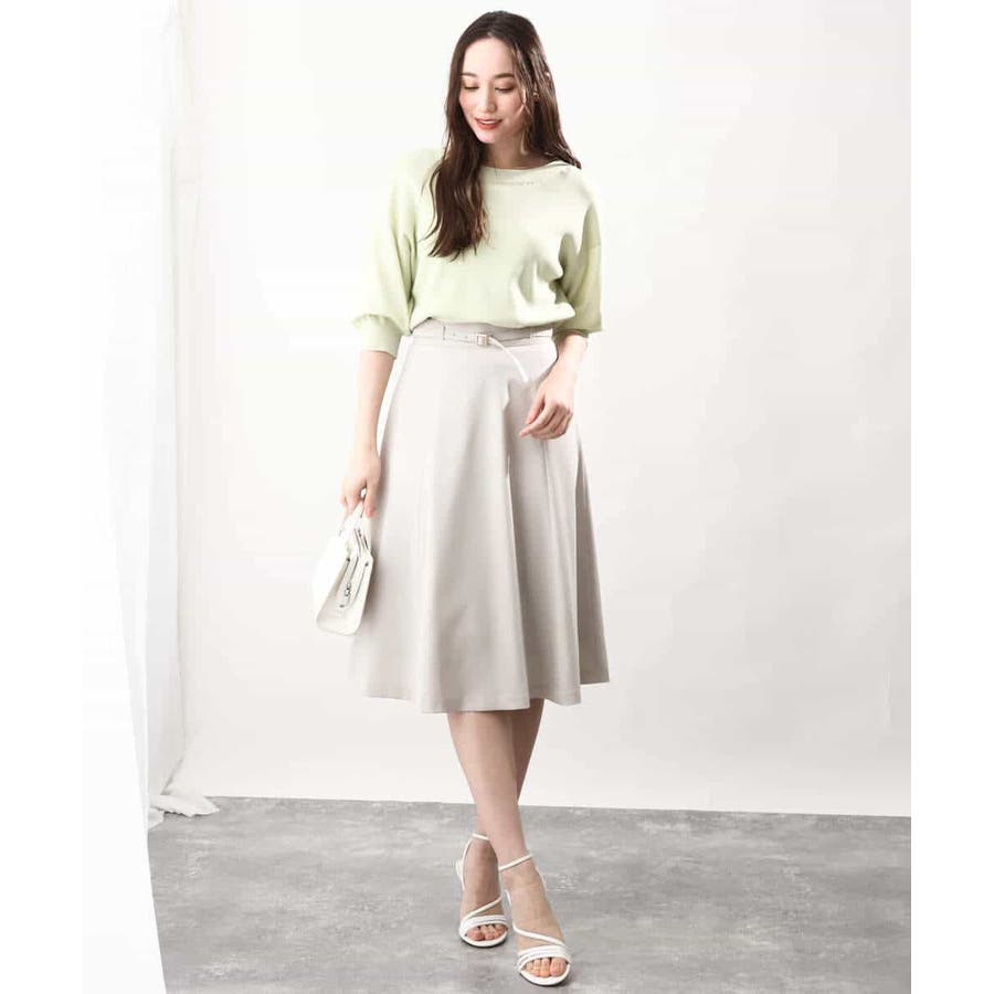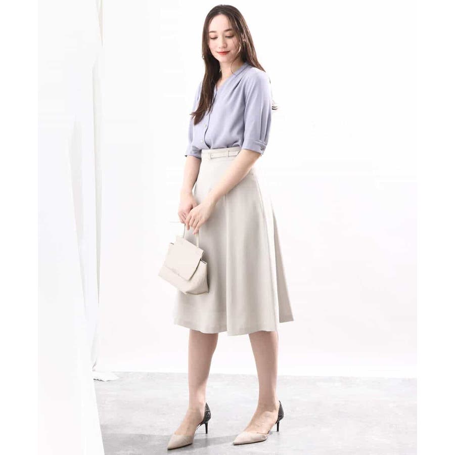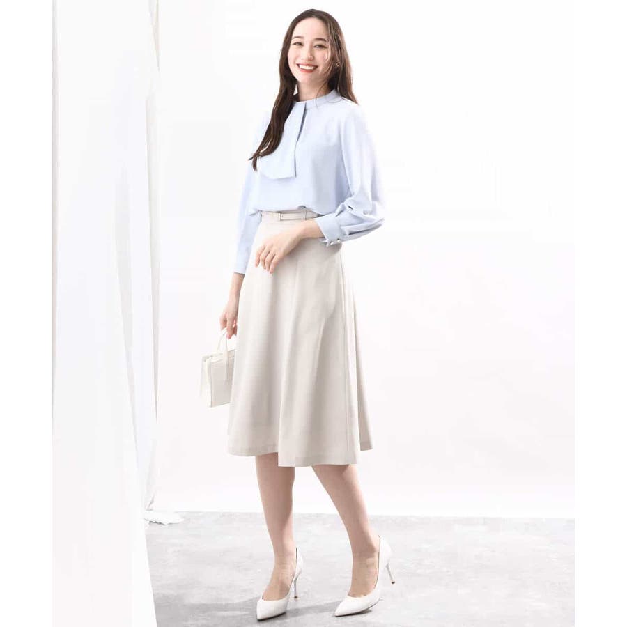 きれいに広がるフレアーが特徴のベーシックスカート。長すぎず短すぎない丈感で、通勤シーンにもぴったりです。共布ベルト付き。