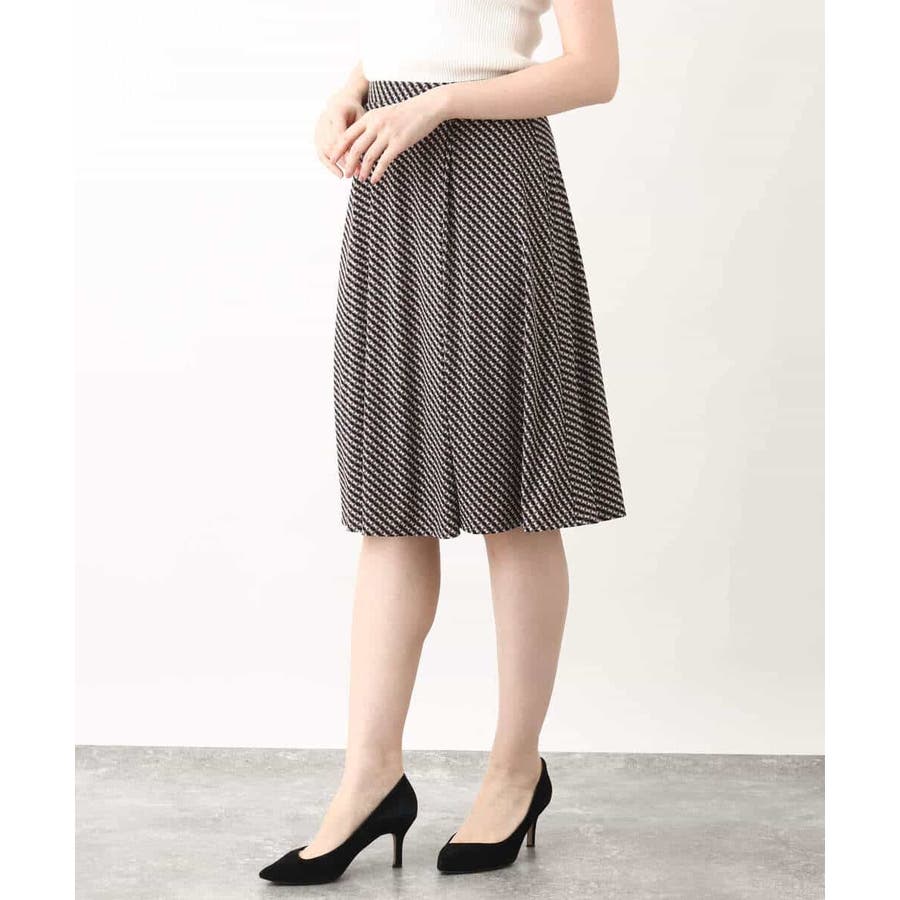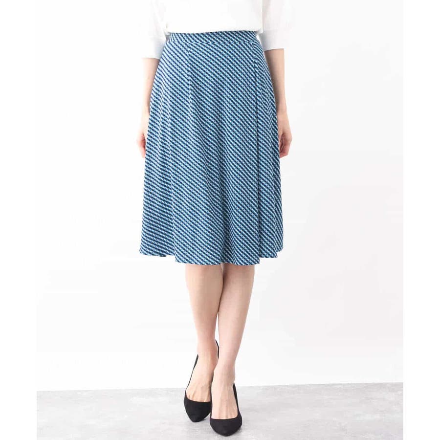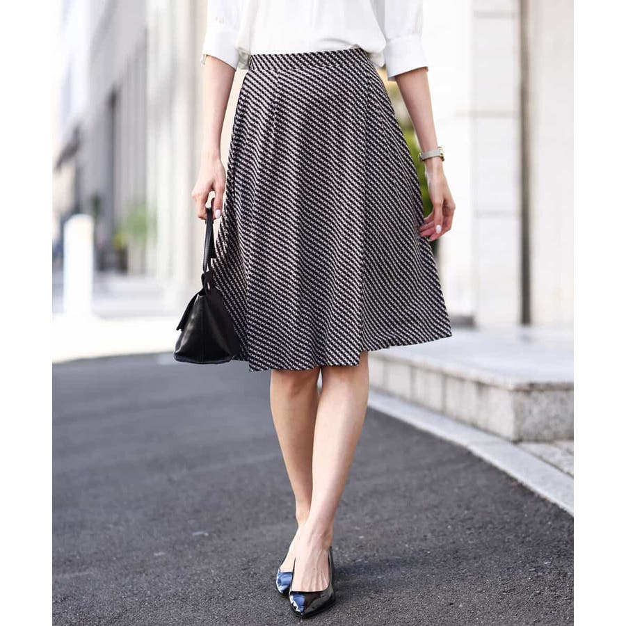 クールな幾何柄が大人な印象なフレアースカート。タックを取ったシンプルなデザインが着こなしやすい一枚です。フレアーでいながら落ち感のあるシルエットは上品な着こなしにぴったり。