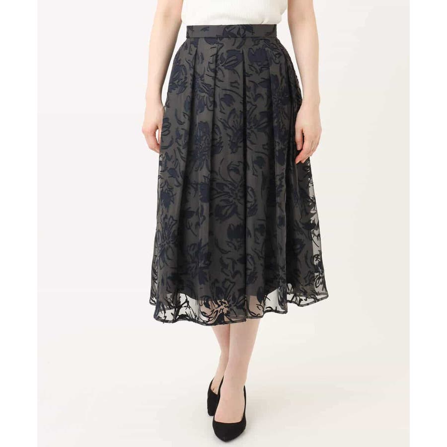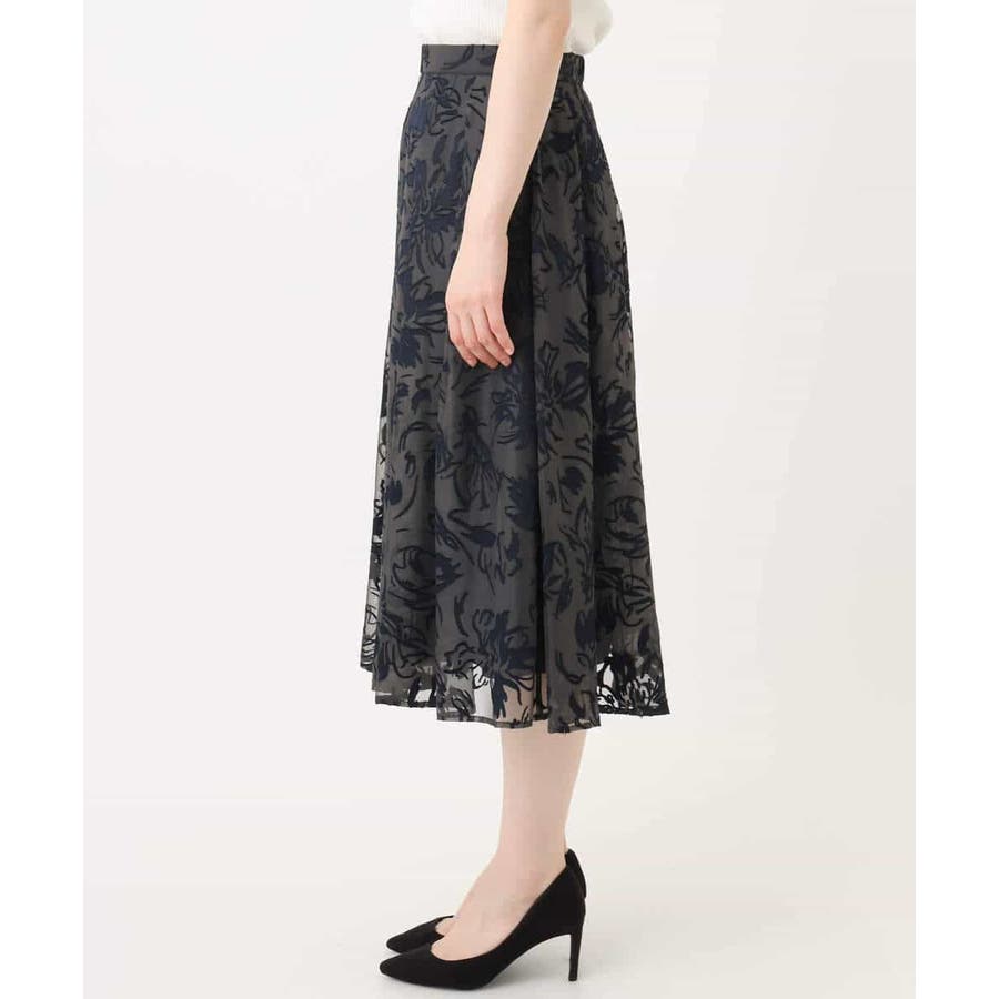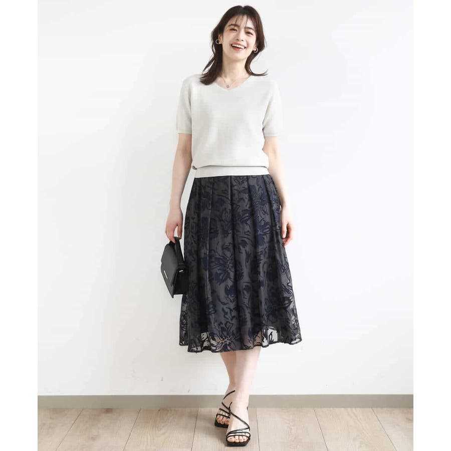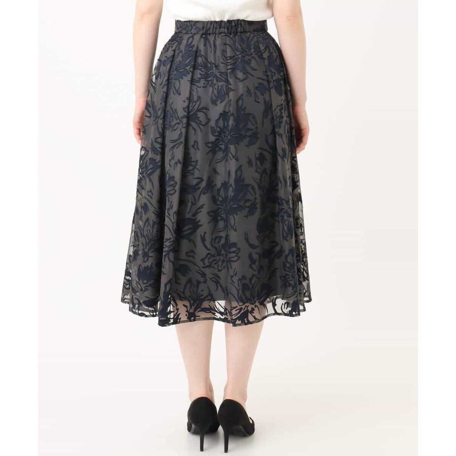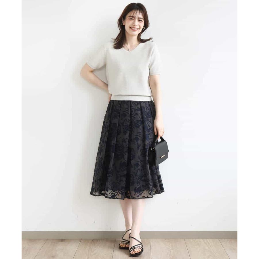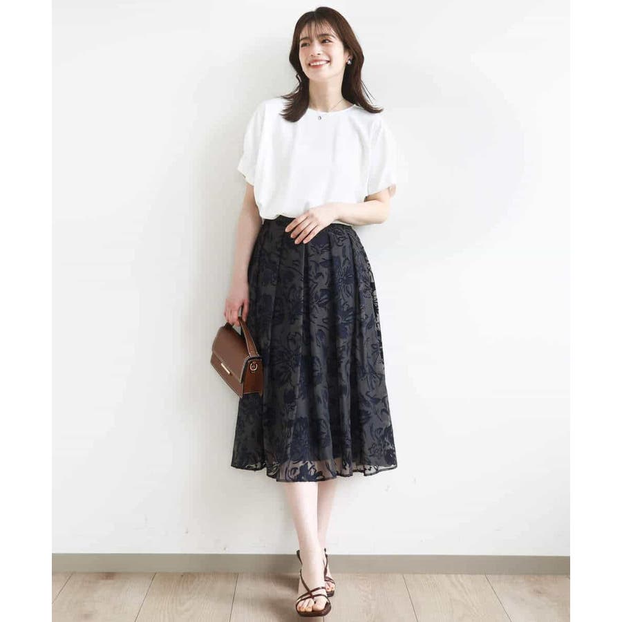 上品な透け感があるスカートは、お出かけやオフィスシーンにも最適。ブラウスやニットに合わせて大人可愛く着こなして。