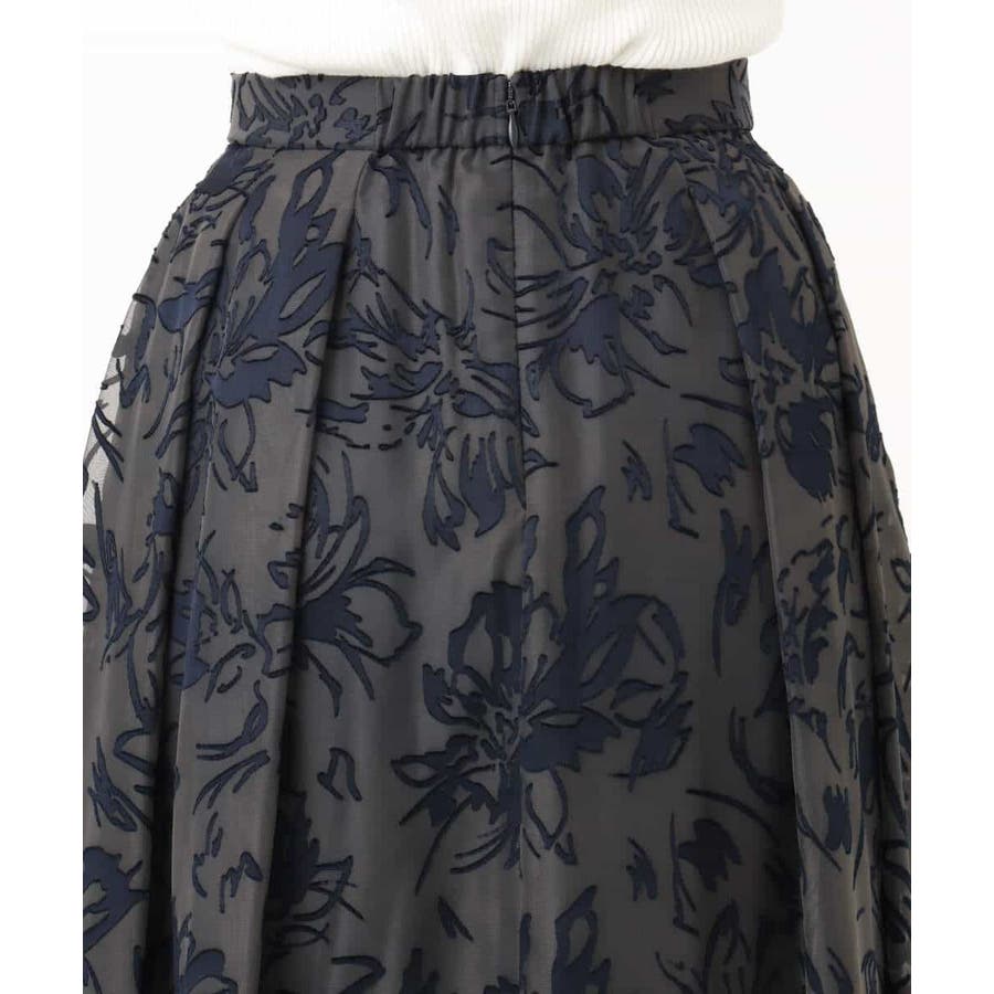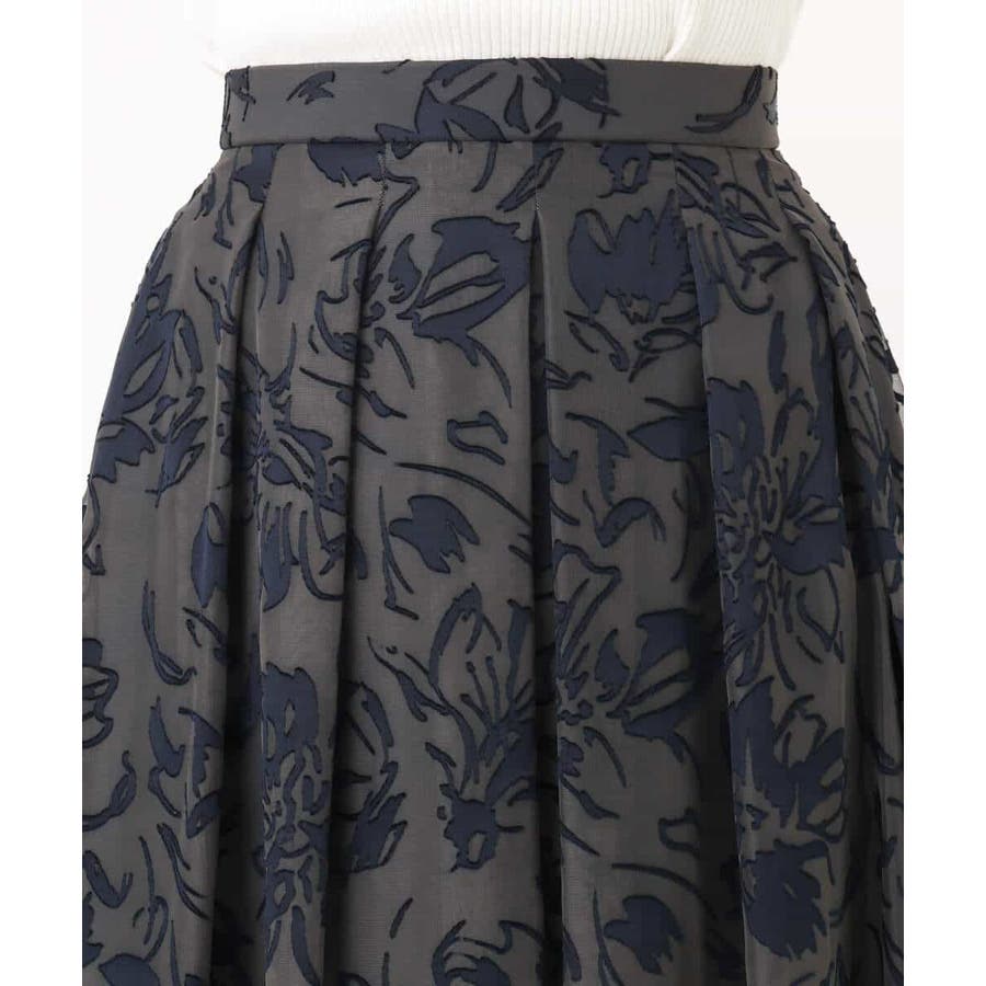落ち着いた色合いの大きめな花柄が女性らしい華やかさをプラスするフレアースカート。ウエストはタックを取っているので気になるお腹周りをカモフラージュしてくれます。