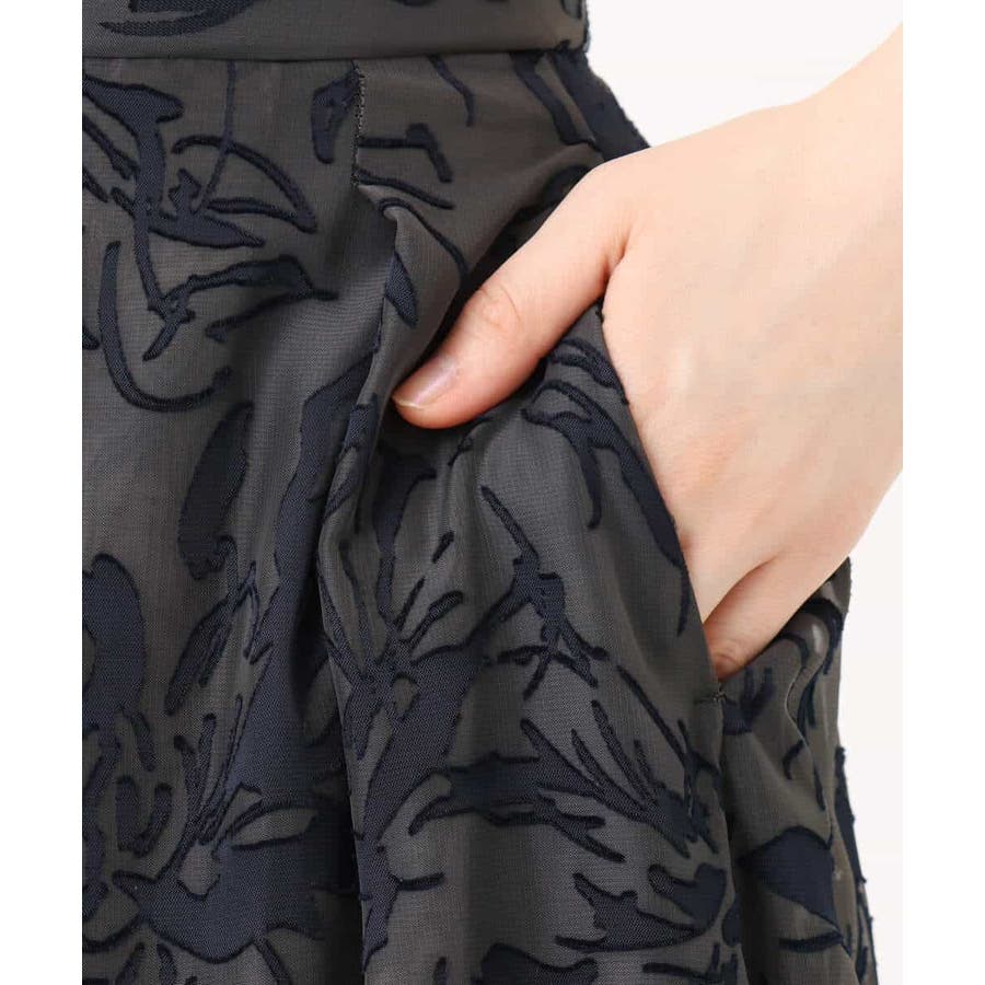 シアーな素材にオパール加工で大きめな花柄を施した素材。凹凸感があり立体的な素材感で女性らしい印象です。