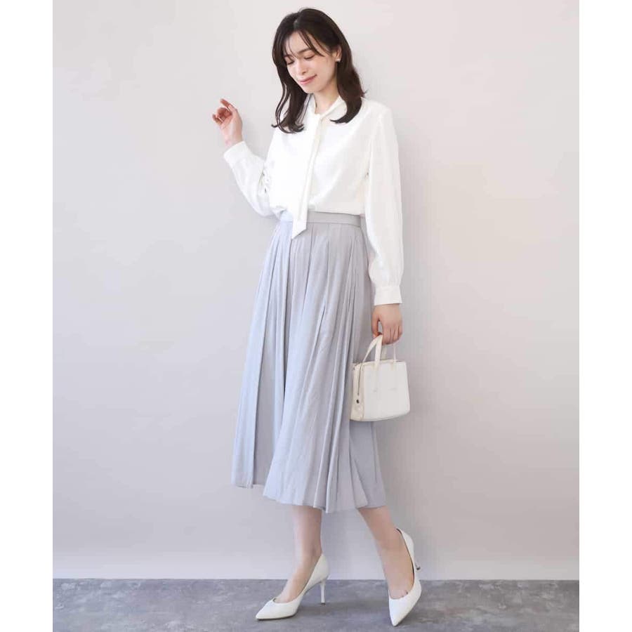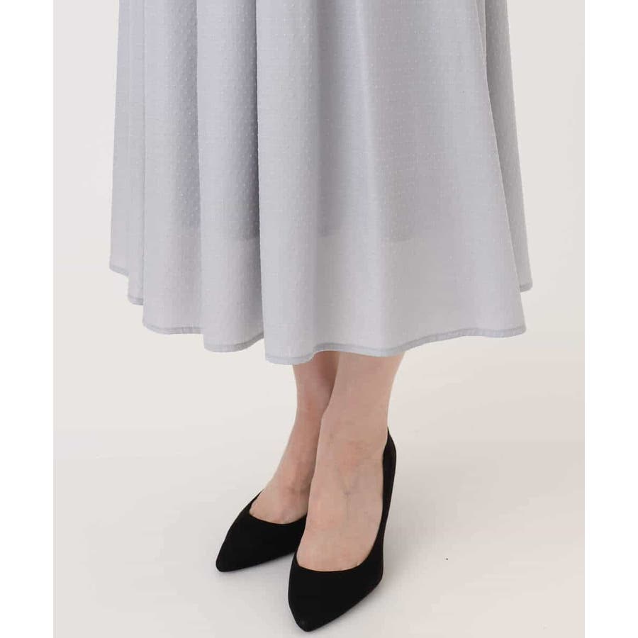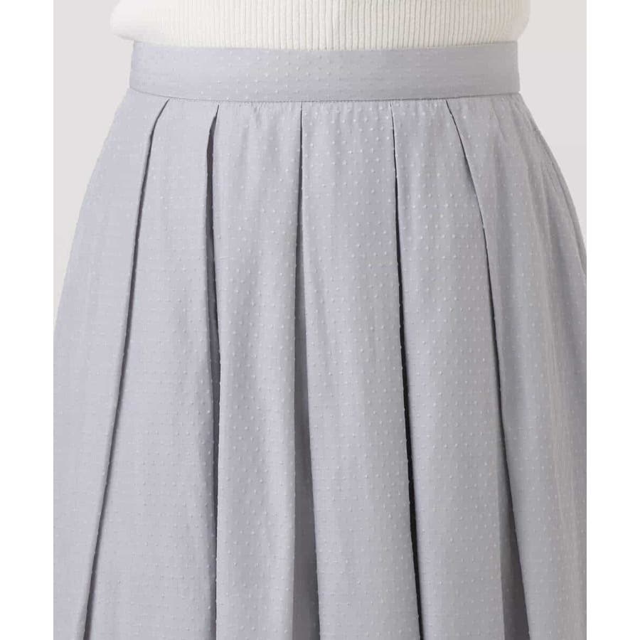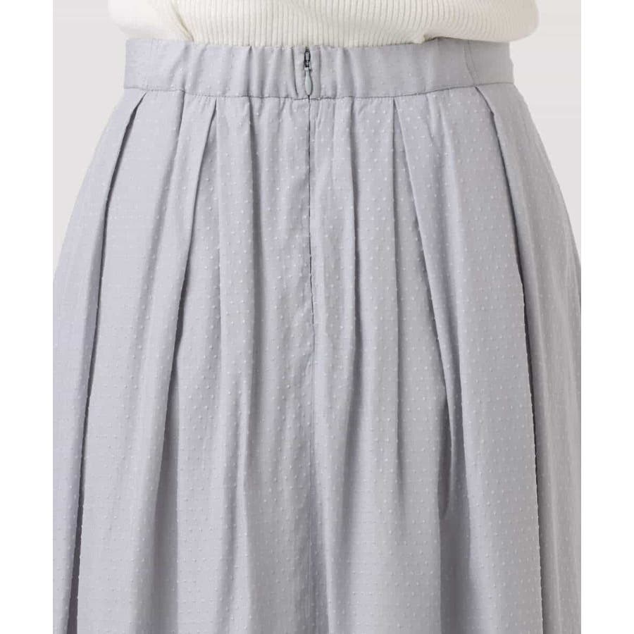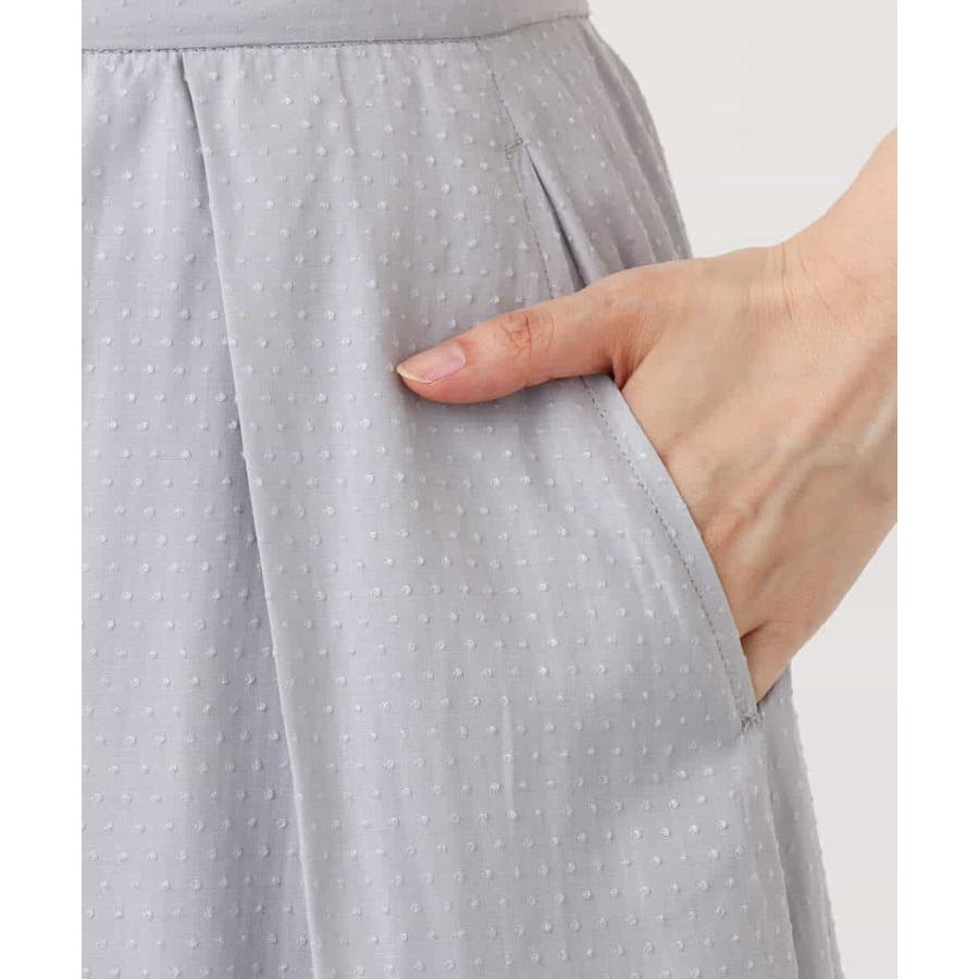 さりげないドット柄はコーディネートの邪魔をせず、さりげないアクセントに。オフィスシーンにも馴染みやすいきれいめな印象で履きこなせます。同素材のブラウスとセットアップでワンピース見えの着こなしもおすすめ。