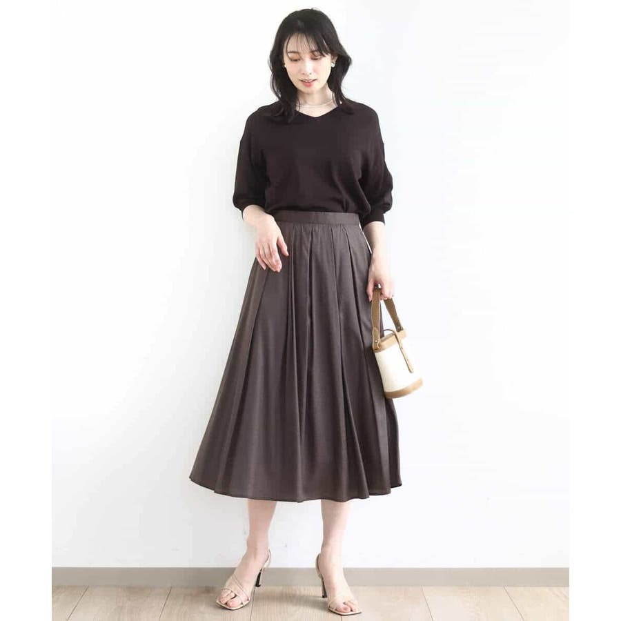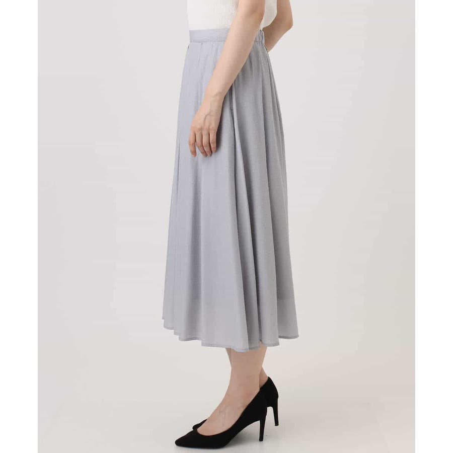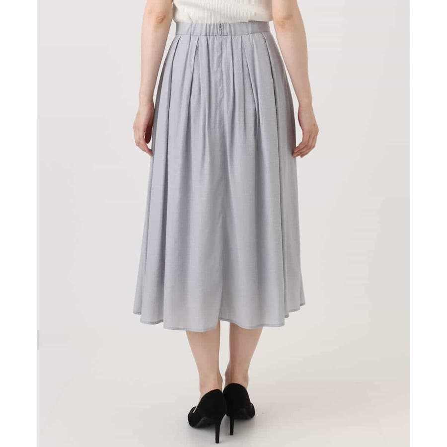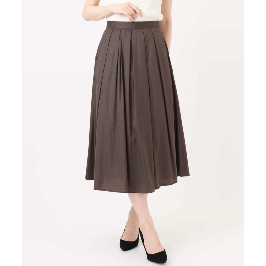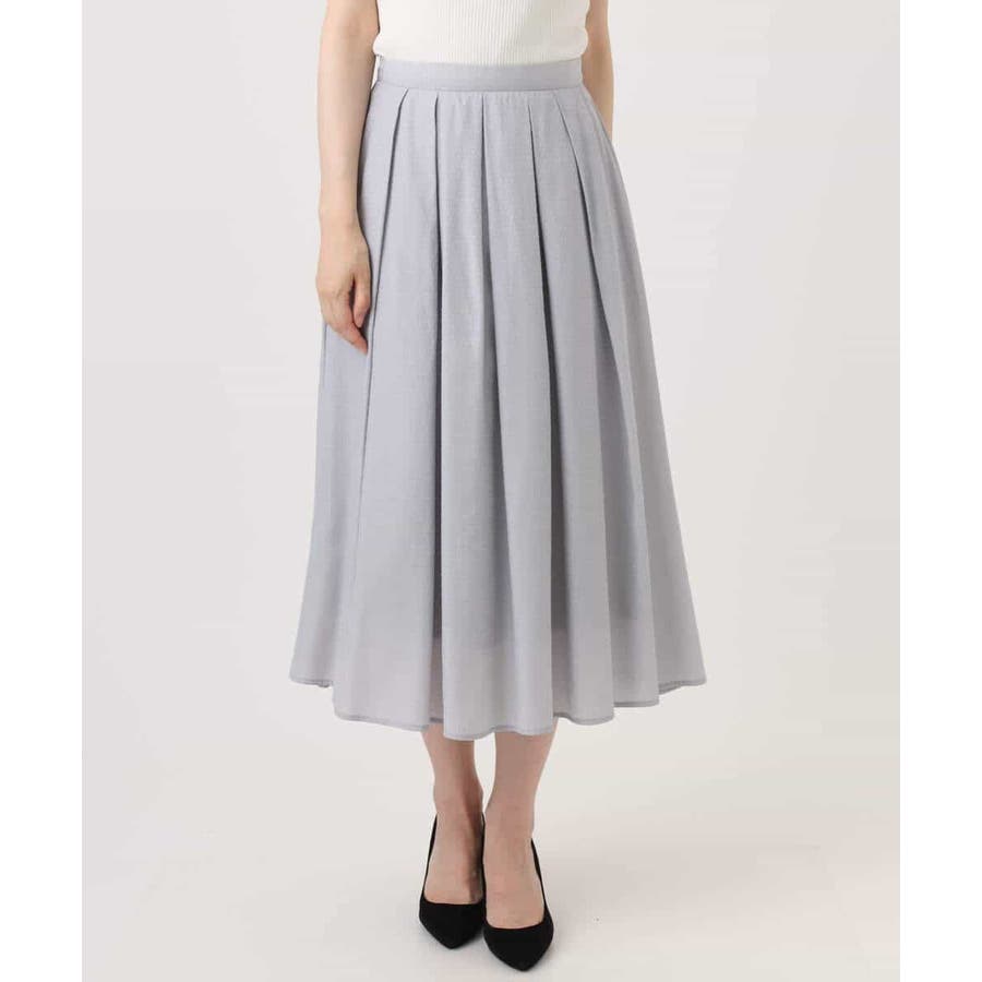タックデザインを施したフレアーシルエットのスカート。裾に向かってきれいに広がる軽やかな印象の一枚です。ウエストの後ろはゴム入りでフィット感&履き心地も◎