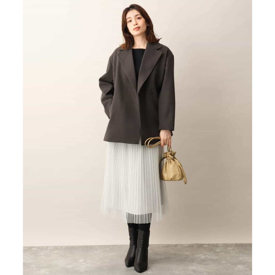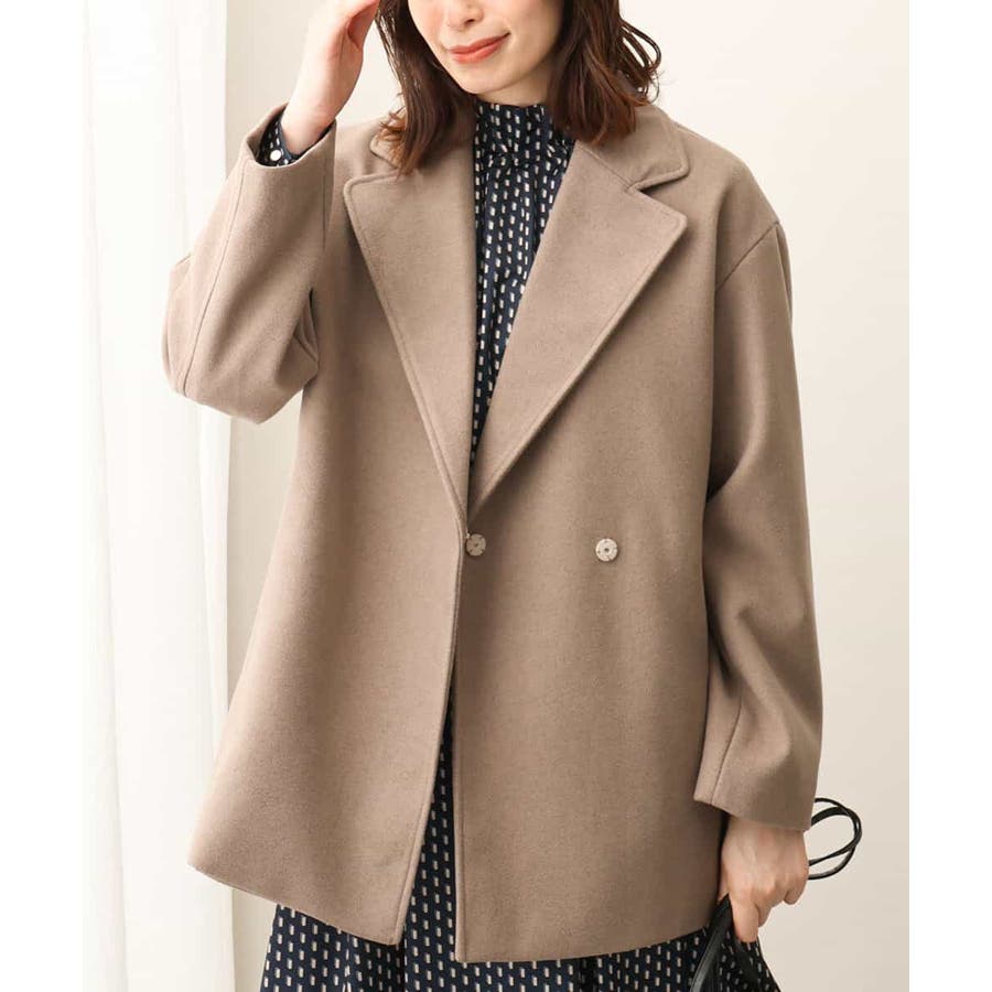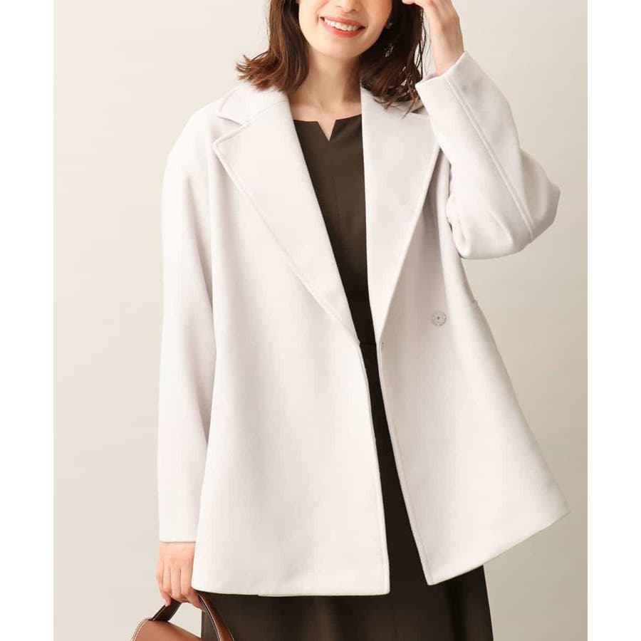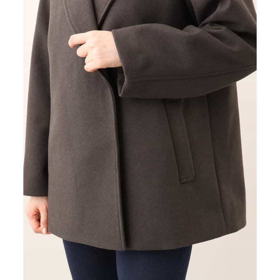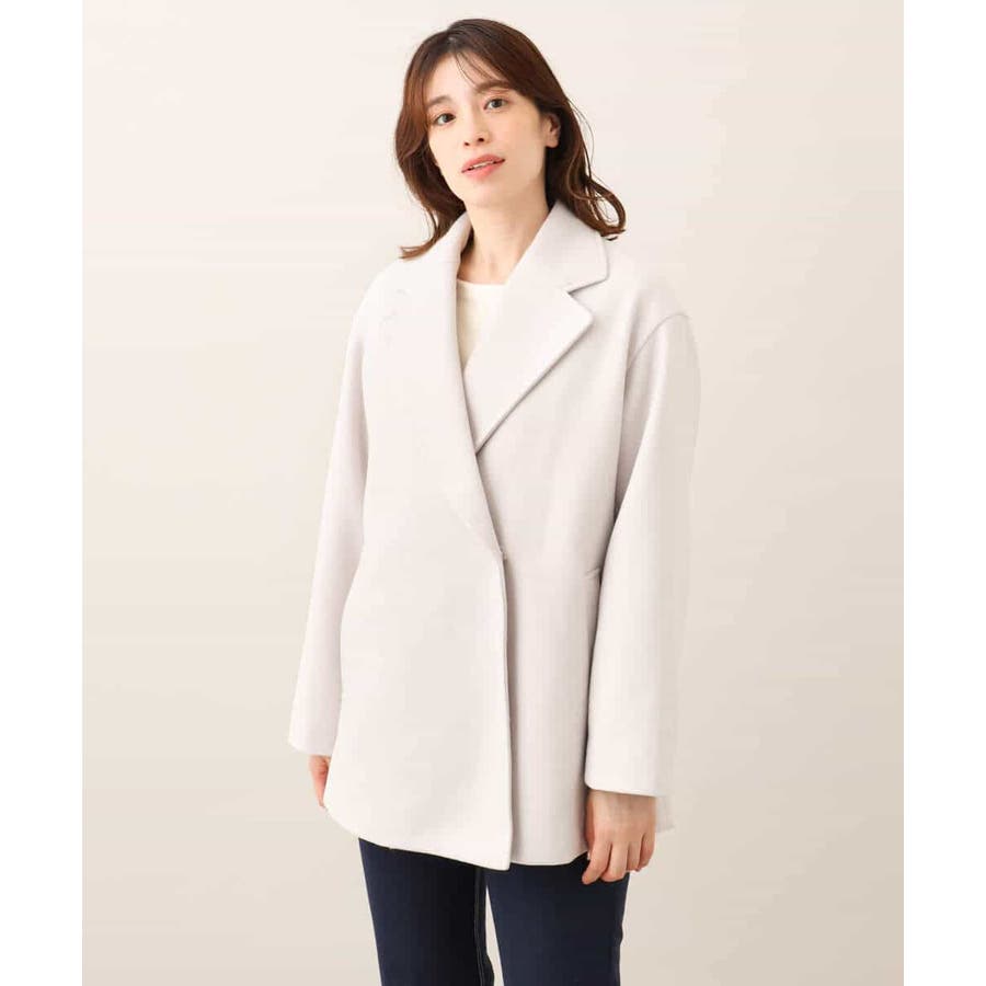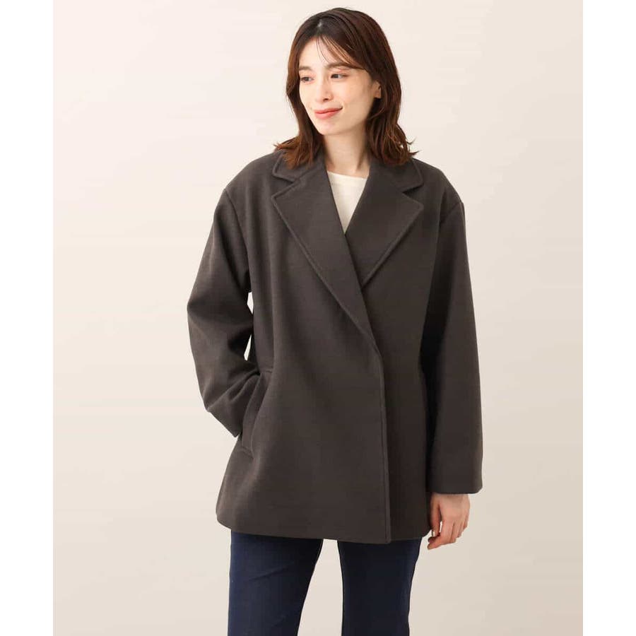 旬なヒップが隠れるミドル丈がコーディネートしやすいテーラードタイプのショートコート。ピーコートのディティールをシンプルにしたようなデザインは上品で大人っぽく着用できます。