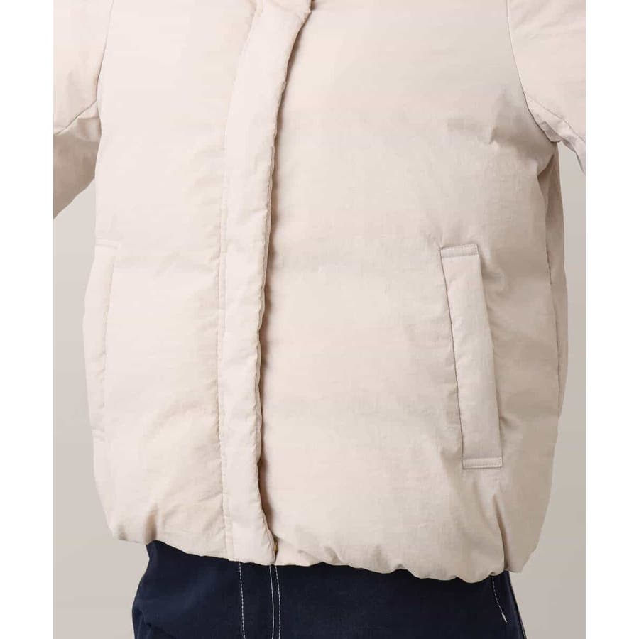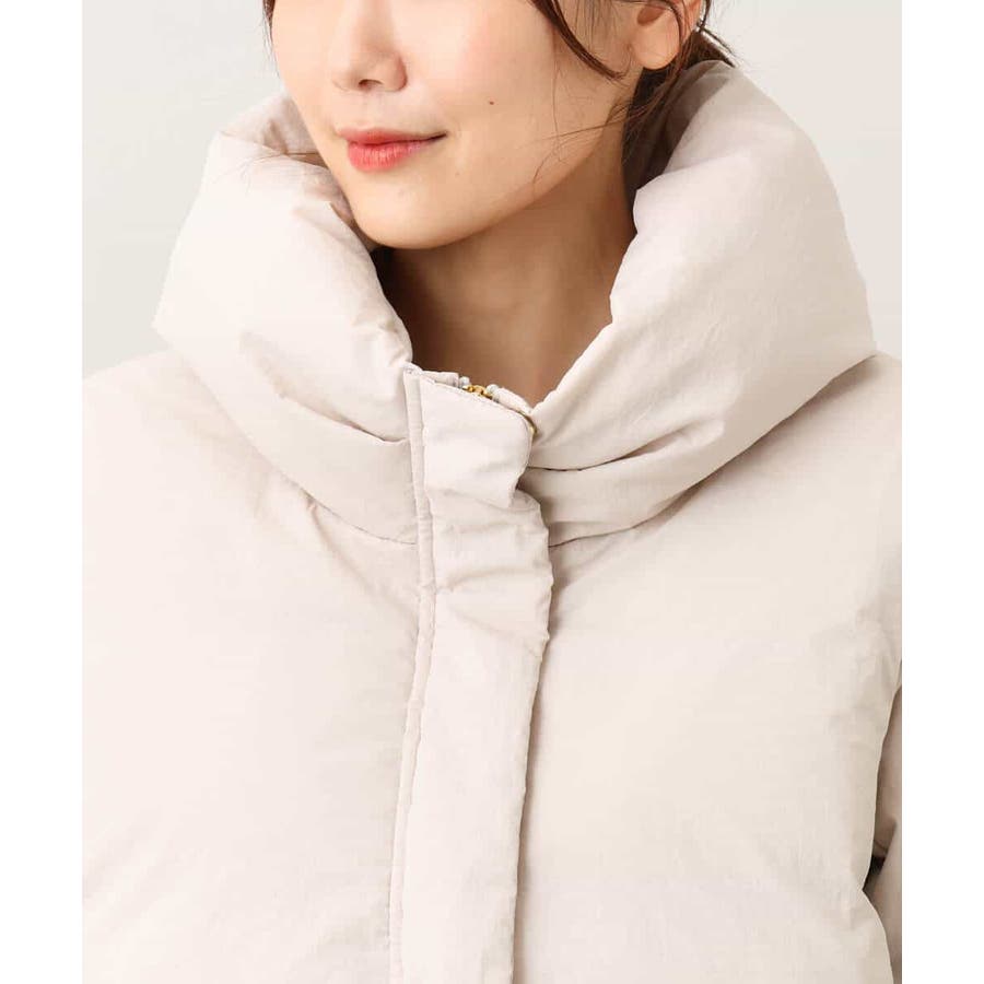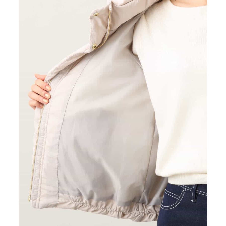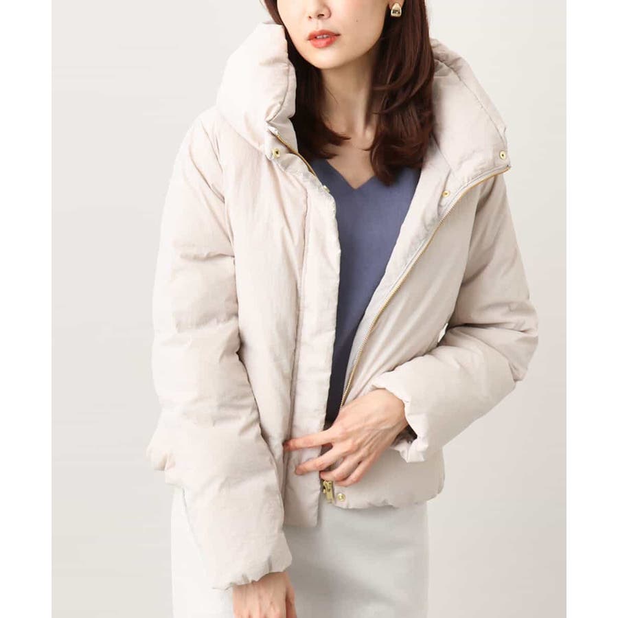 丸みのあるシルエットが女性らしいダウン。スカートに合わせやすいショート丈は羽織りやすさも嬉しい。衿部分は高さをしっかり出し、カジュアルになりすぎずきれいめにマッチしやすいデザインに仕上げました。