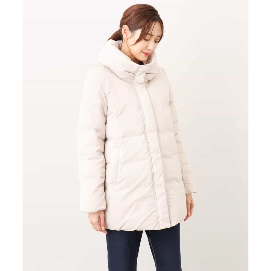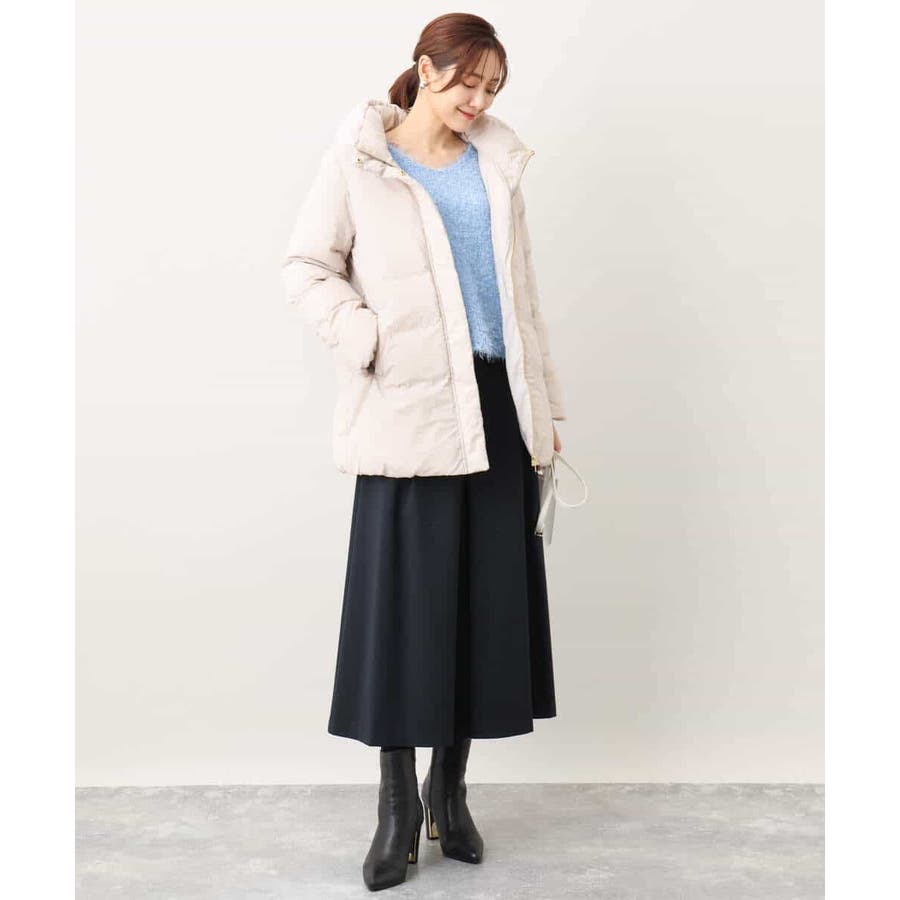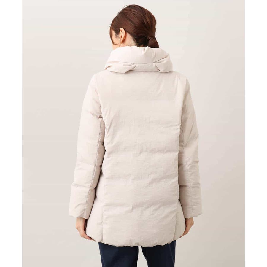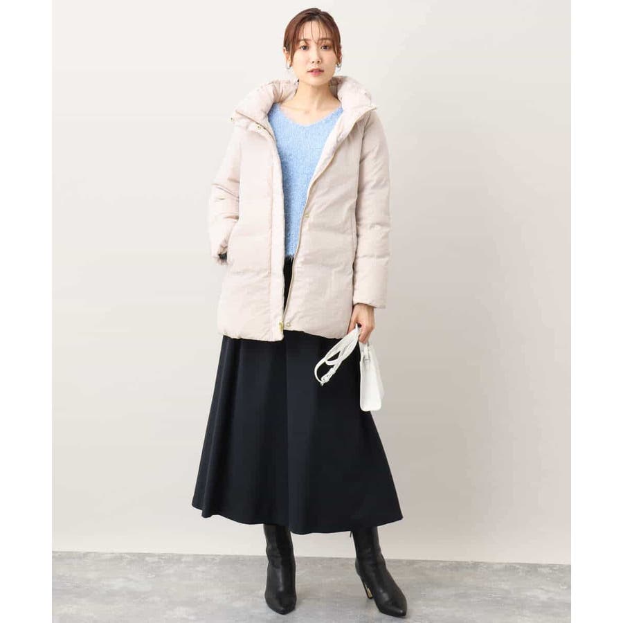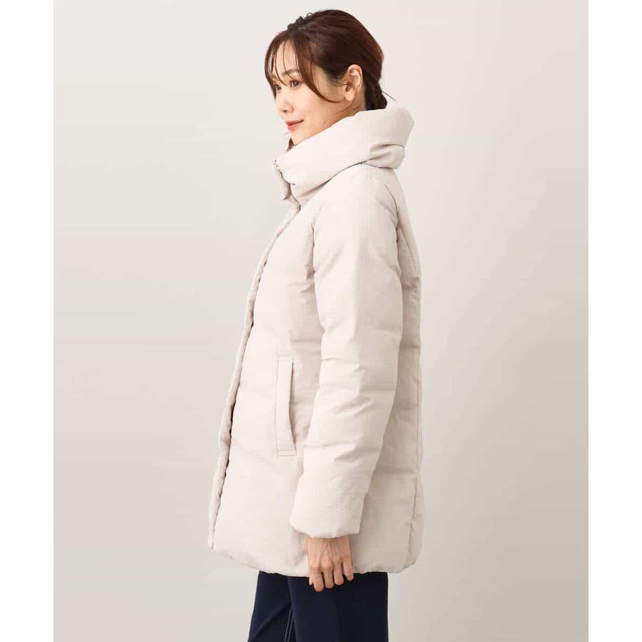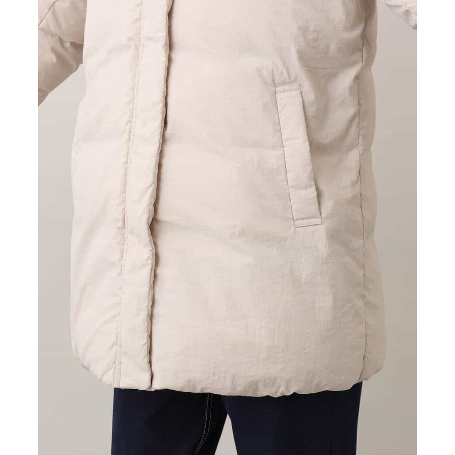 ヒップが隠れるミドル丈のダウンコート。衿部分は高さをしっかり出し、カジュアルになりすぎずきれいめにマッチしやすいデザインに仕上げました。