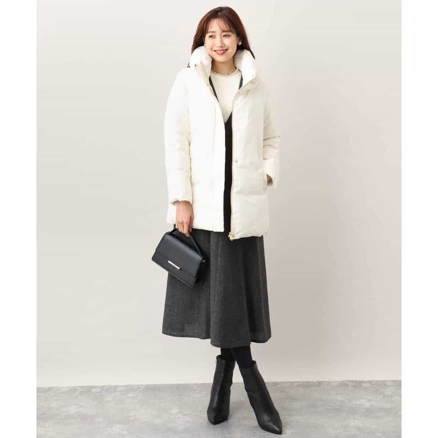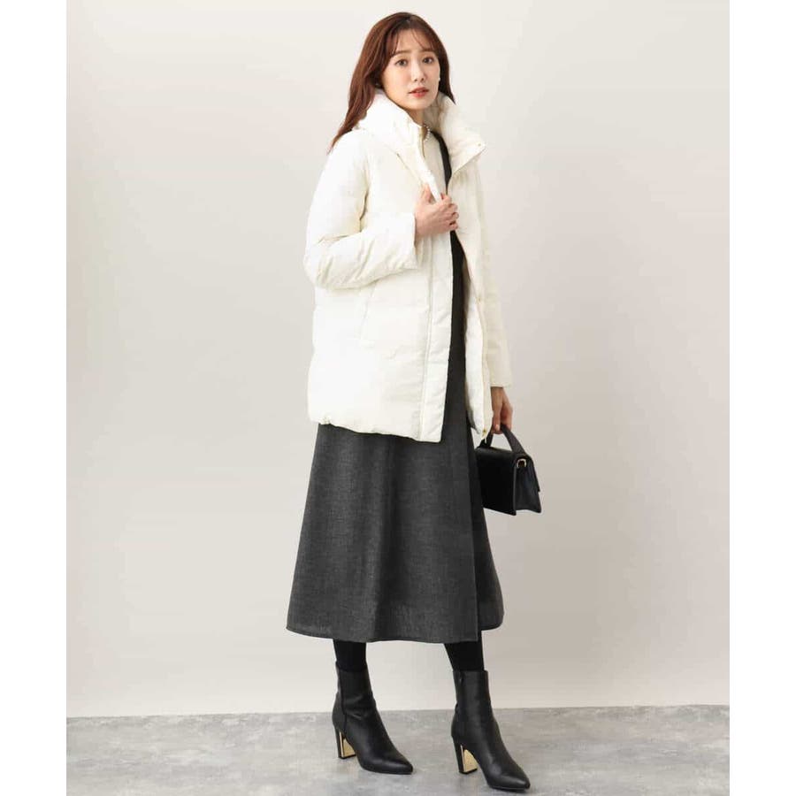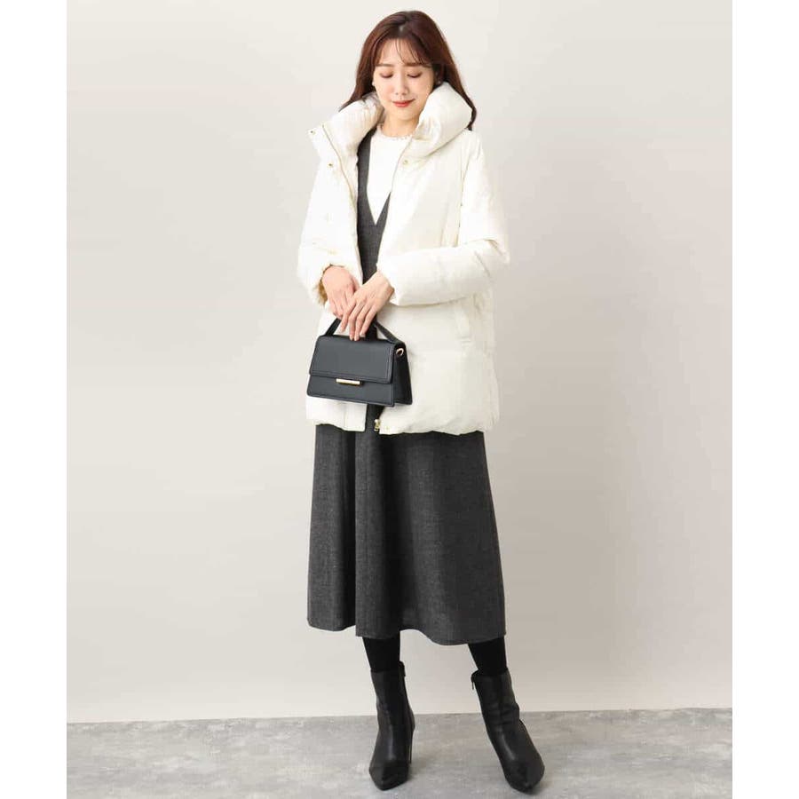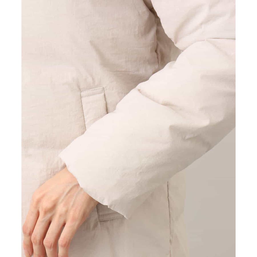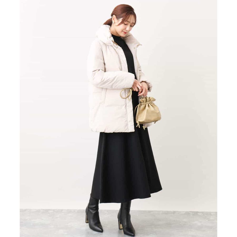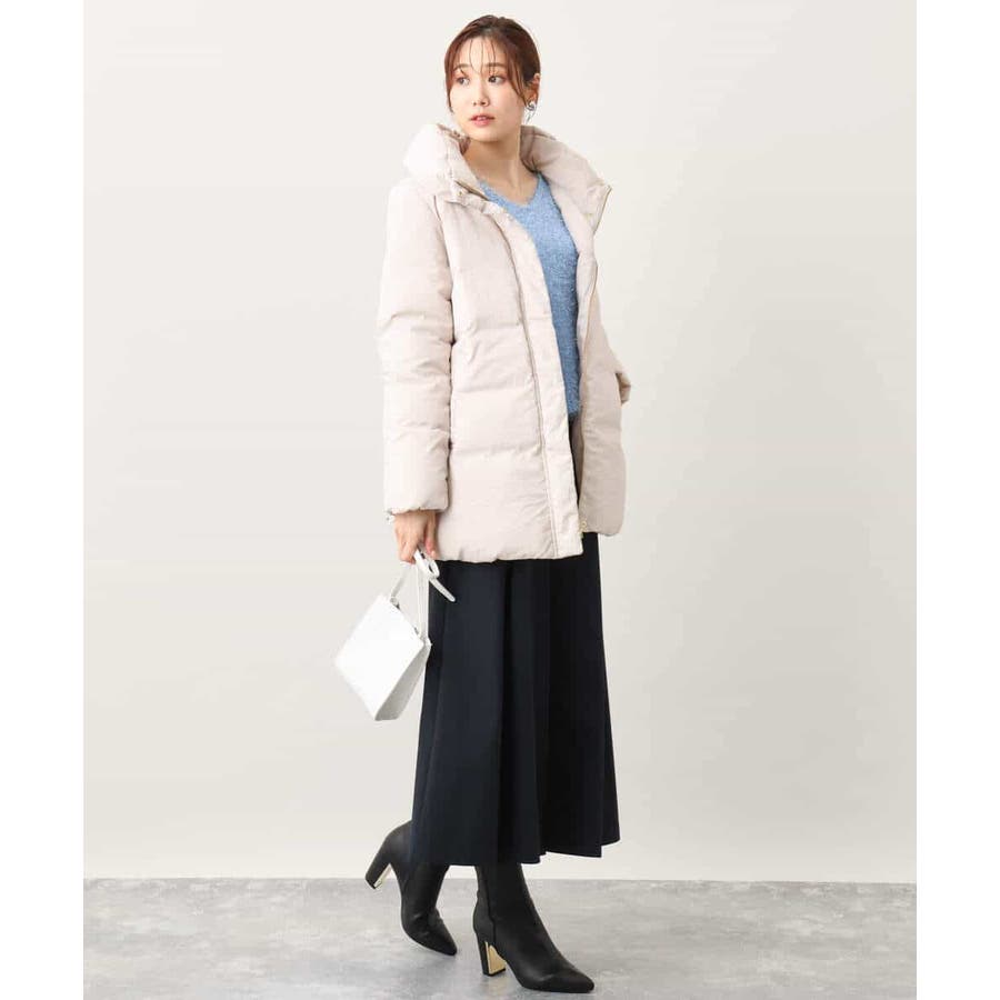 ヒップが隠れるミドル丈のダウンコート。衿部分は高さをしっかり出し、カジュアルになりすぎずきれいめにマッチしやすいデザインに仕上げました。