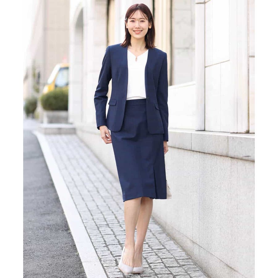 同素材でのテーラードジャケット、スカート、パンツをご用意。スーツセットアップとして着用いただけます。