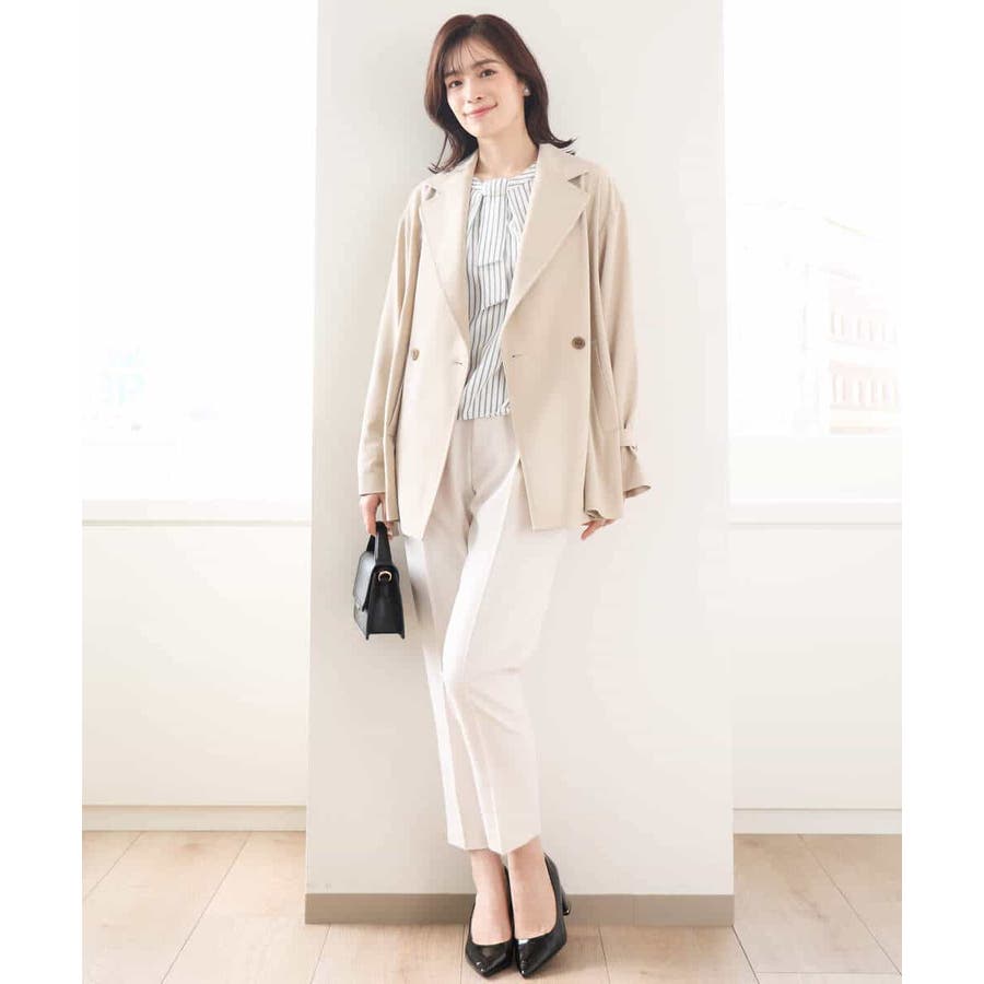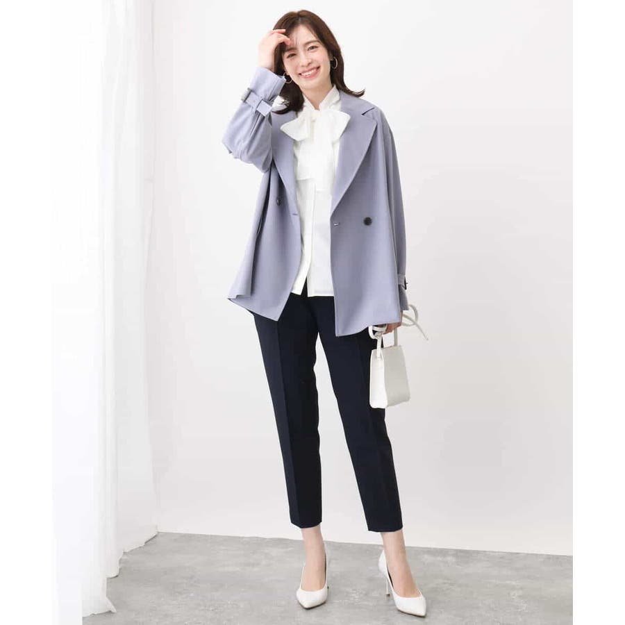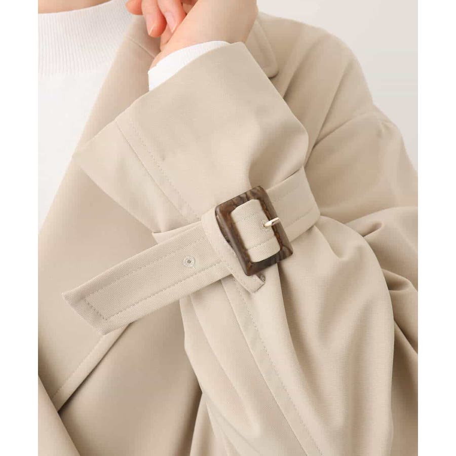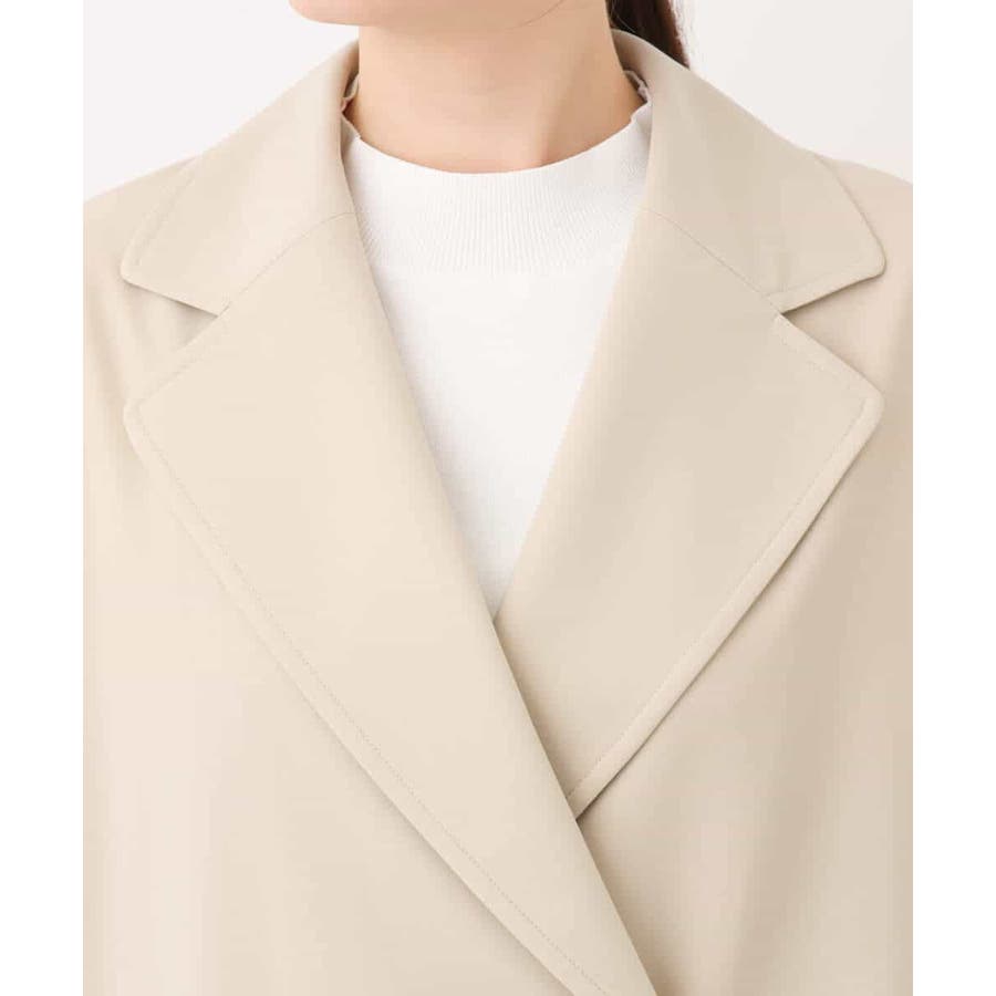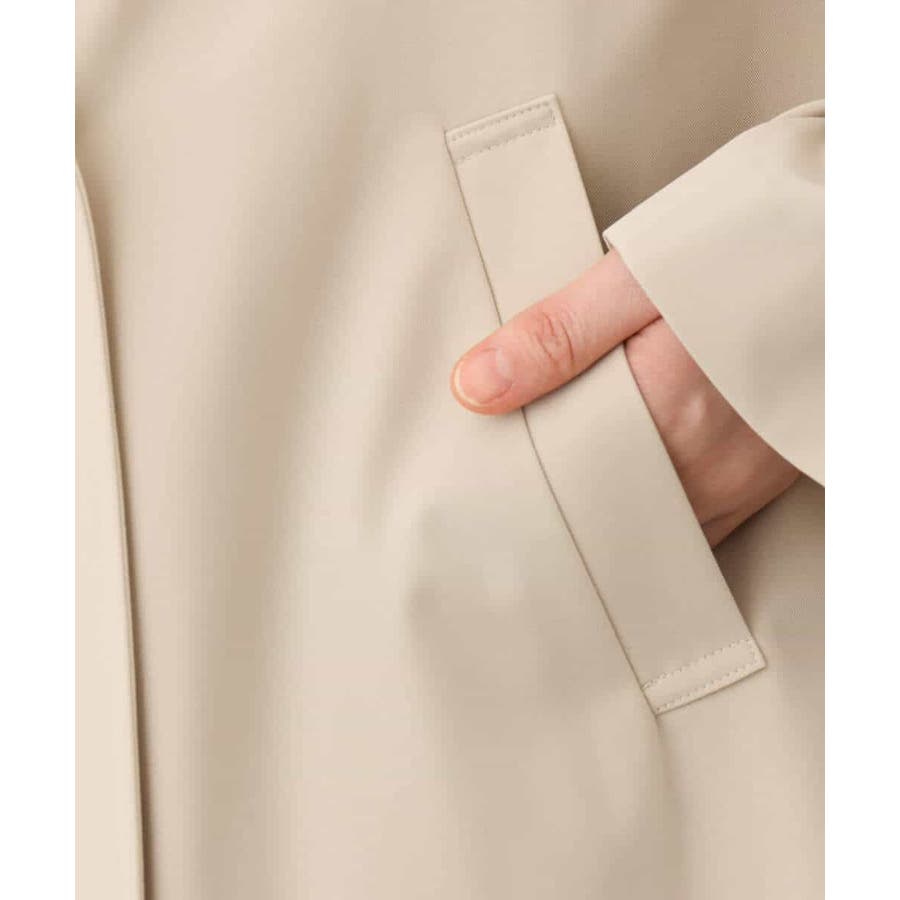 ゆったりとしたデザインに短めの着丈がバランス良く着こなせるショートトレンチコート。やわらかな素材なのでゆったりシルエットもこなれ感のある着こなしに。