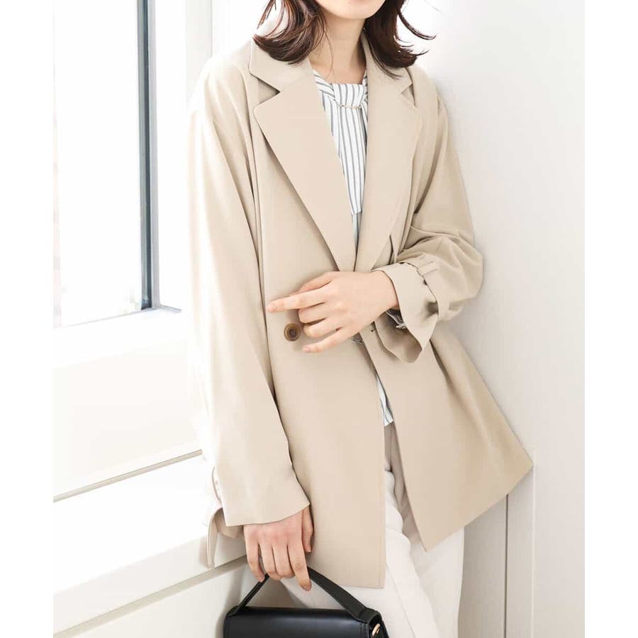 やわらかできれいめなツイル素材は裏なしで軽い着心地が嬉しい。春秋の季節の変わり目にちょうどいい素材感です。