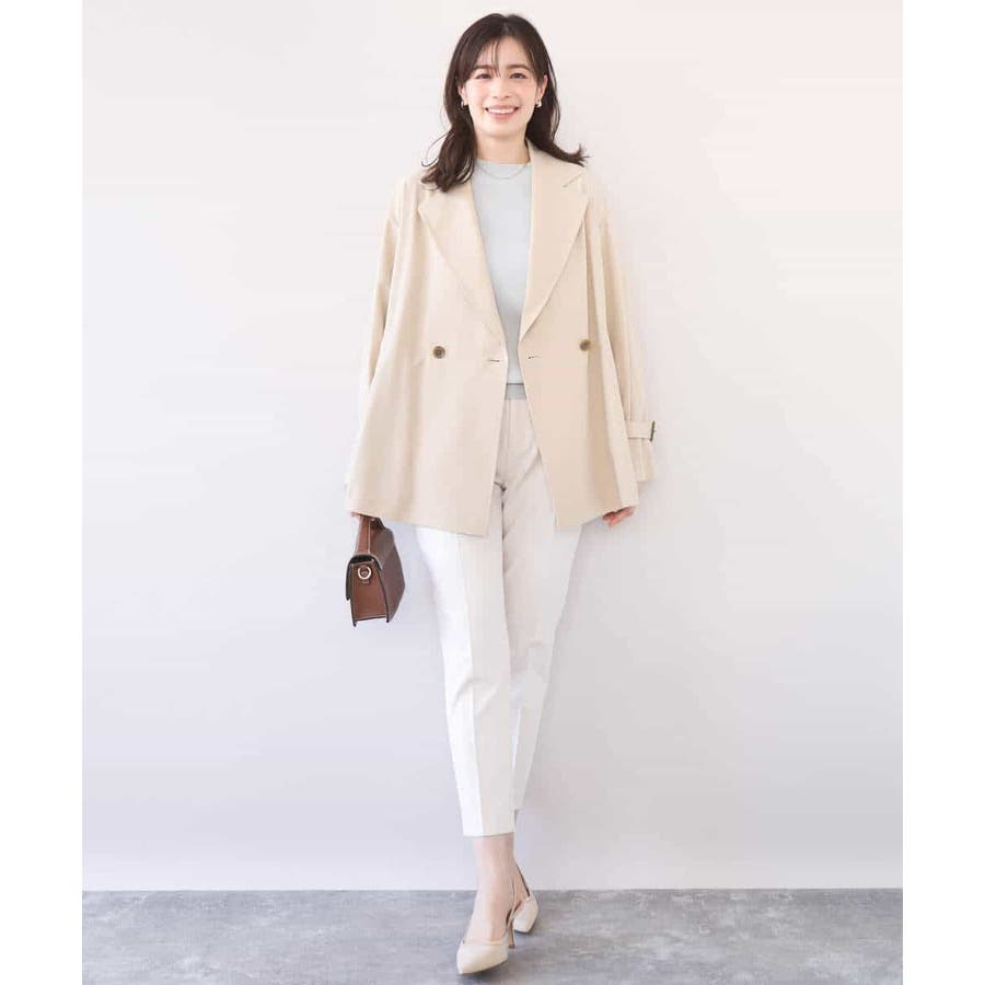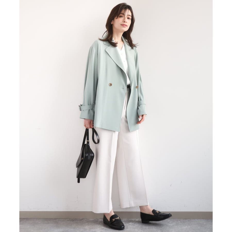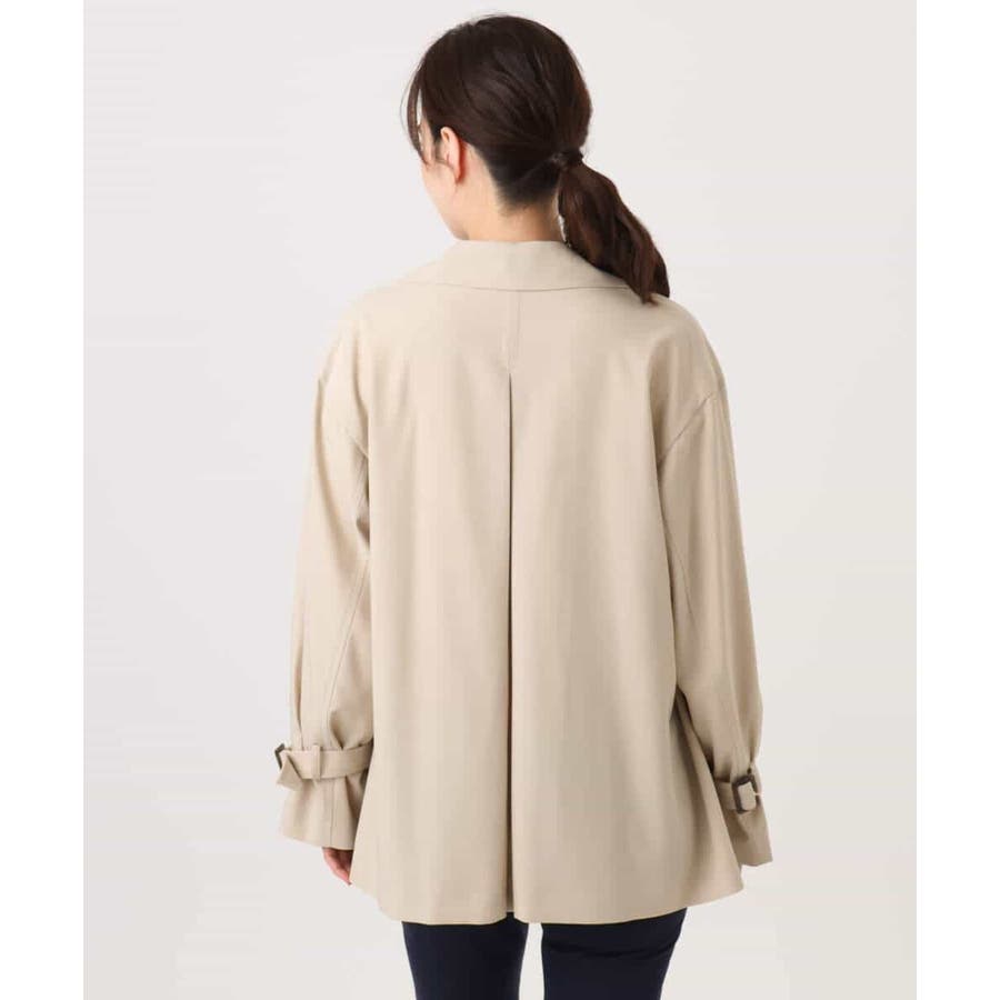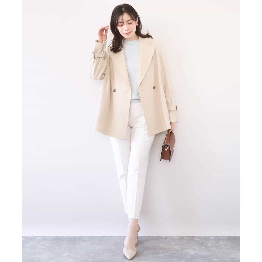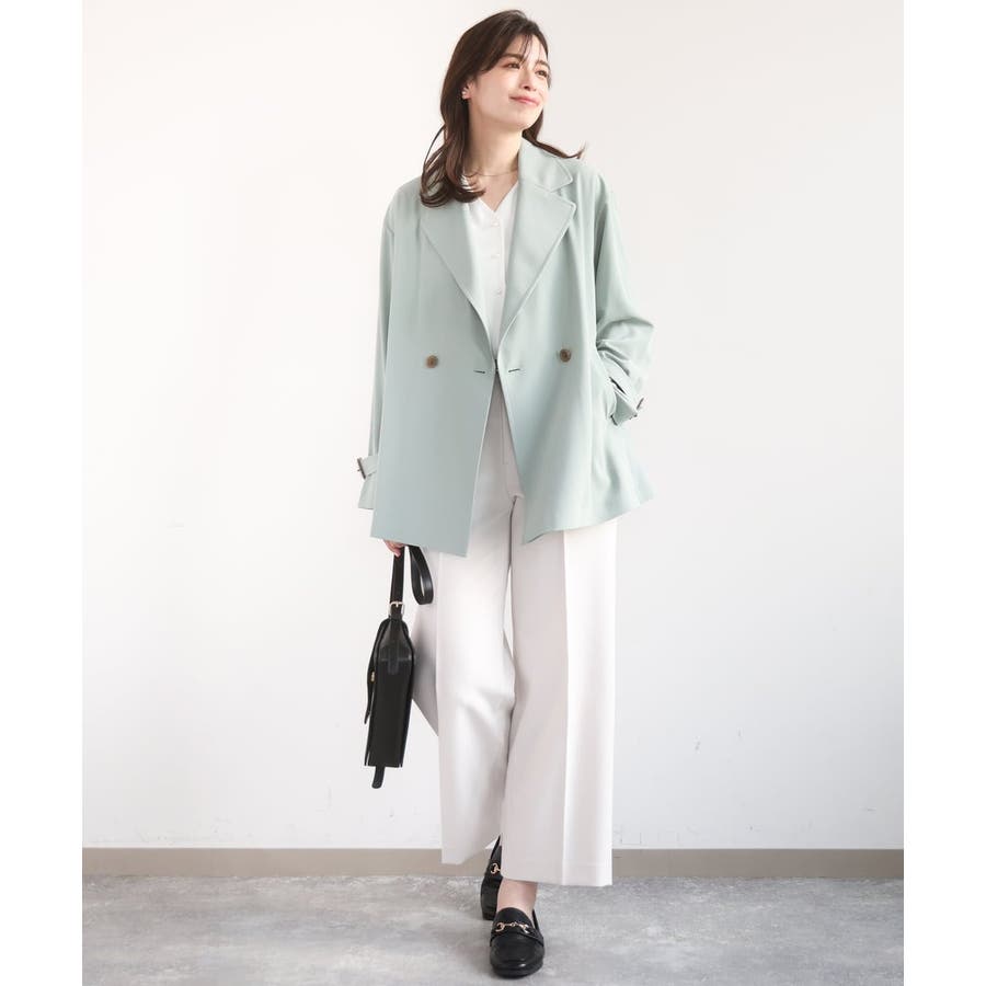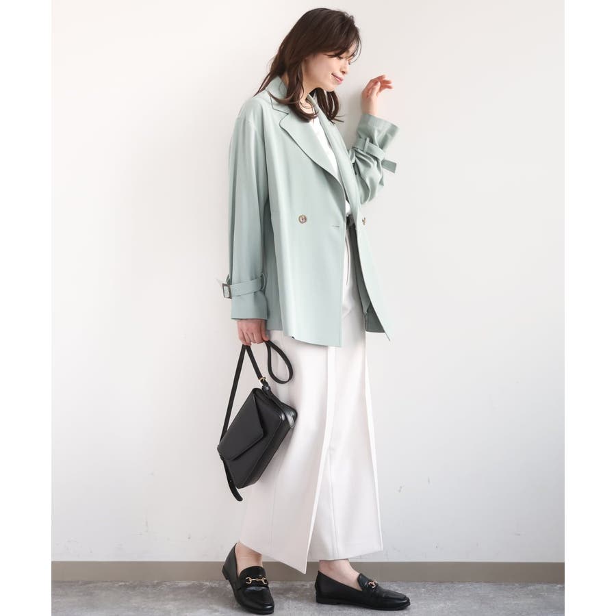 ゆったりとしたデザインに短めの着丈がバランス良く着こなせるショートトレンチコート。やわらかな素材なのでゆったりシルエットもこなれ感のある着こなしに。