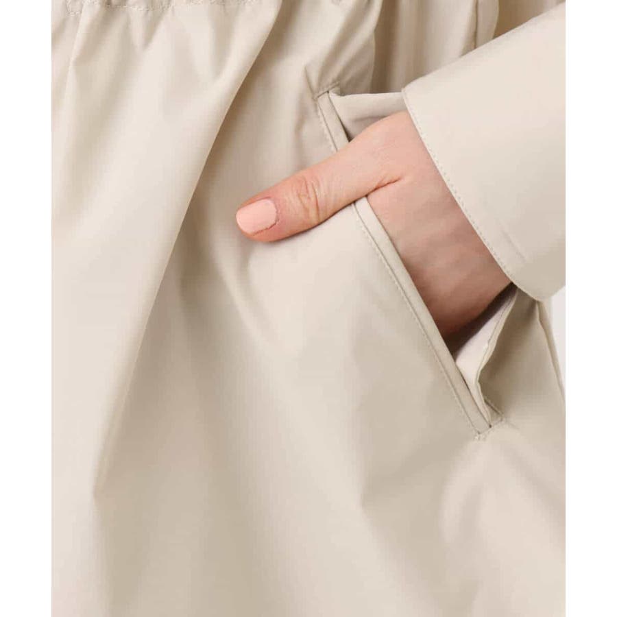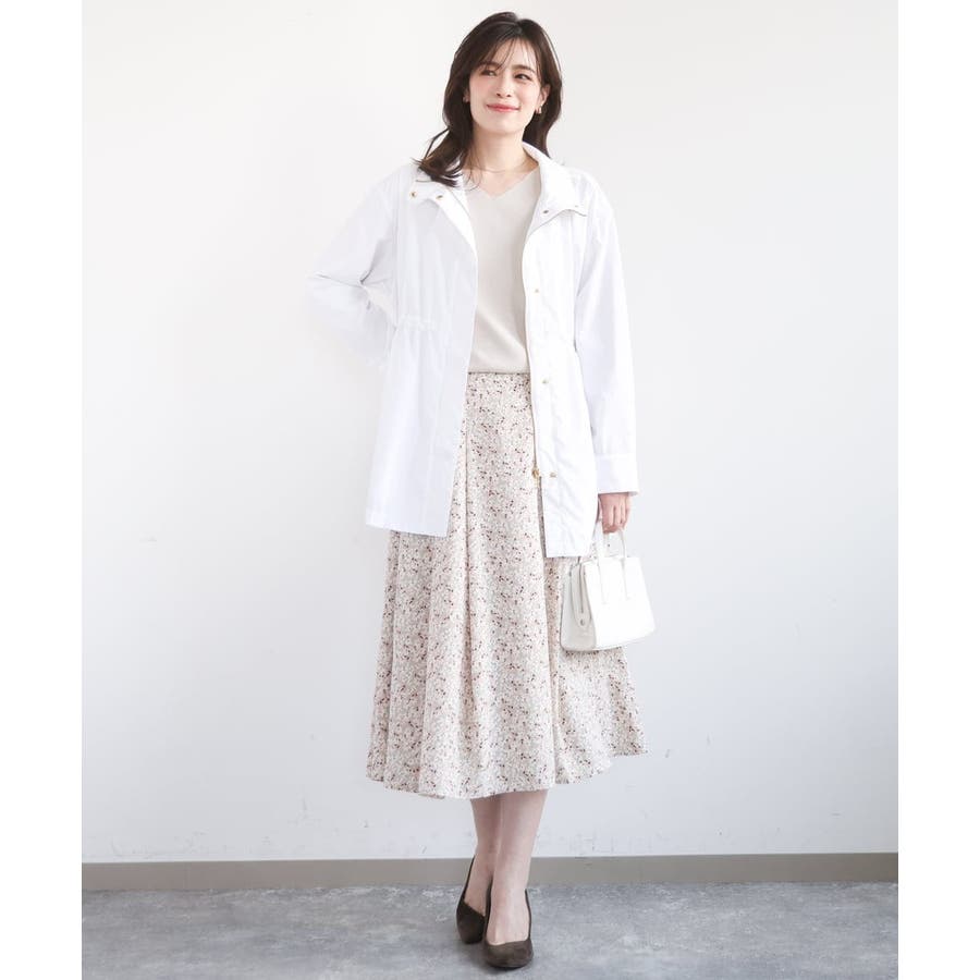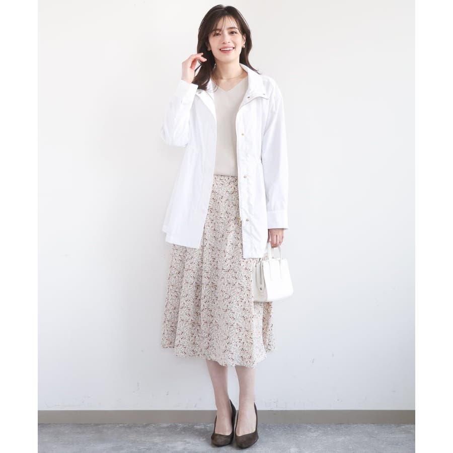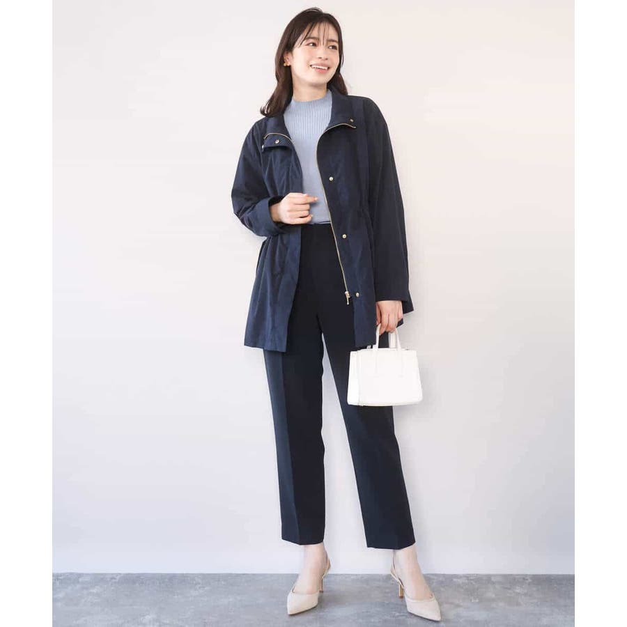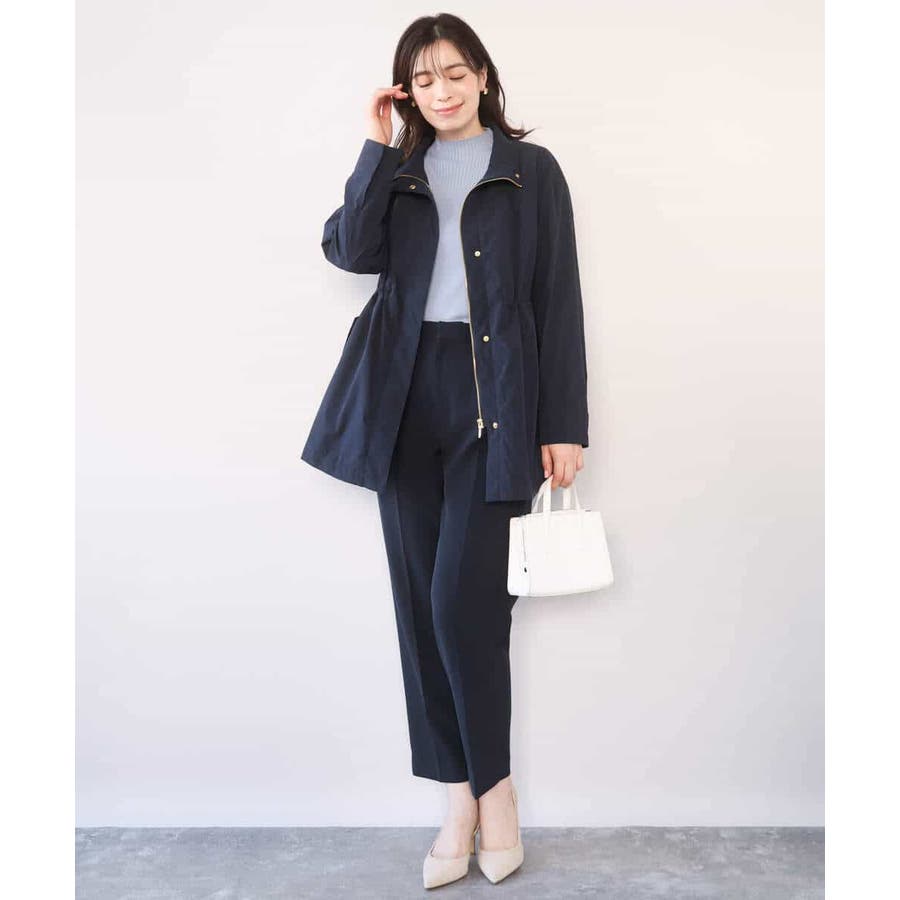 軽く羽織りやすいアウターはさっとコーディネートに合わせやすい。コート無しだと物足りない、何か羽織りたい、というときにコーディネートアイテムとしても重宝します。ヒップがしっかり隠れるミドル丈はパンツ、スカートと合わせるボトムを選びません。